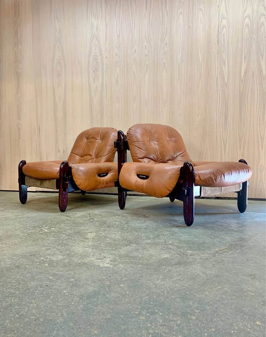 1960s Solid Walnut and Leather Lounge Chair by Paul Arno