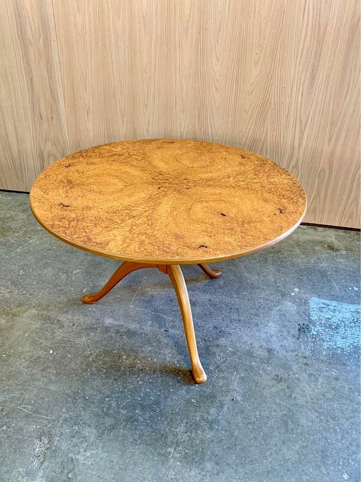 Straight out of a time capsule, we’re thrilled to showcase this rare table designed by Carl Malmsten in the 1940s. Featuring a breathtaking burled wood veneer surface, it beautifully highlights the timeless elegance of old-growth wood. With its original maker’s branding intact and remarkably well-preserved over the decades, this exceptional piece is in outstanding condition and ready to be treasured anew.