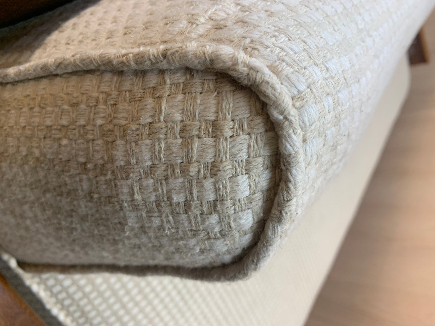 Compact in size yet versatile in use, it works equally well as a refined small-scale sofa or as a daybed when the back cushions are removed—perfect for lounging or accommodating overnight guests.