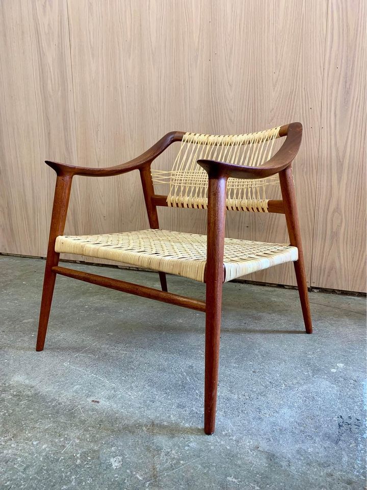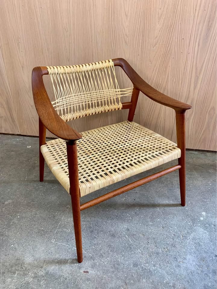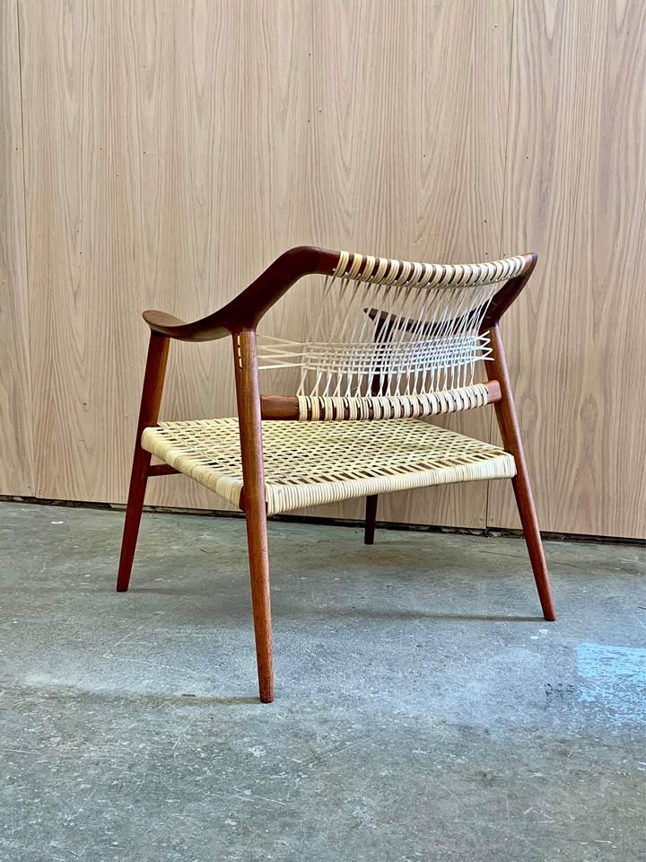 1950s Norwegian Teak and Cane “Bambi” Lounge Chair by Rastad and Relling