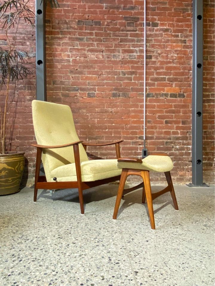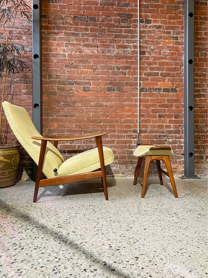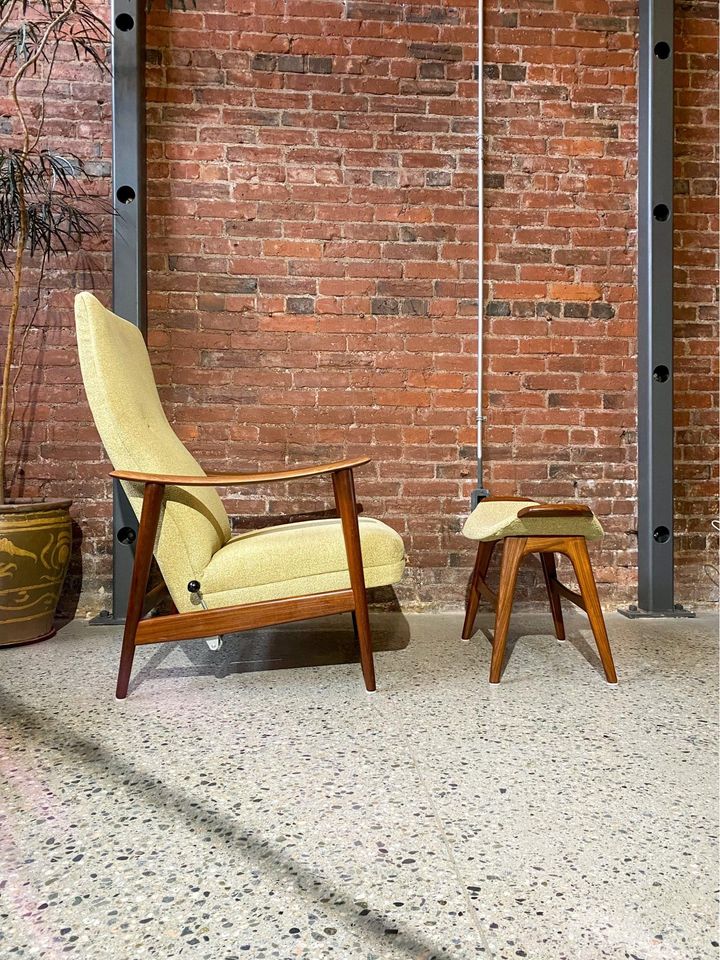 1960s Afromosia Teak Norwegian Reclining Lounge Chair and Matching Stool