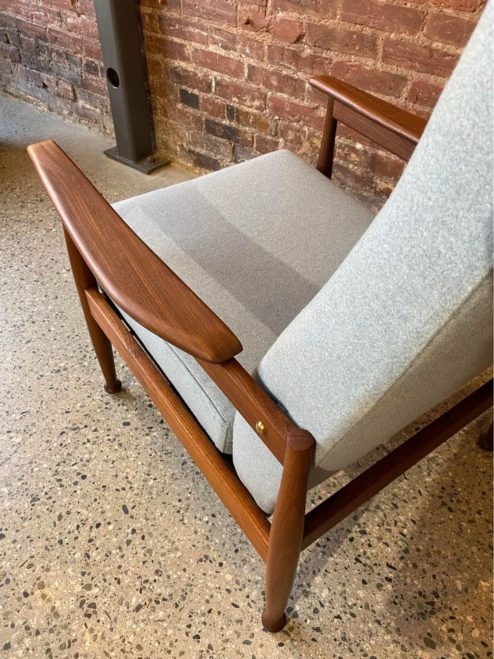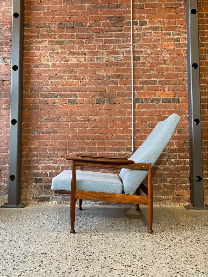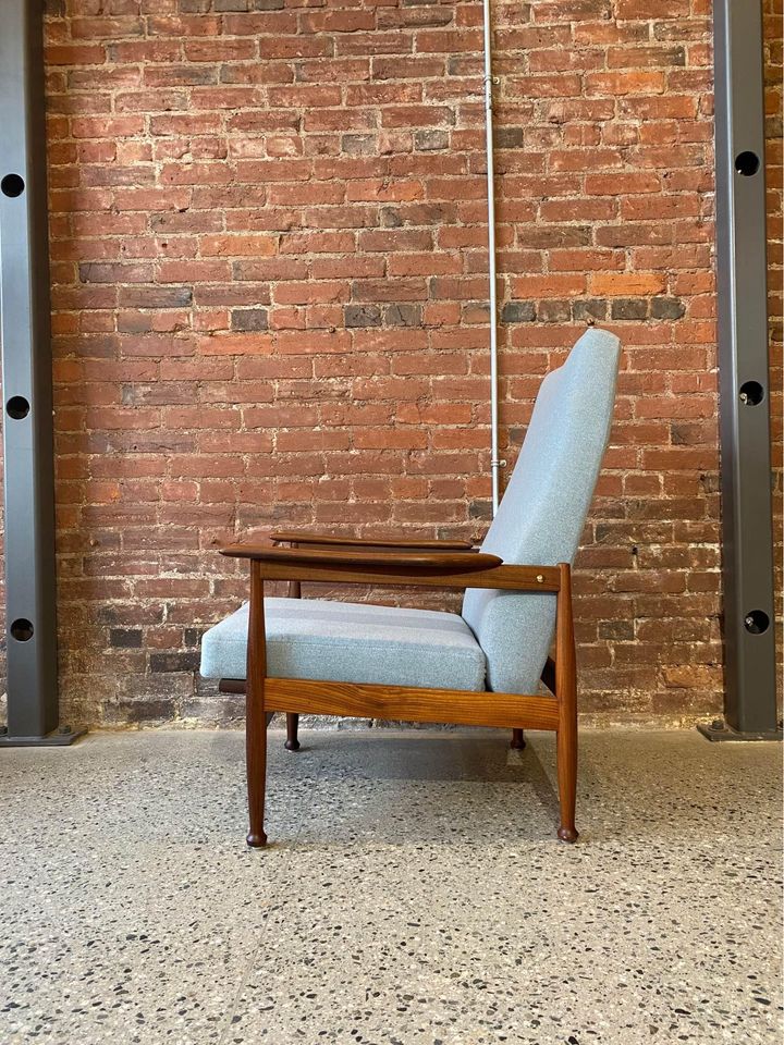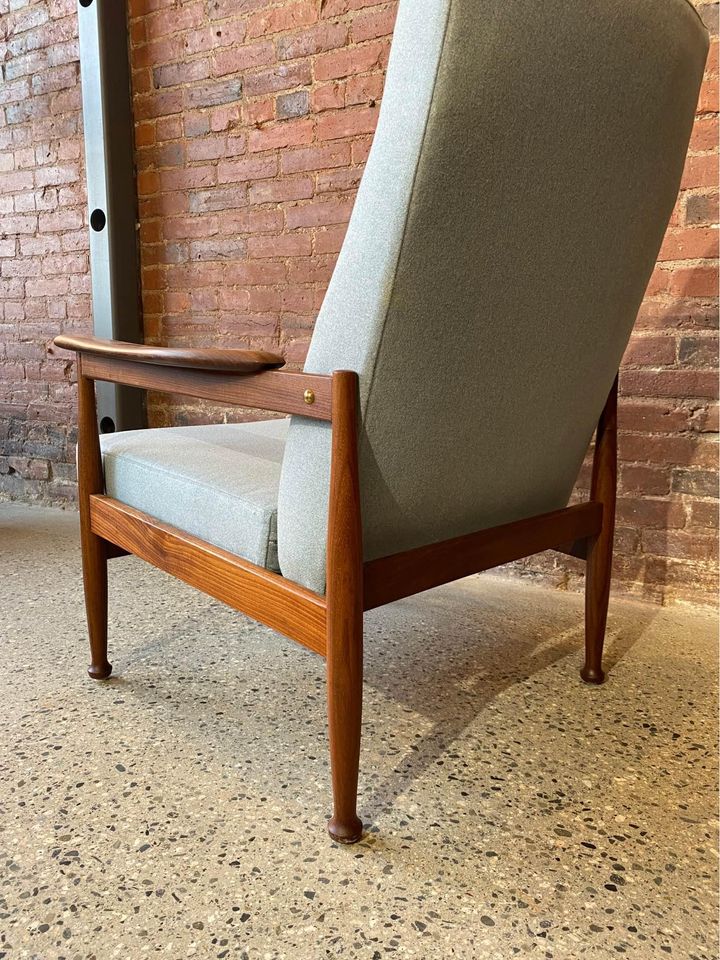 Fantastic and very comfortable lounge chair made in England circa 1960s. This beautiful piece has a solid Afromosia / African teak frame and is freshly restored with new foam, new Pirelli webbing, and new buttery soft wool from Anian MFG.