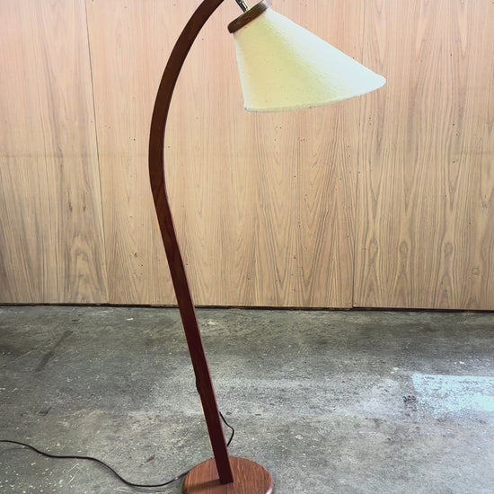 1960s Arc Floor Lamp in teak and fabric shade