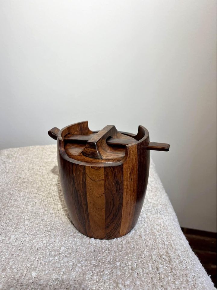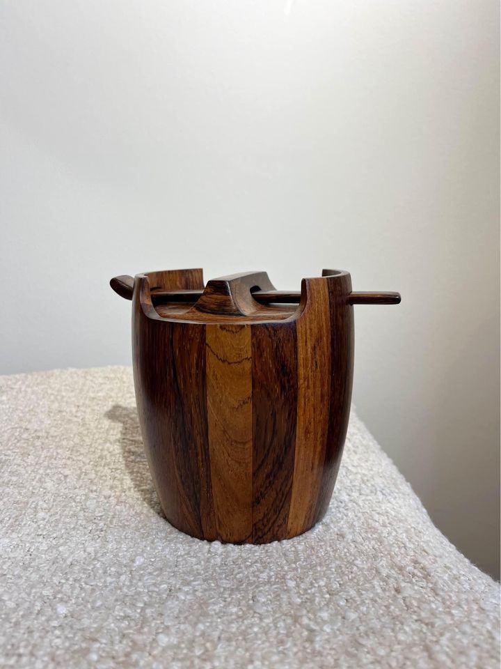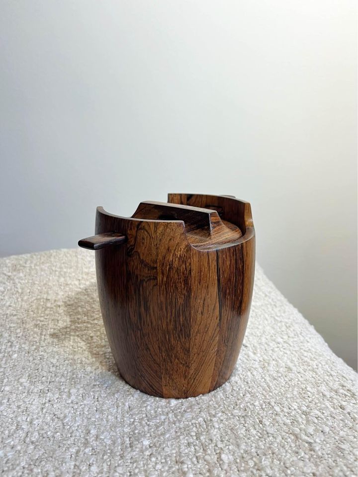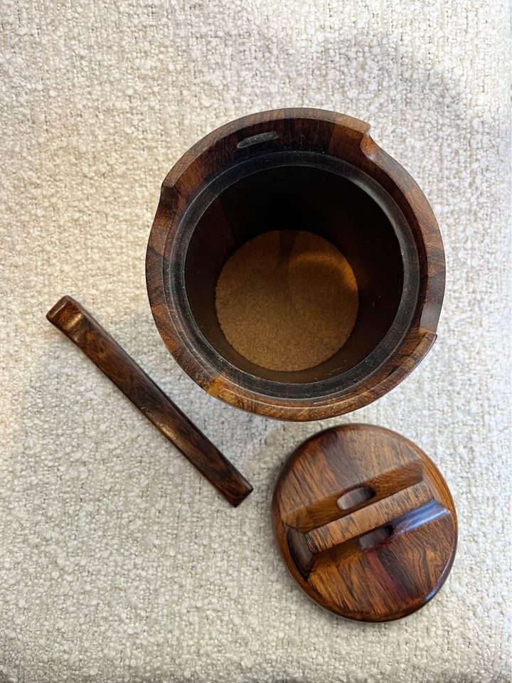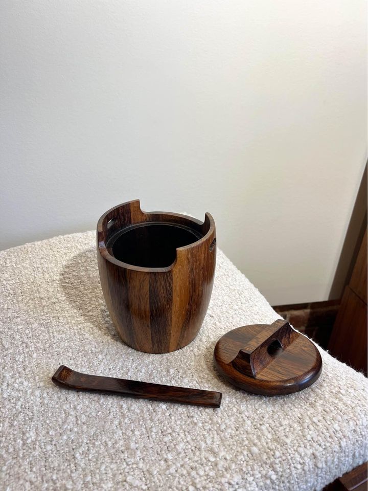 We're thrilled to introduce the latest addition to our revered vintage Brazilian smalls collection: an iconic piece from the legendary designer Jean Gillon's Wood Art collection. Behold this exquisite tobacco jar, meticulously crafted from the finest staved jacaranda, boasting impeccable craftsmanship and unparalleled functionality. With cork lining at both ends and an air tight fit for humidity regulation, rest assured your prized blends are kept in perfect condition. Its utilitarian function of serving as a vessel is eclipsed by its captivating sculptural allure. Complete your collection with this timeless piece of artistry, in pristine condition, as well as other stunning pieces we have from Jean's Wood Art series!