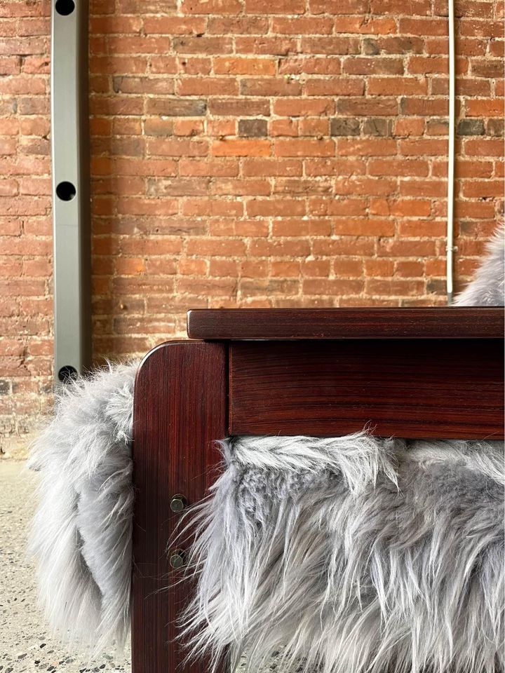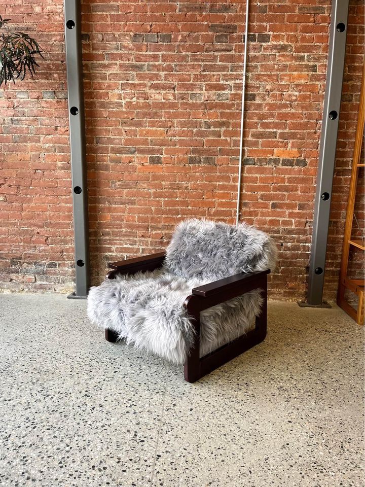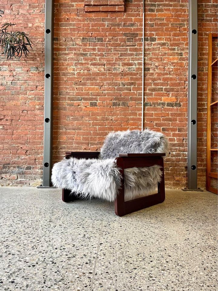 We are thrilled to introduce our latest vintage Brazilian creation: a Model MP185 chair, designed by Percival Lafer in the 1960s. This piece has undergone a complete transformation, restoration, and embellishment with the finest Icelandic sheepskin available. Bold and undoubtedly unique, it radiates an ambiance of irresistible comfort. Additionally, we have replaced the foam and restored the Brazilian hardwood frame, ensuring another generation of love and delight!
