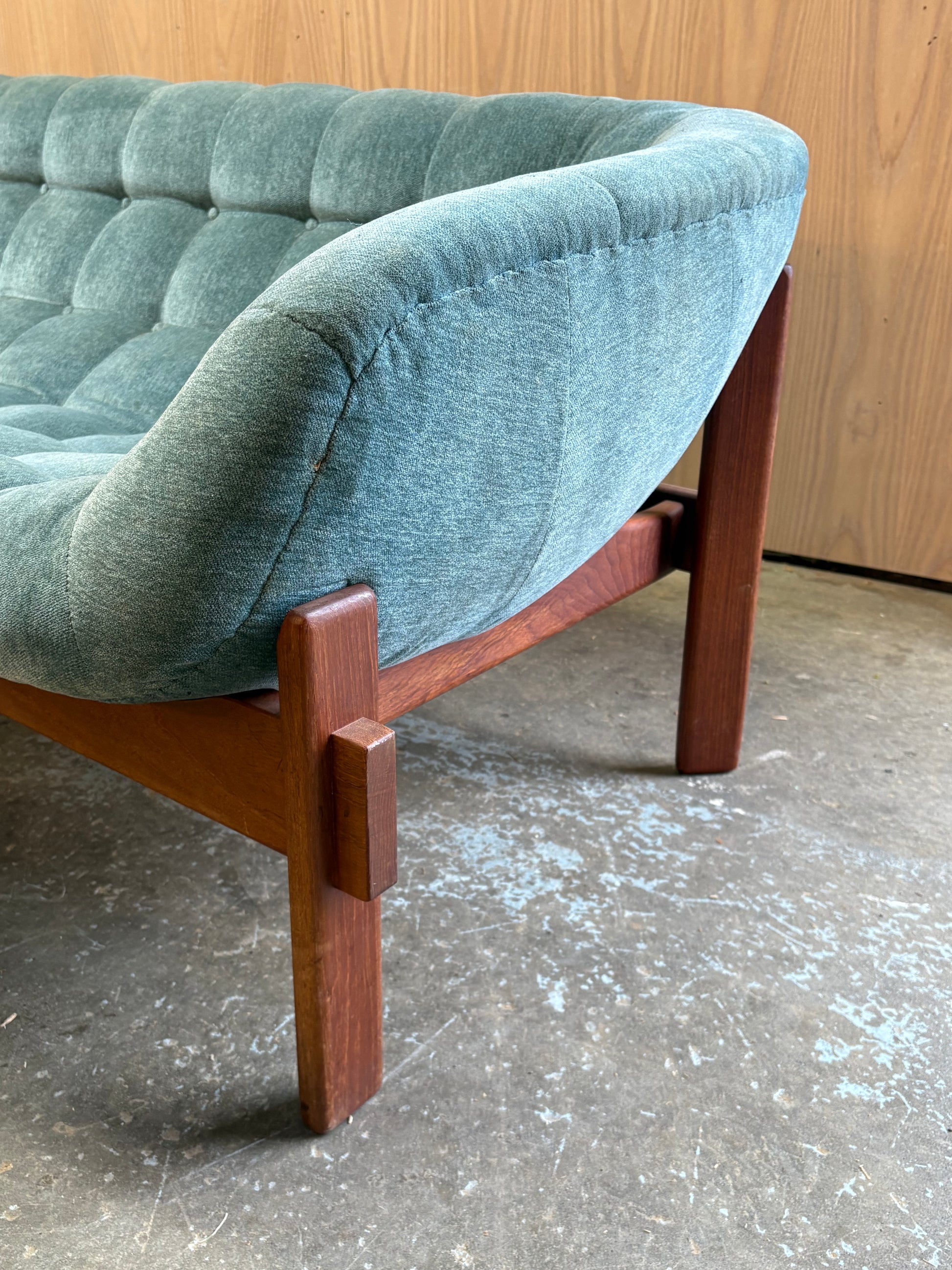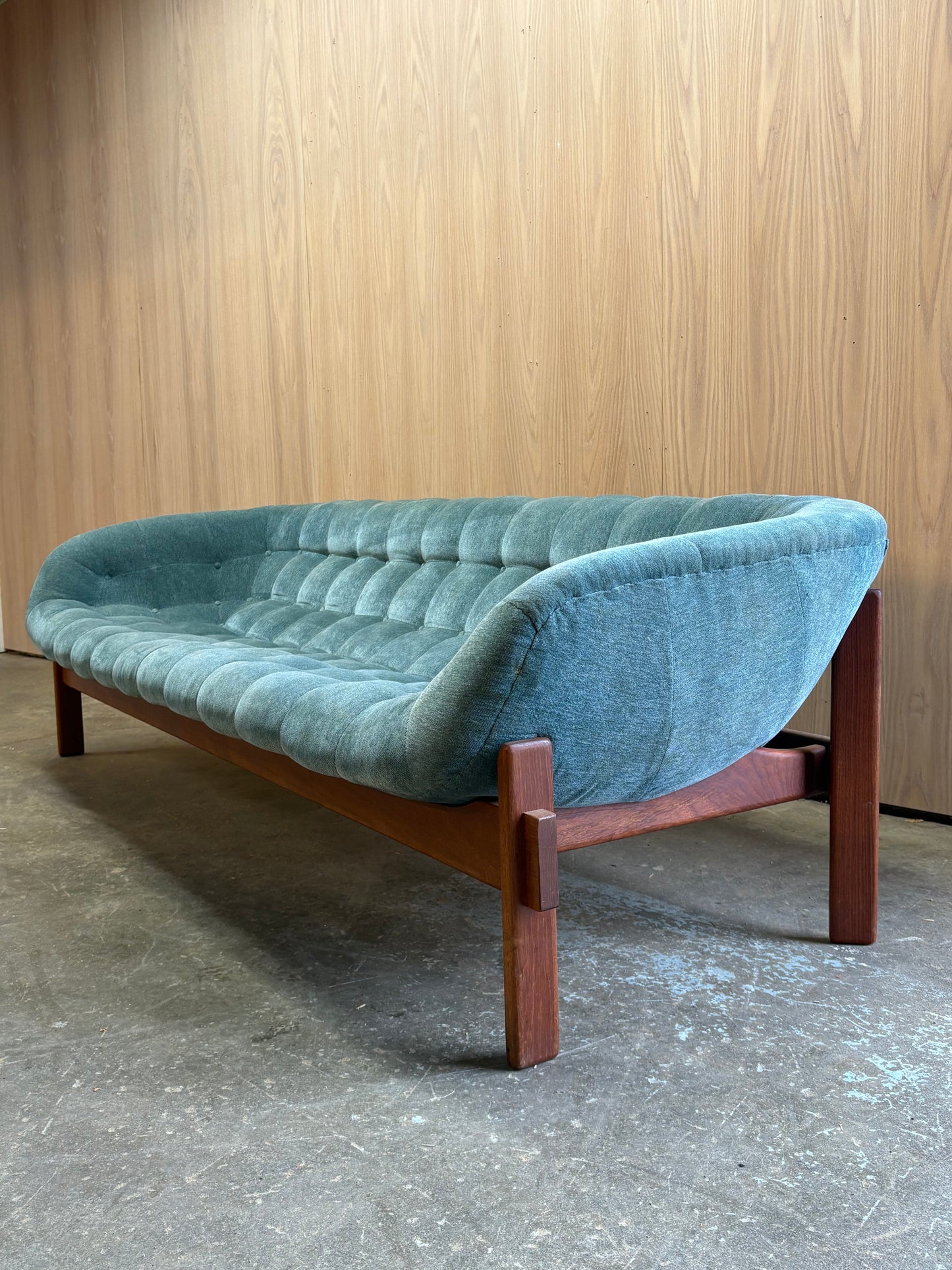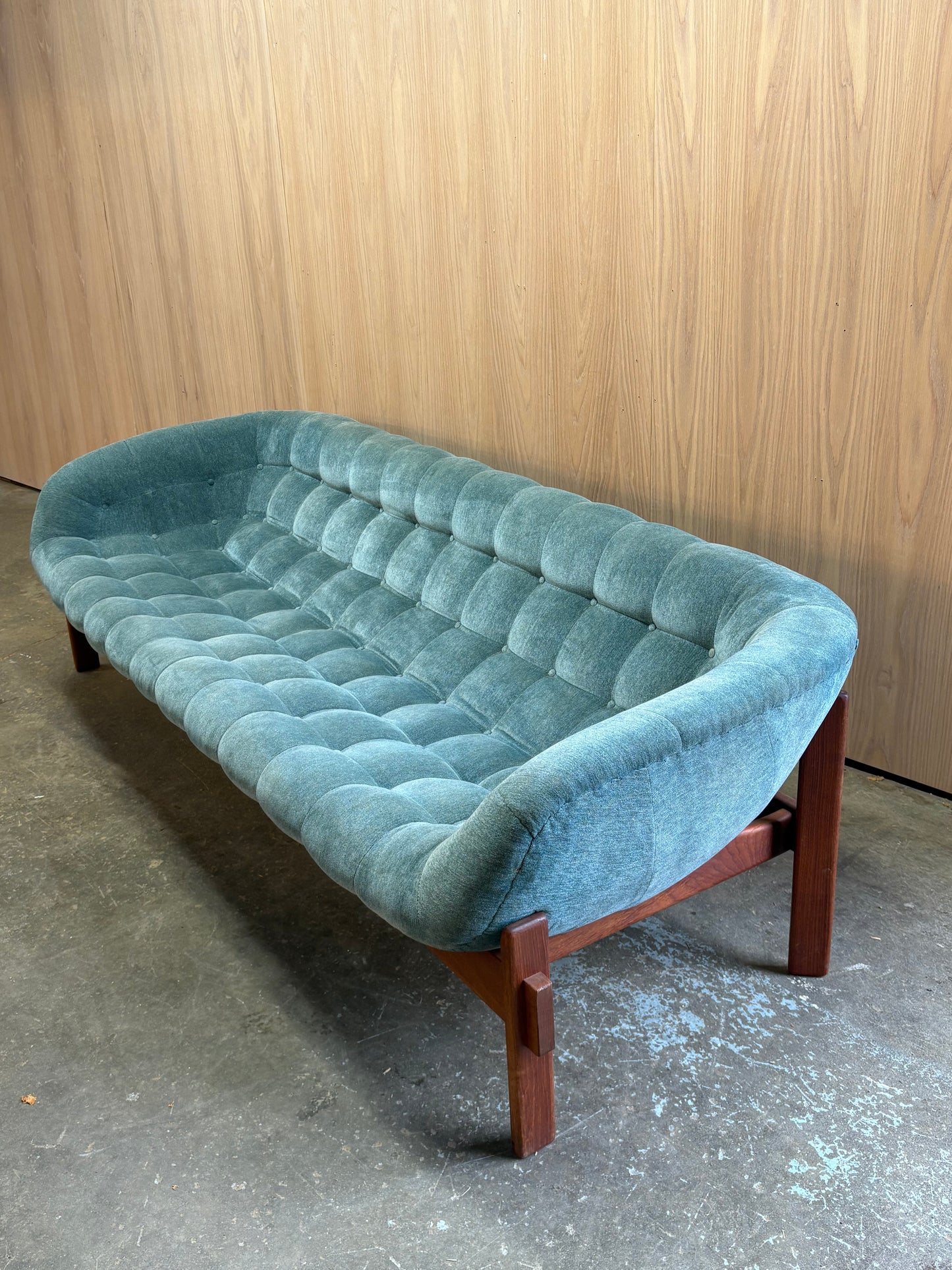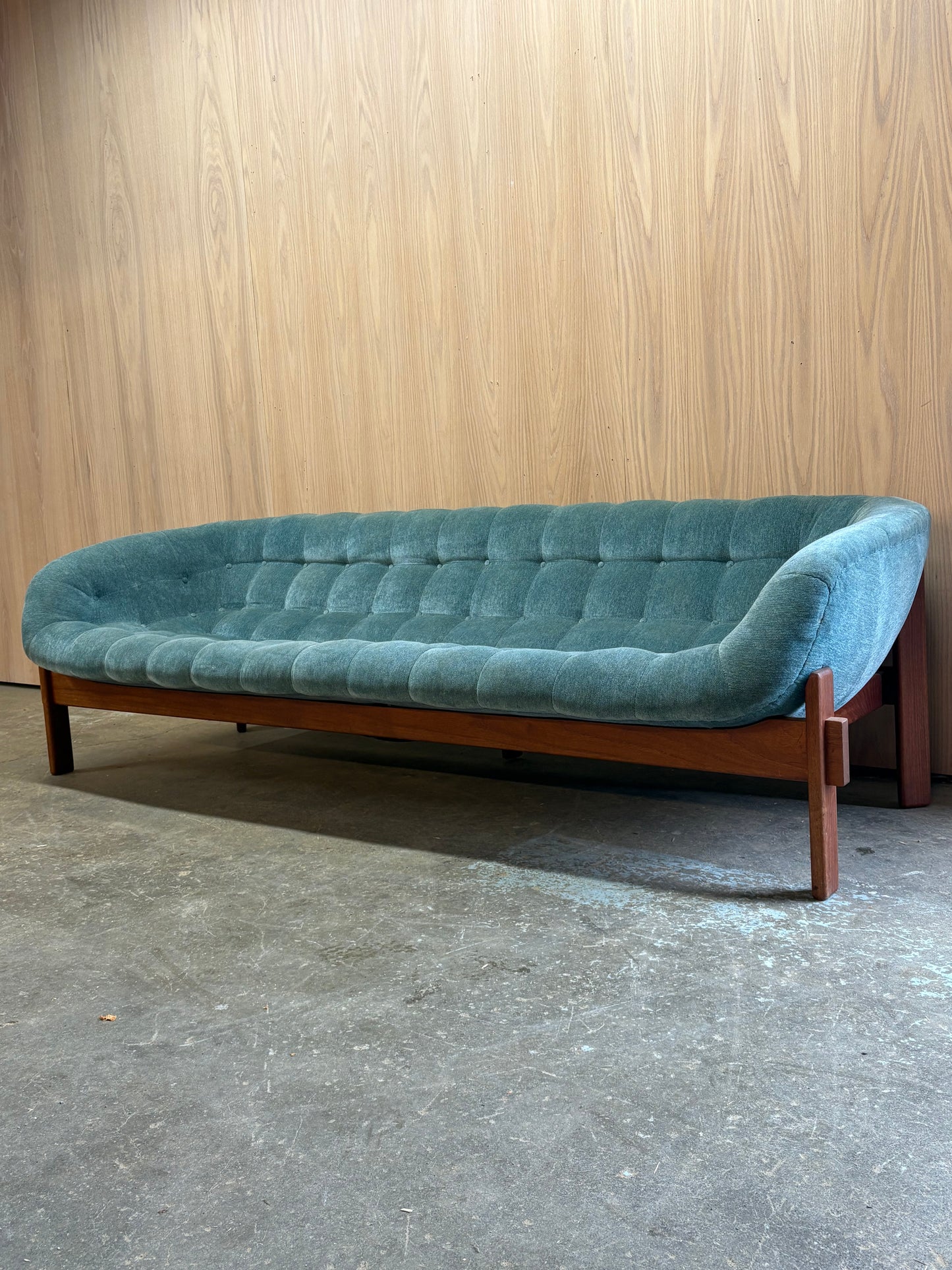 In 12 years of business, we’ve only come across this sofa once before—so we’re thrilled to present it again. The highly coveted “Tub Sofa” was designed by R. Huber and crafted right here in Canada during the 1960s. Its sculptural fibreglass shell is filled with luxurious foam and intricately upholstered with dozens of panels, hand-sewn details, and deep button tufting.