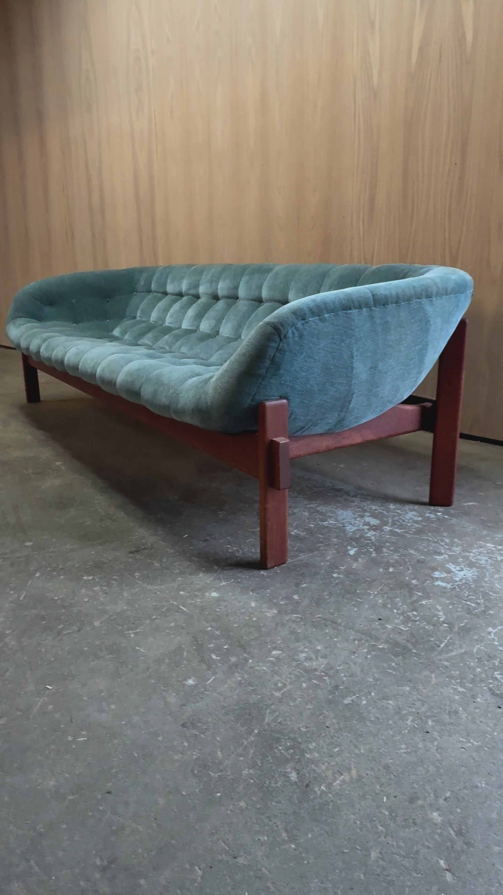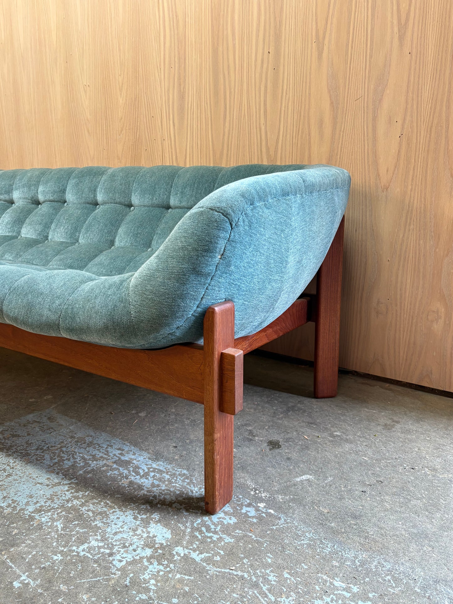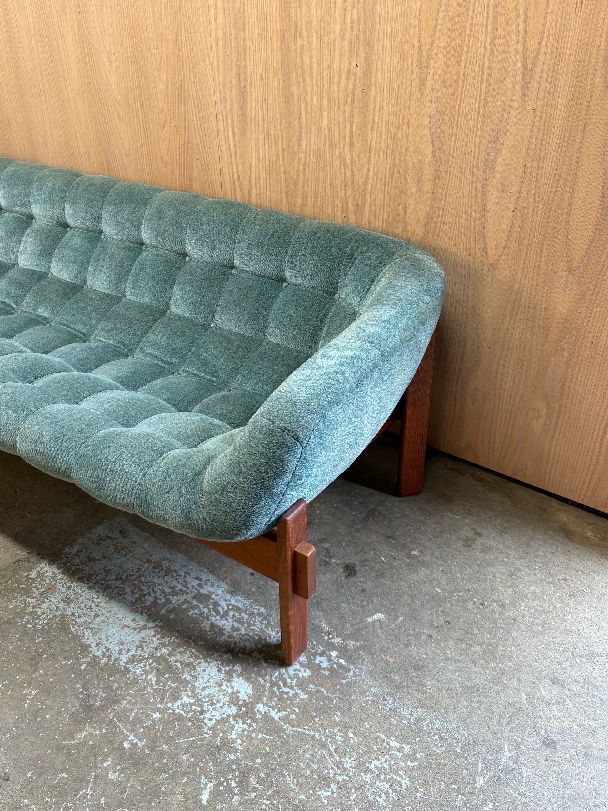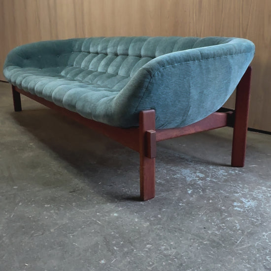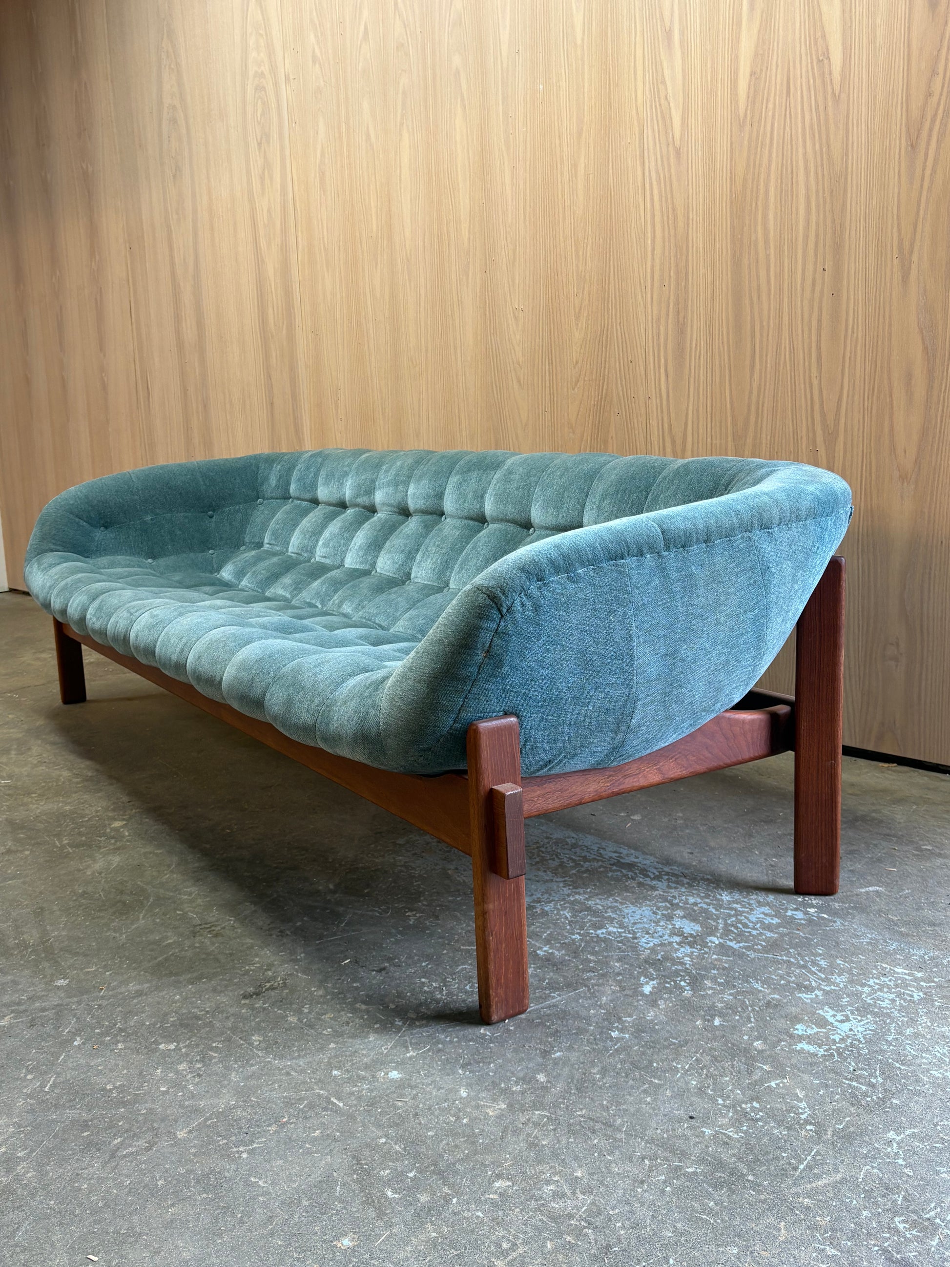 In 12 years of business, we’ve only come across this sofa once before—so we’re thrilled to present it again. The highly coveted “Tub Sofa” was designed by R. Huber and crafted right here in Canada during the 1960s. Its sculptural fibreglass shell is filled with luxurious foam and intricately upholstered with dozens of panels, hand-sewn details, and deep button tufting.