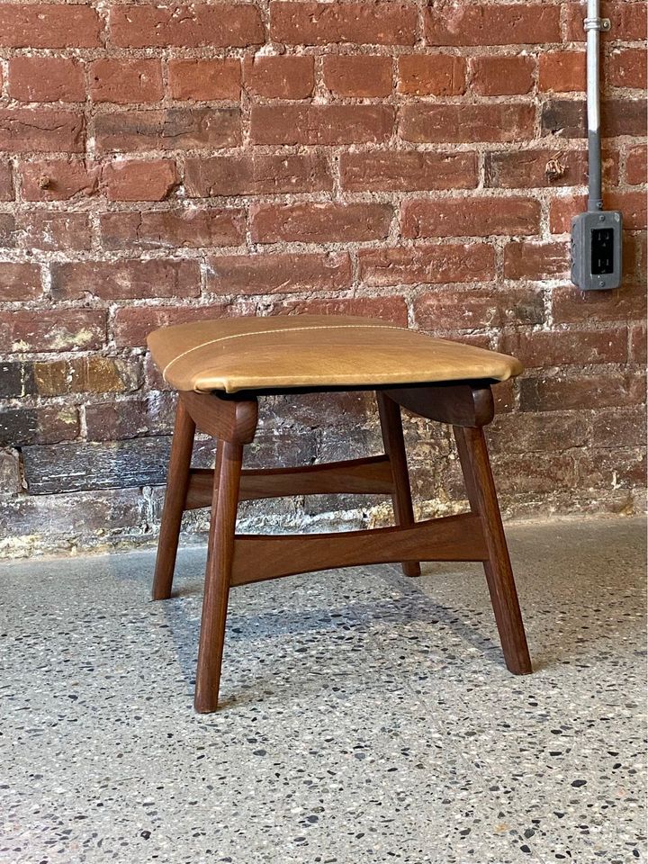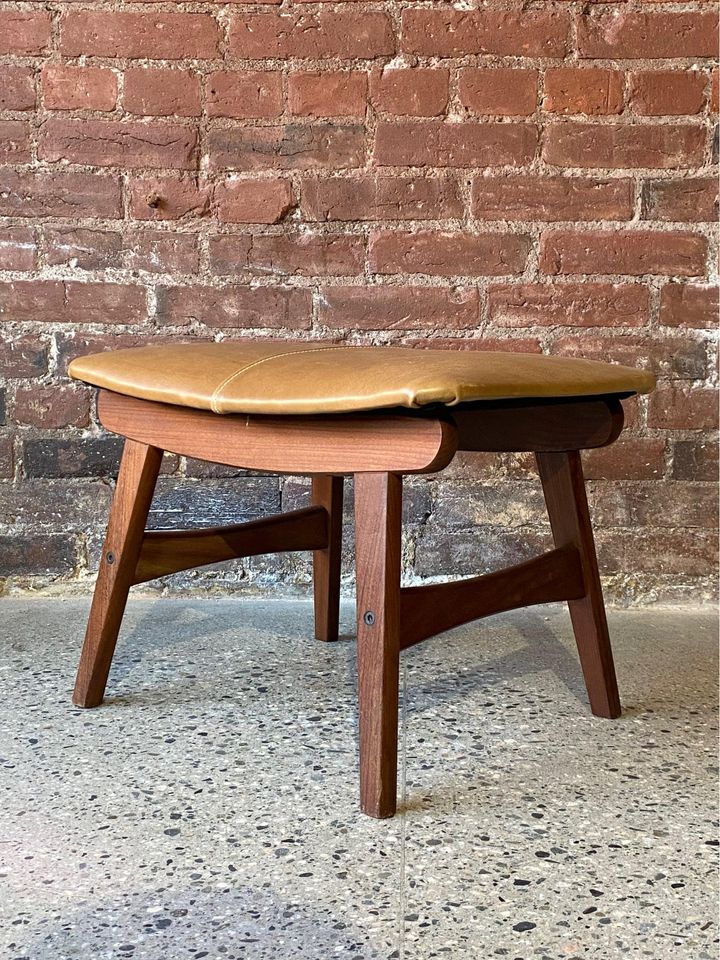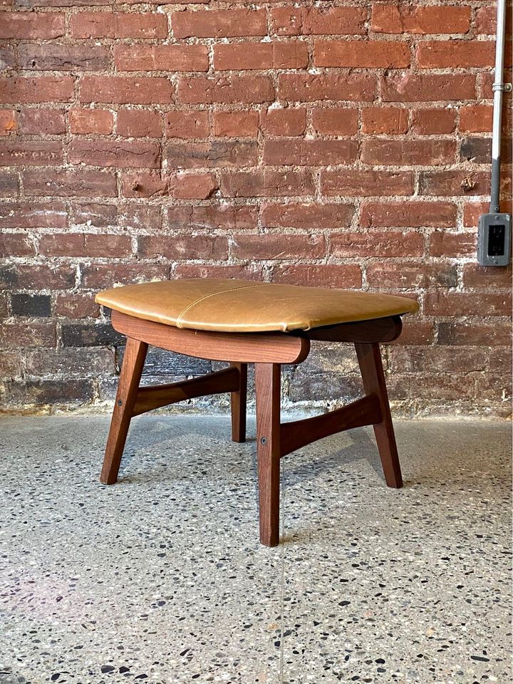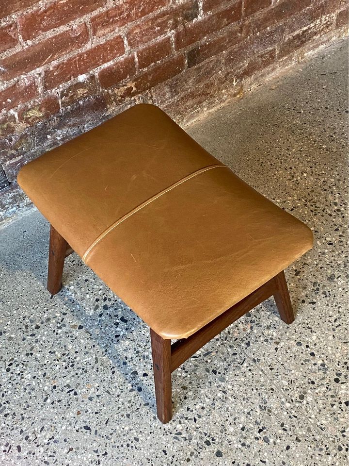 Nice little Danish Afromosia teak foot stool freshly covered in Italian leather. Good condition with one repaired crack.