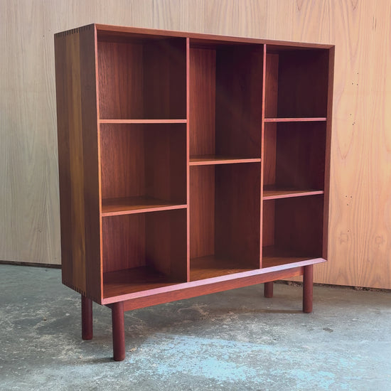 An outstanding example of Danish modern craftsmanship, this solid teak bookcase by Peter Hvidt for Søborg Møbelfabrik (1960s) showcases both refinement and utility. Constructed entirely of solid teak — a rarity even in its era — it features Hvidt’s signature clean lines, exposed joinery, and thoughtful proportions. The asymmetric shelving arrangement offers a striking architectural presence while allowing for a dynamic mix of books, ceramics, and decorative objects.