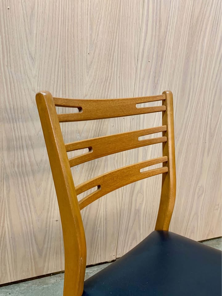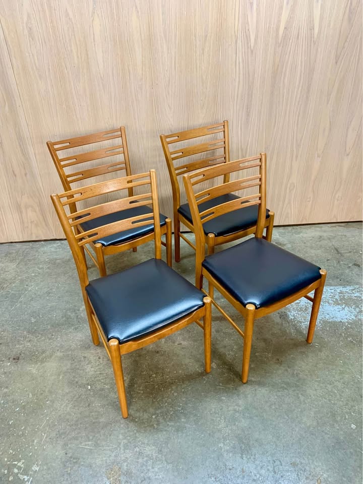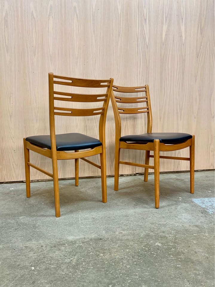 New to the market, we’re proud to offer this exceptional set of teak and beech dining chairs, crafted by Farstrup in the 1960s. Highlighting elegant ribbon-style ladder backrests and sturdy mortise-and-tenon joinery, these chairs effortlessly combine timeless style with lasting comfort. Remarkably well-preserved over the years, they have been freshly cleaned and polished by our team and are in excellent condition, ready to enhance any dining space.