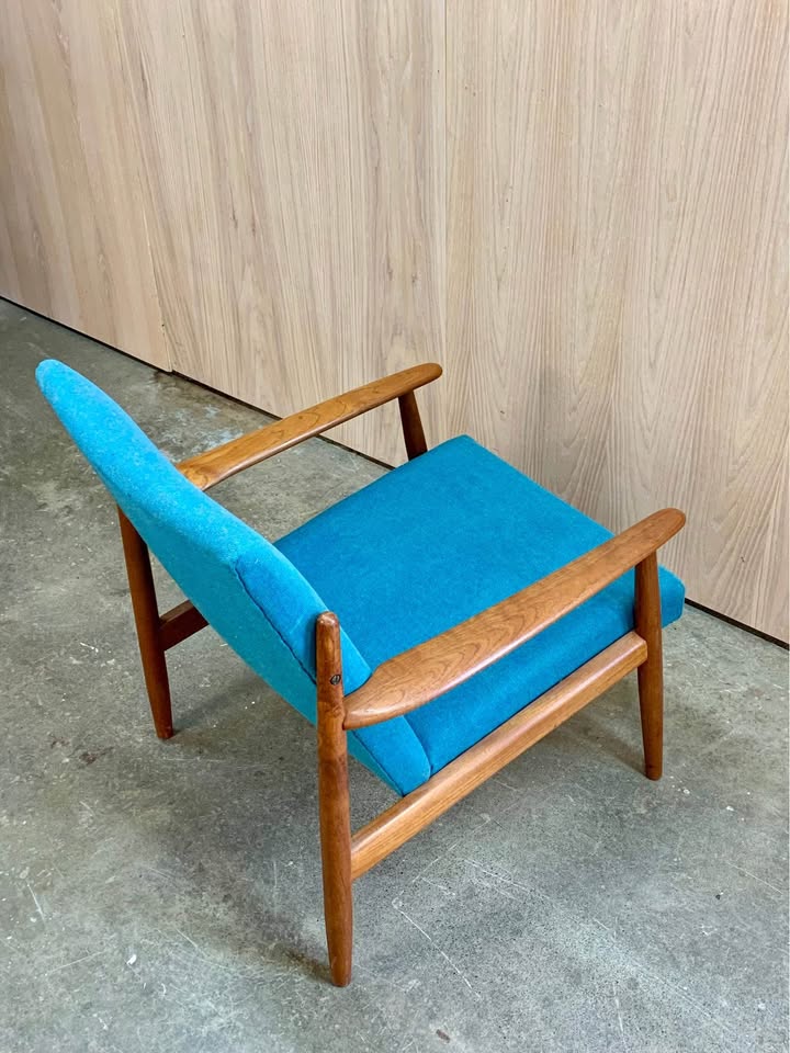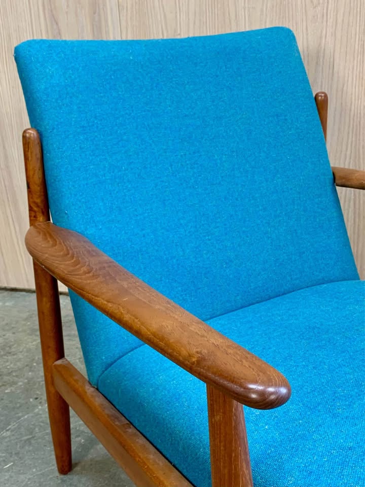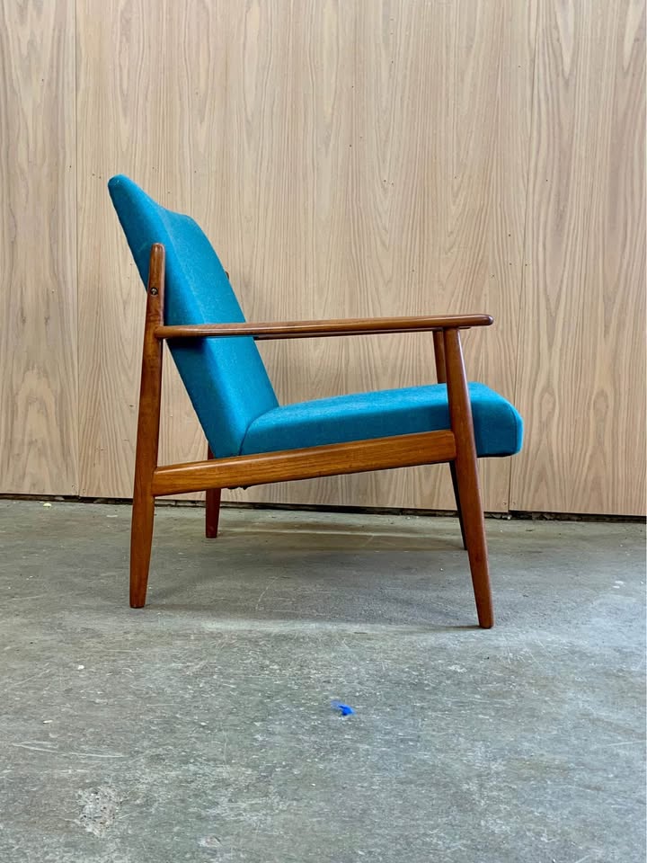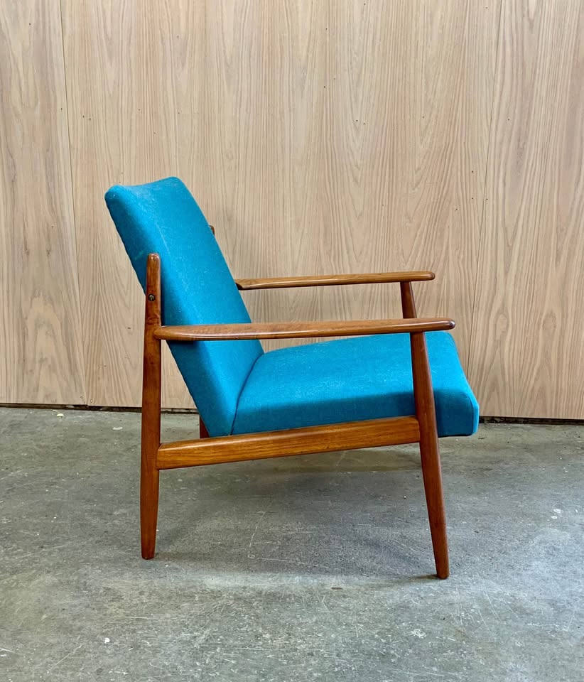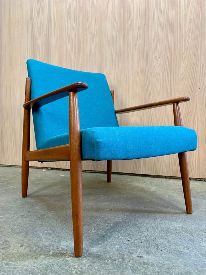 New to our inventory, we’re thrilled to present this stunning teak easy chair, crafted in Denmark during the 1960s. With its clean, minimalist lines, the old-growth teak frame boasts a rich, warm glow that pairs beautifully with the original wool upholstery. Freshly cleaned and polished by our team, this piece is in exceptional condition and ready to elevate any space.