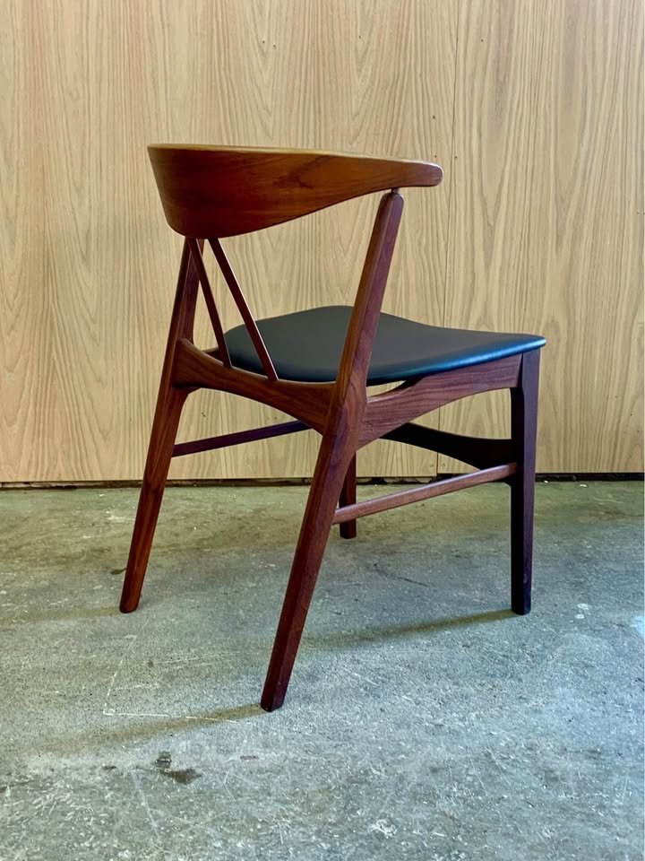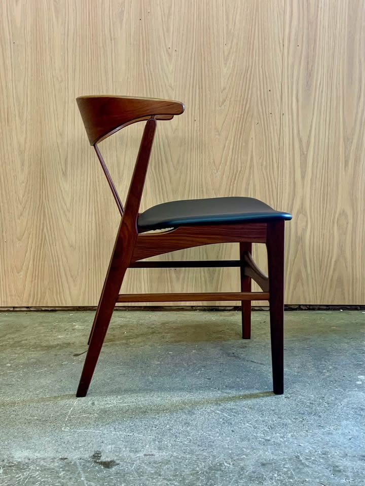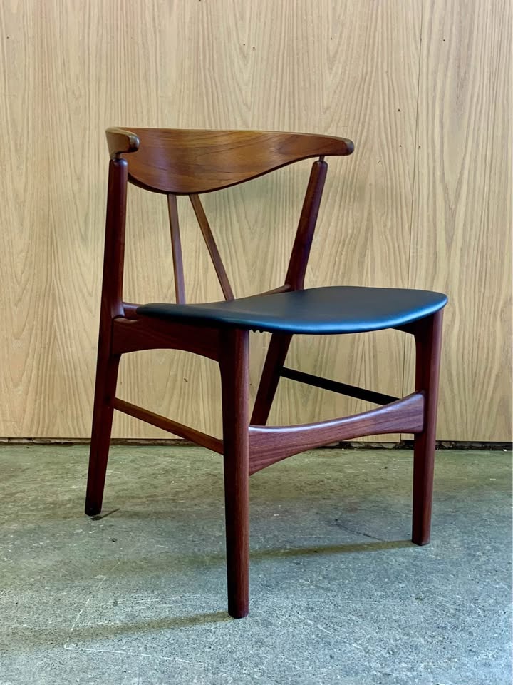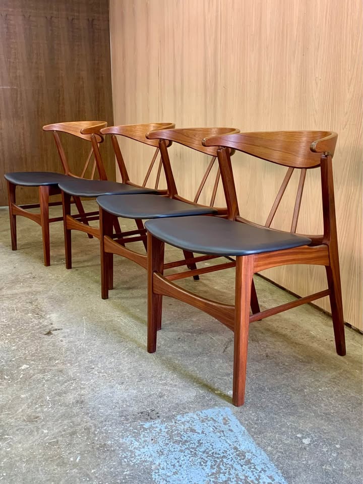 Fresh from restoration, this exquisite set of 1960s Danish dining chairs is a perfect blend of form and function. Designed with an elegantly curved backrest that doubles as an elbow rest, these chairs offer both comfort and sculptural beauty—making them as much a statement piece as they are practical seating. Freshly cleaned, polished, and upholstered in top-quality leather, they’re ready to elevate your space for generations to come.
