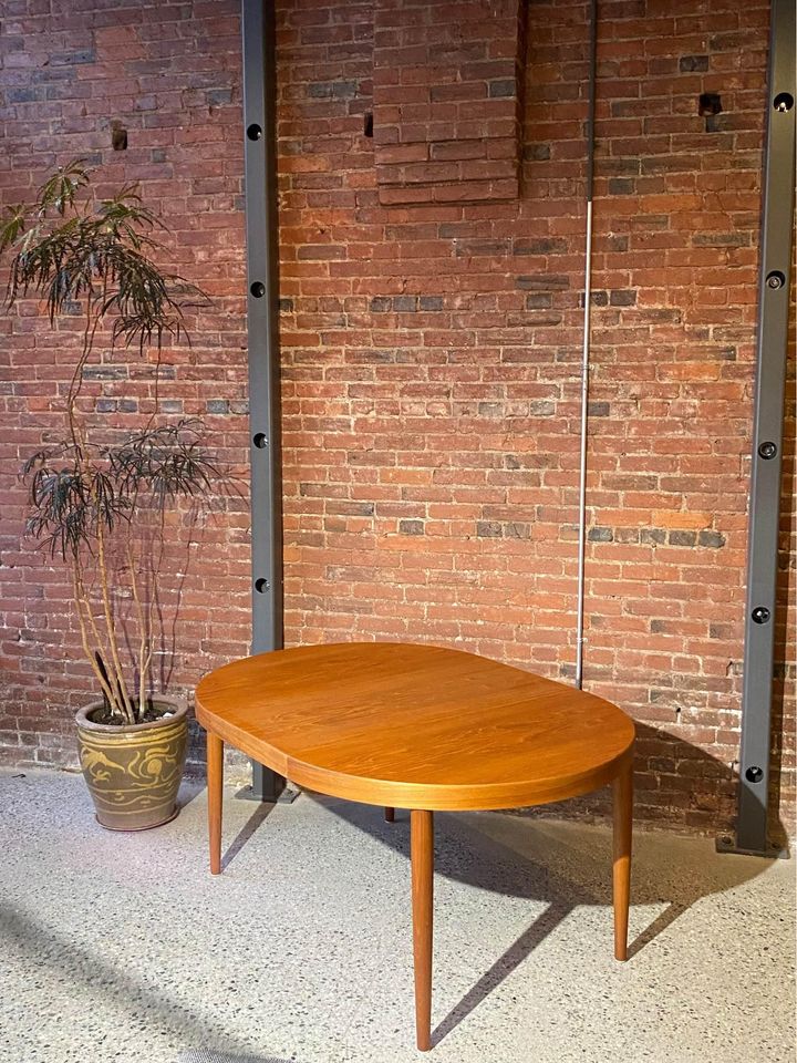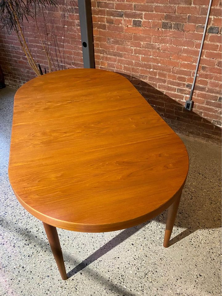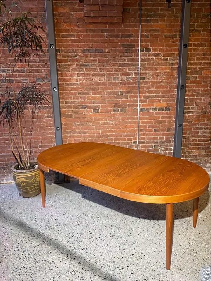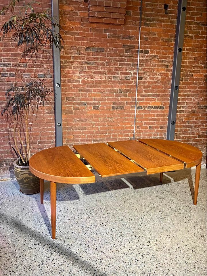 Fantastic 1960s Danish teak dining table by Gudme Møbelfabrik. This beautiful piece comes with two loose leaf extensions and is completely and professionally restored. The condition is stunning.