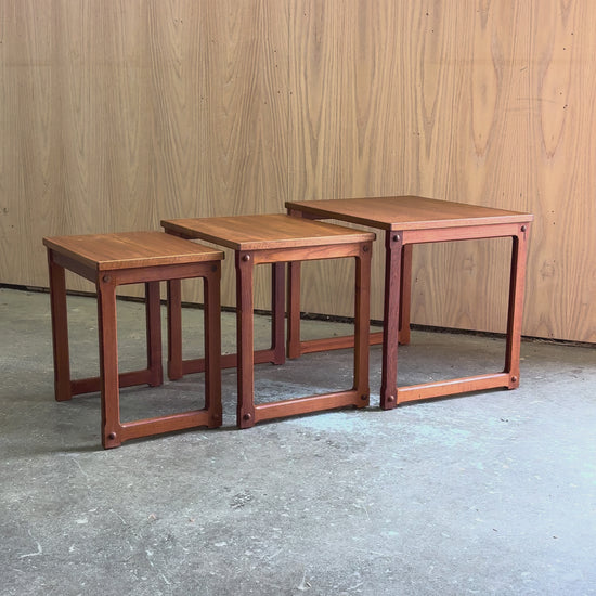 Freshly restored by our team, the teak surfaces showcase a warm, rich grain and the frames present with crisp joinery, all in excellent condition. Perfect as side tables, occasional tables, or as a versatile set for entertaining, this grouping brings timeless Danish craftsmanship into any space.