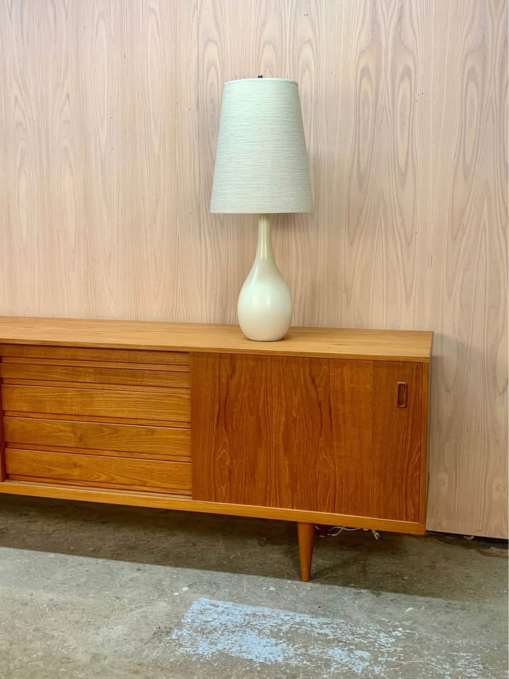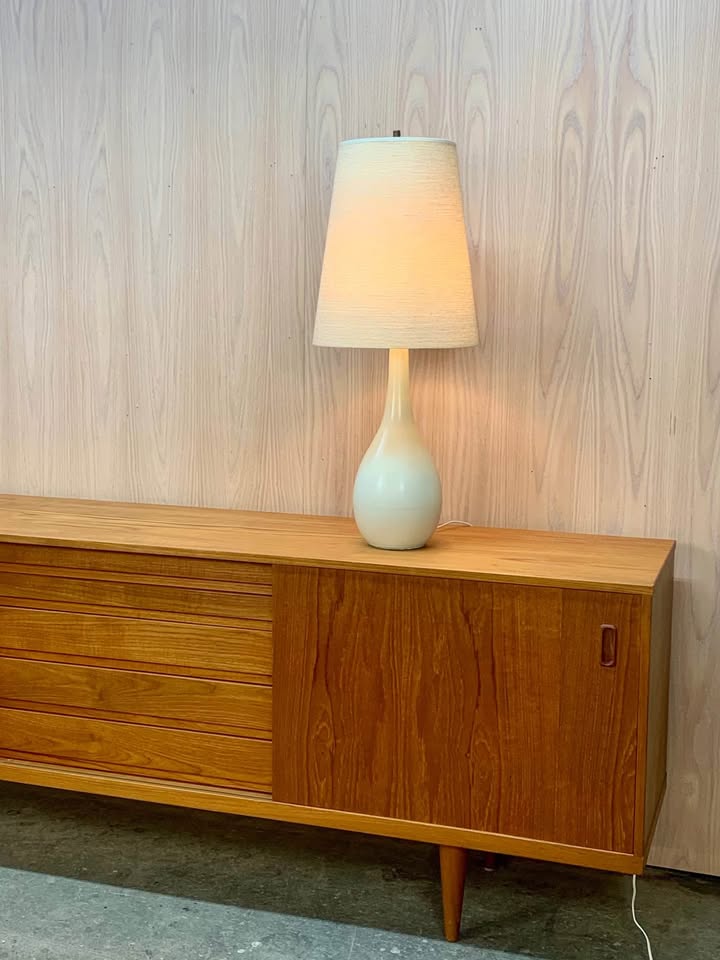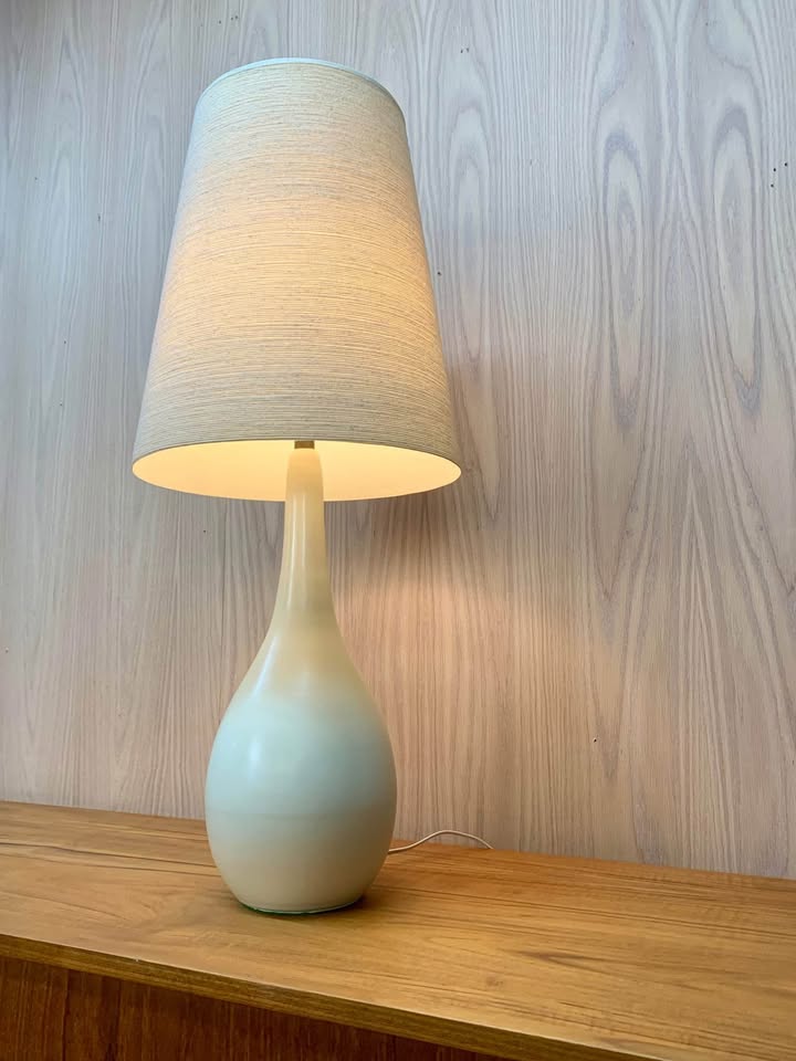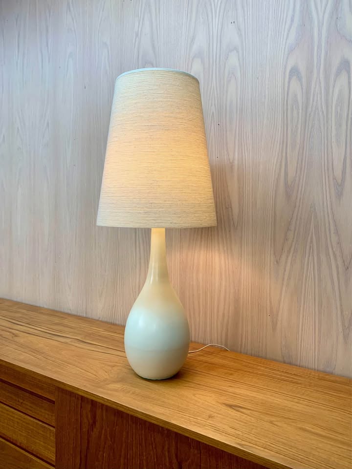 Newly available, we’re delighted to present a stunning ceramic table lamp by the renowned Bostlund family, circa 1960s. This exceptional piece retains its original fiberglass shade, casting a warm, signature “Lotte Lamp” glow when illuminated. Remarkably well-preserved, it remains in outstanding original condition—a true testament to its timeless craftsmanship.
