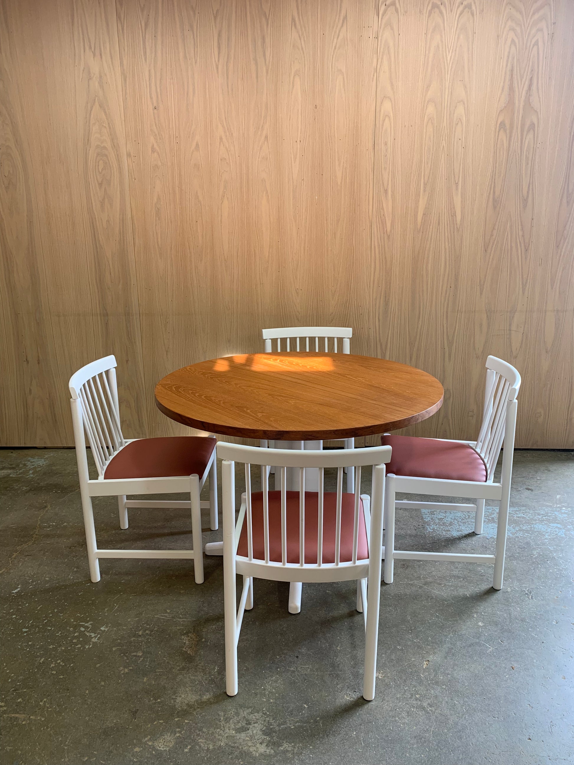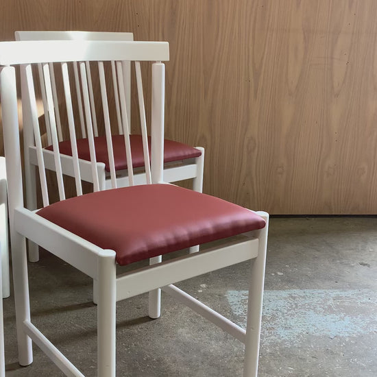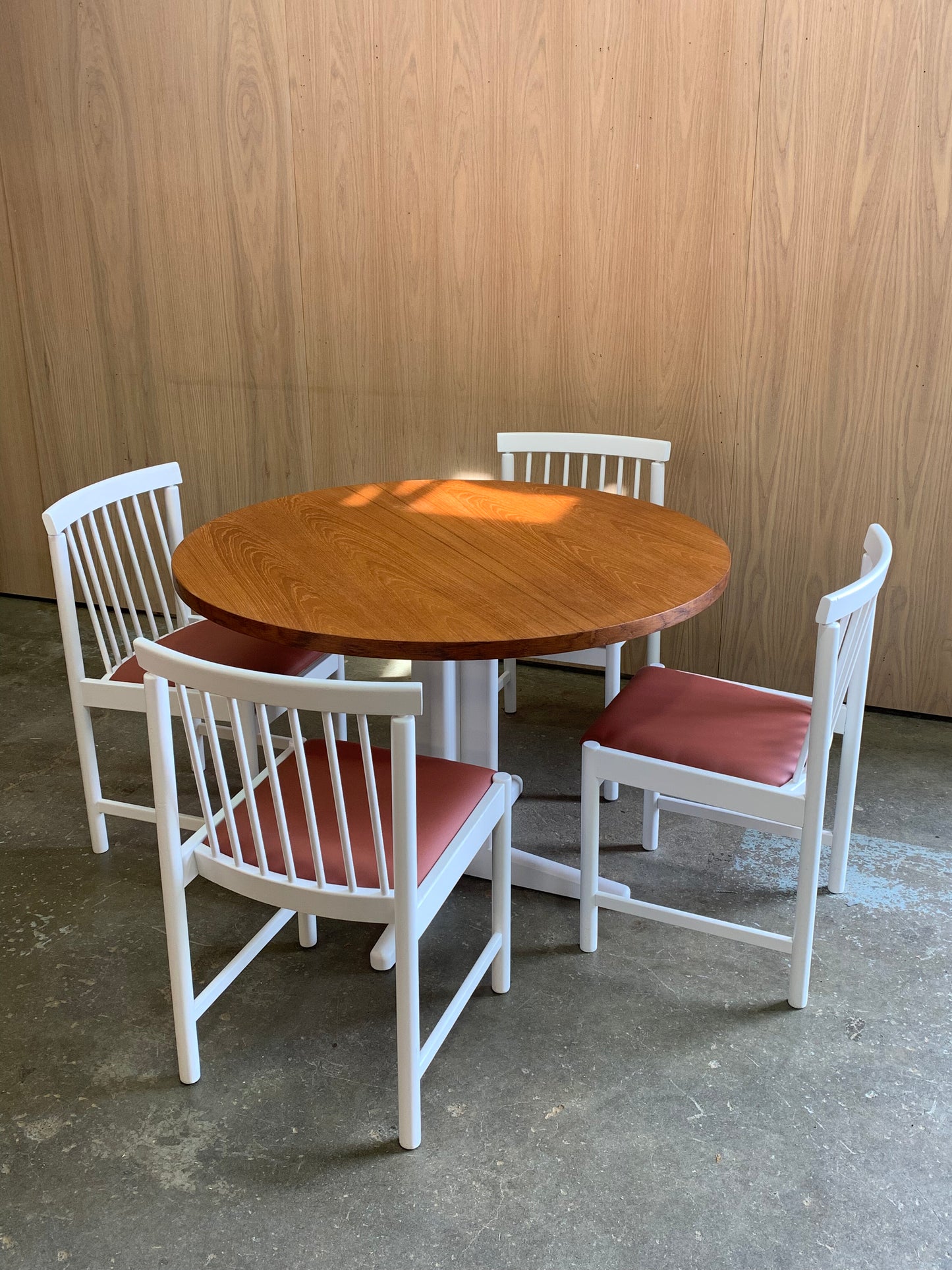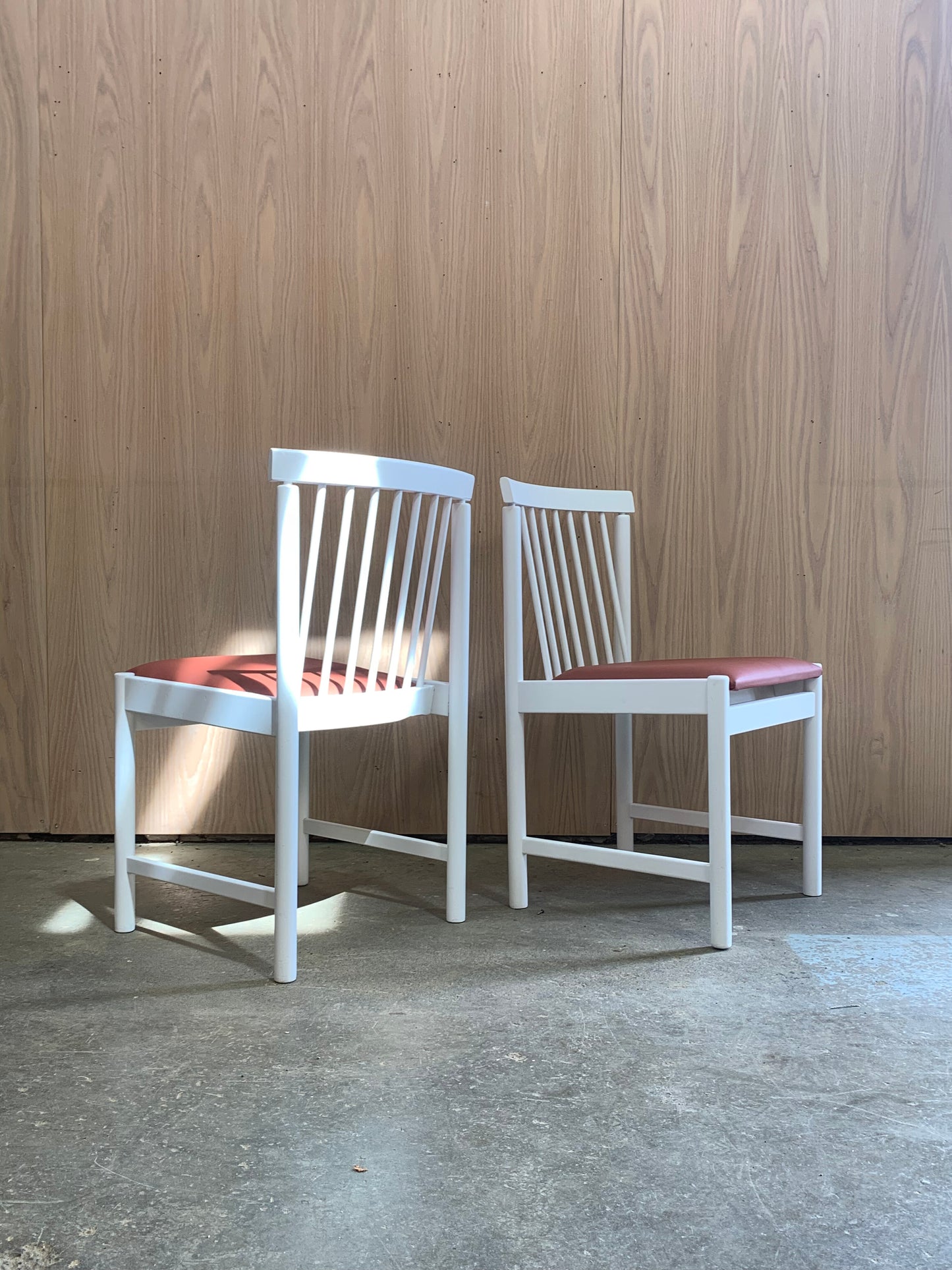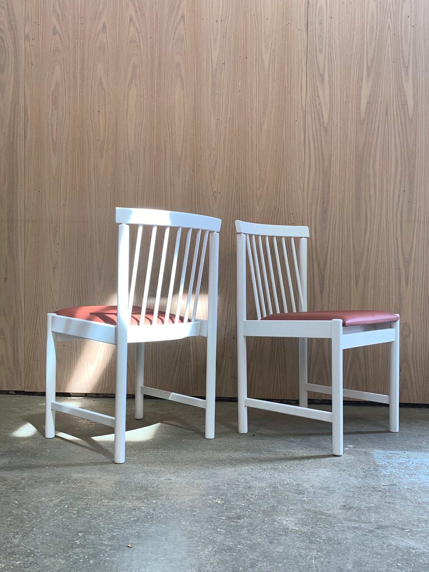 Don’t need the full set? The white lacquered spindle chairs pair beautifully with many of the teak dining tables we have in stock.