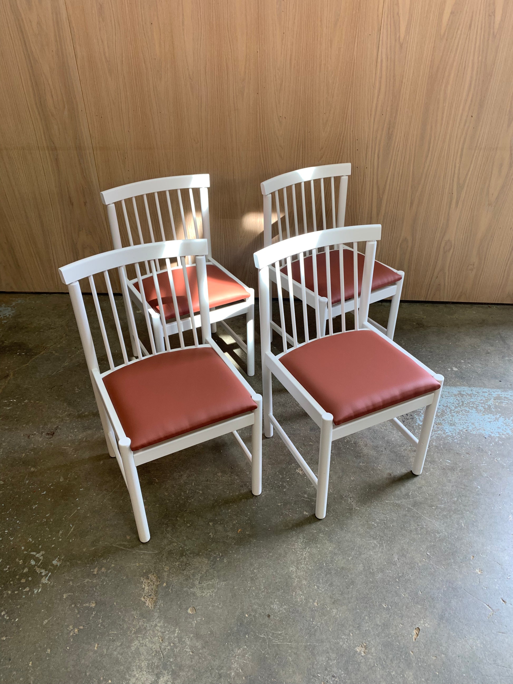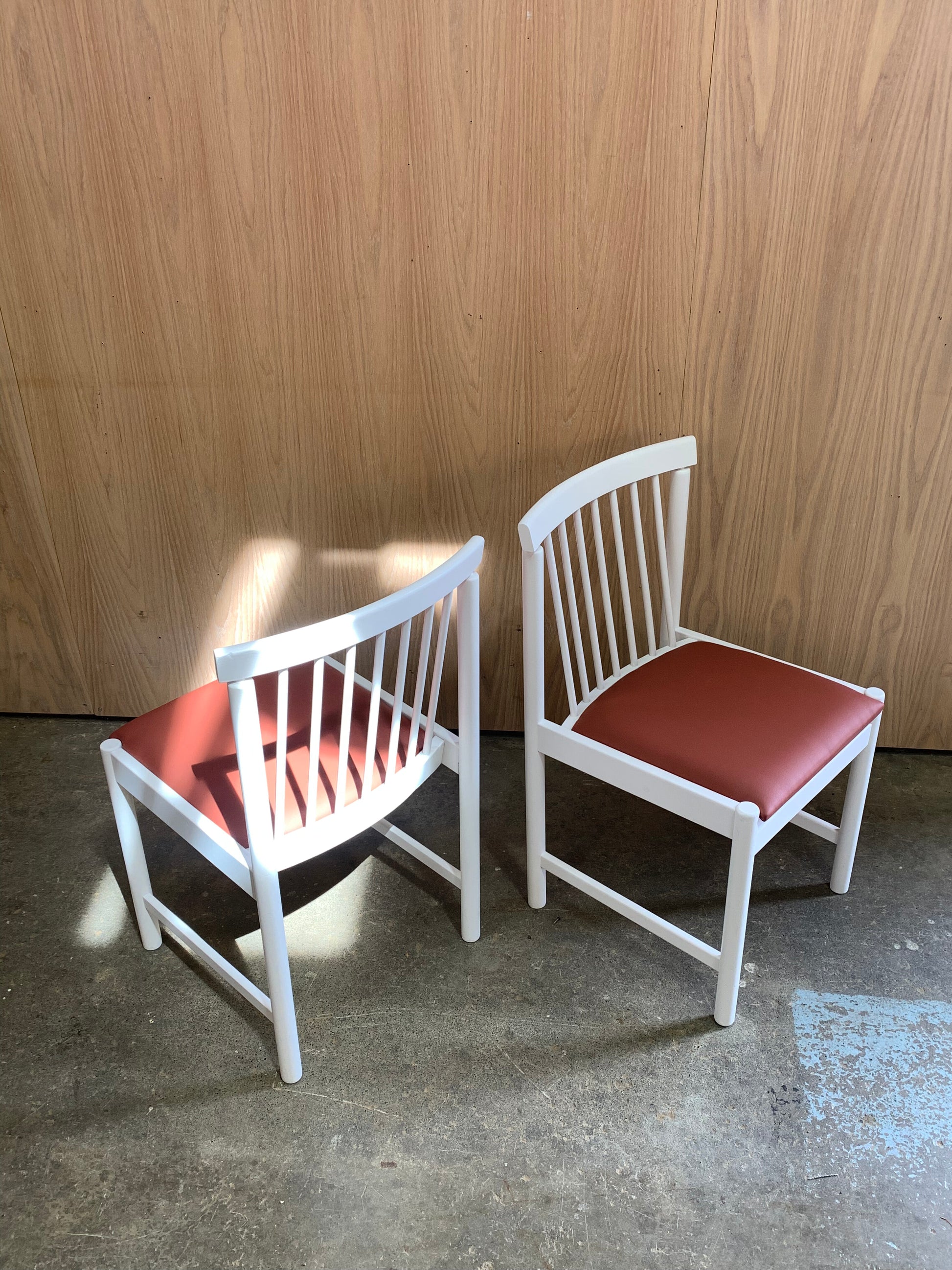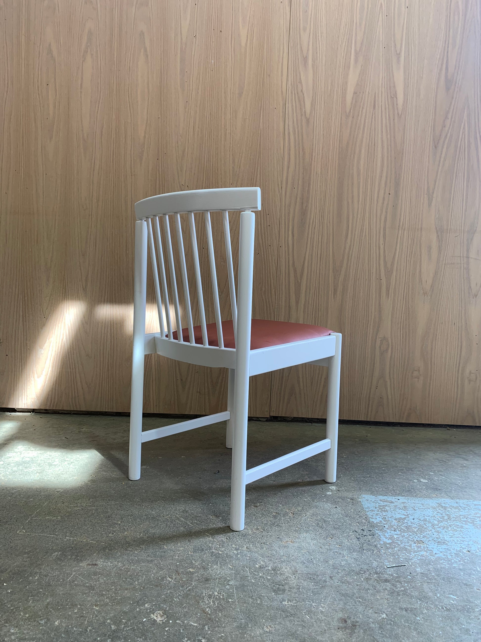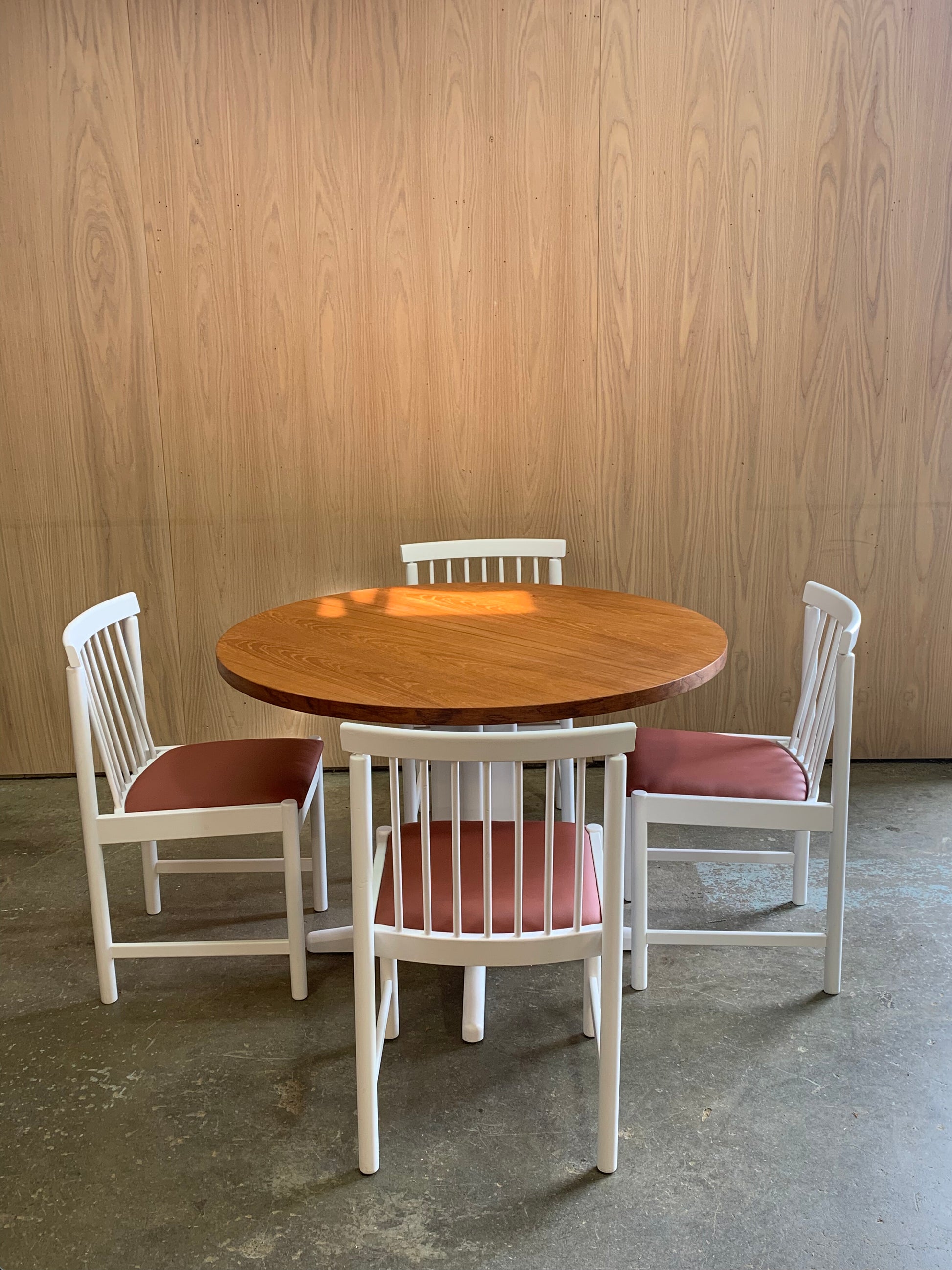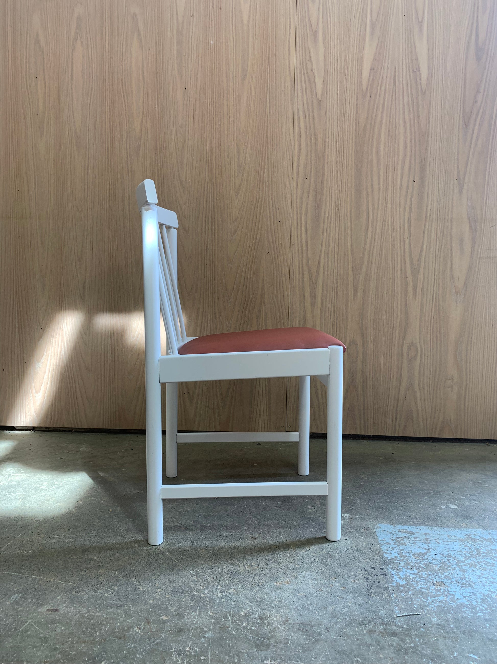 Don’t need the full set? The white lacquered spindle chairs pair beautifully with many of the teak dining tables we have in stock.