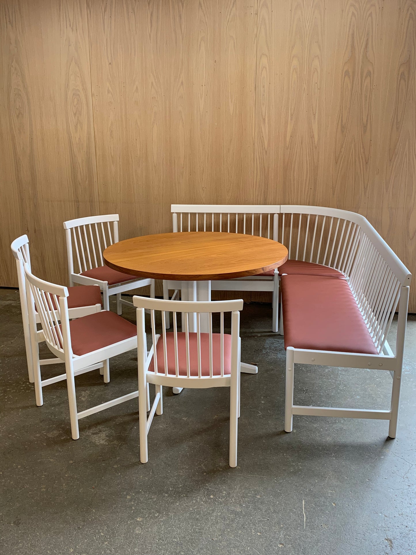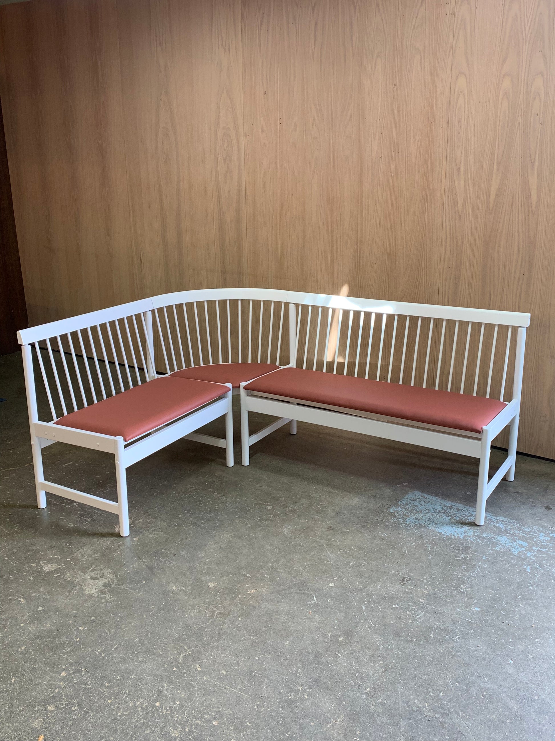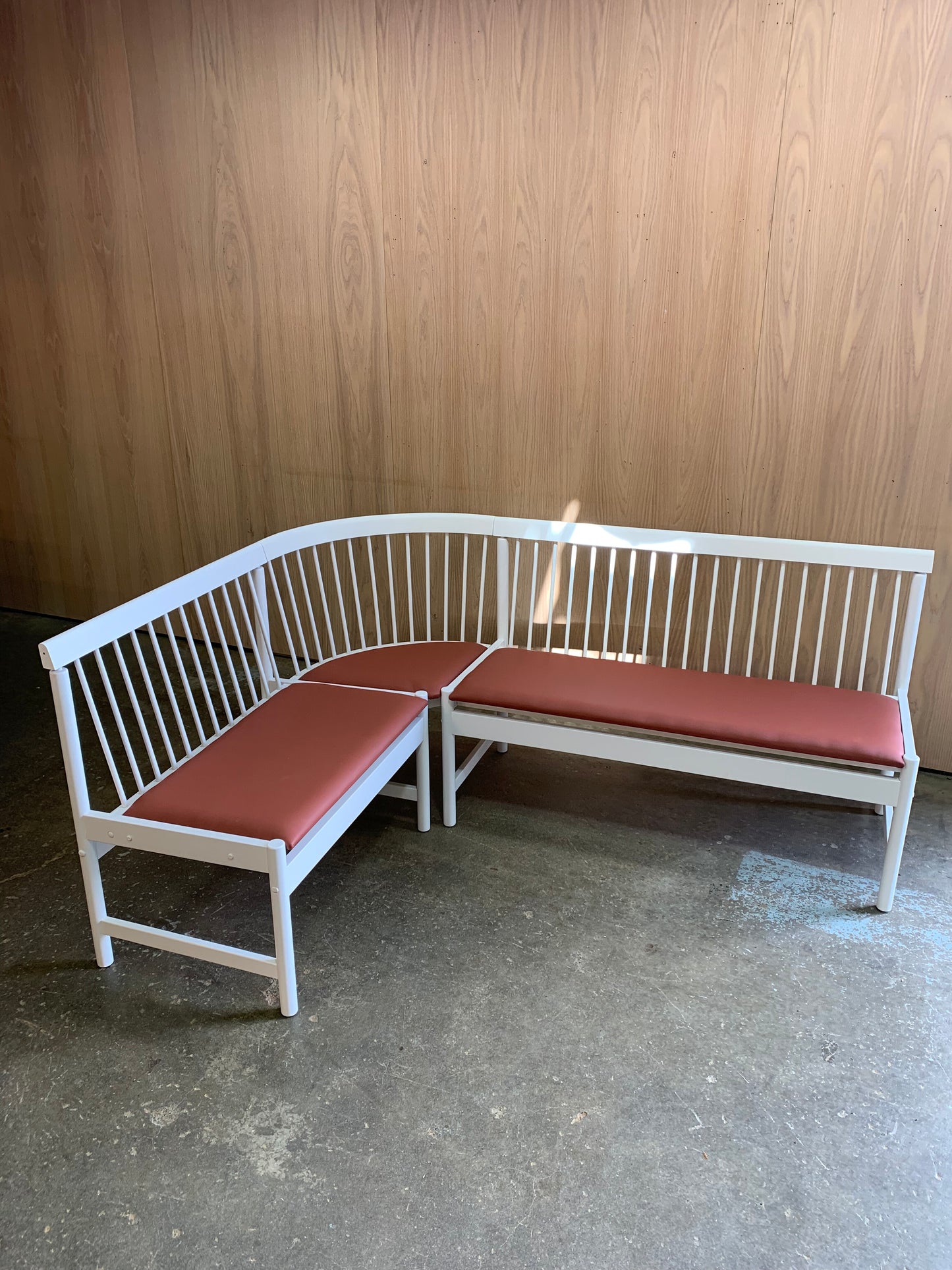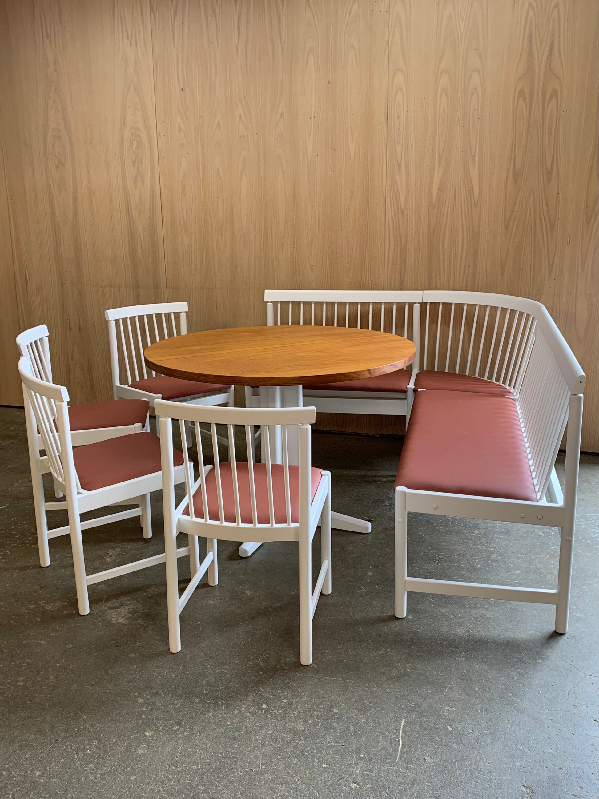 Freshly restored and in excellent condition throughout, the set seats up to ten in a surprisingly compact footprint — perfect for a kitchen corner, breakfast area, or even a compact commercial setting. The benches can also be used separately in an entryway, mudroom, or along a hallway wall, making this one of the most adaptable vintage sets we’ve come across.