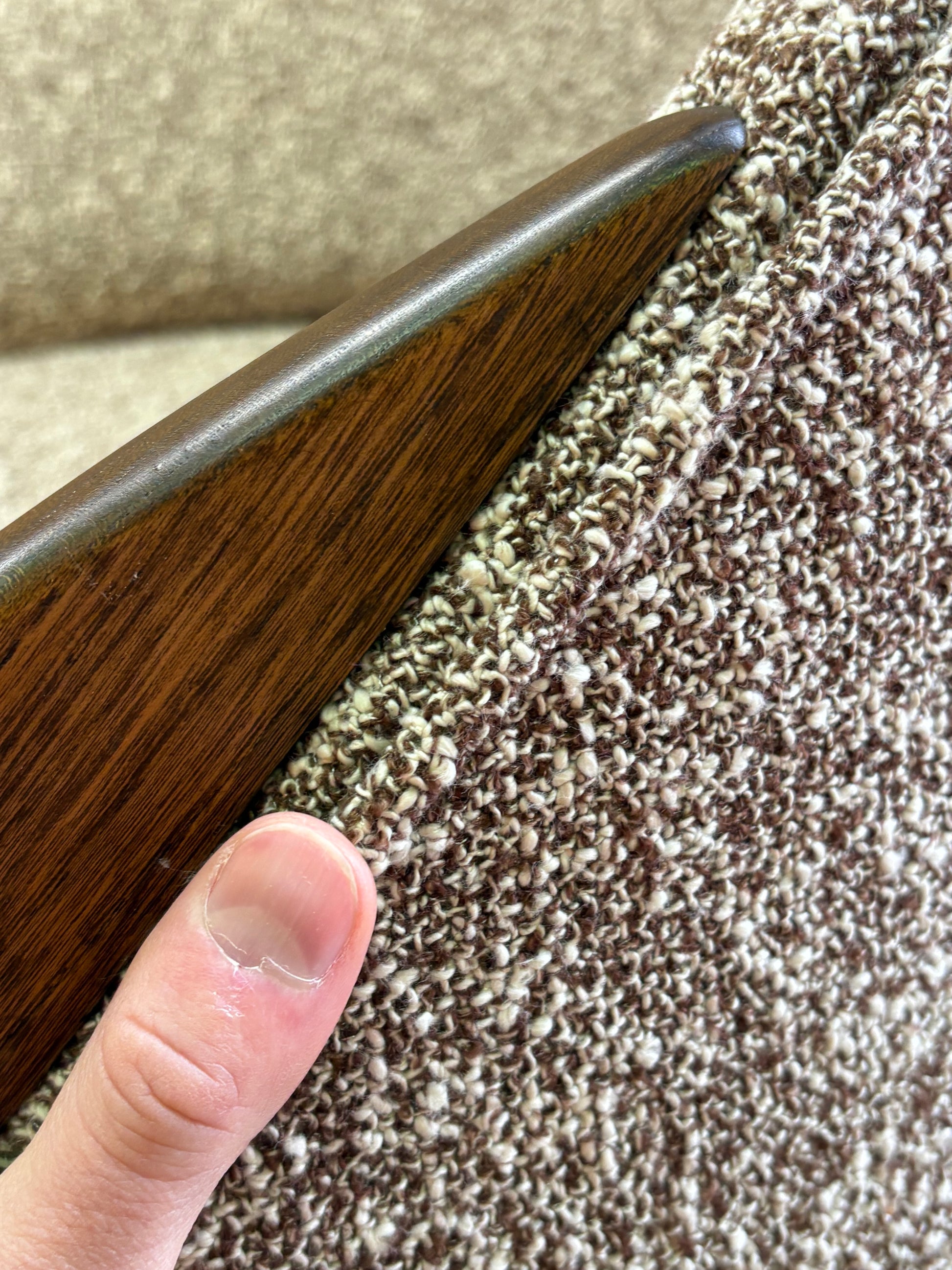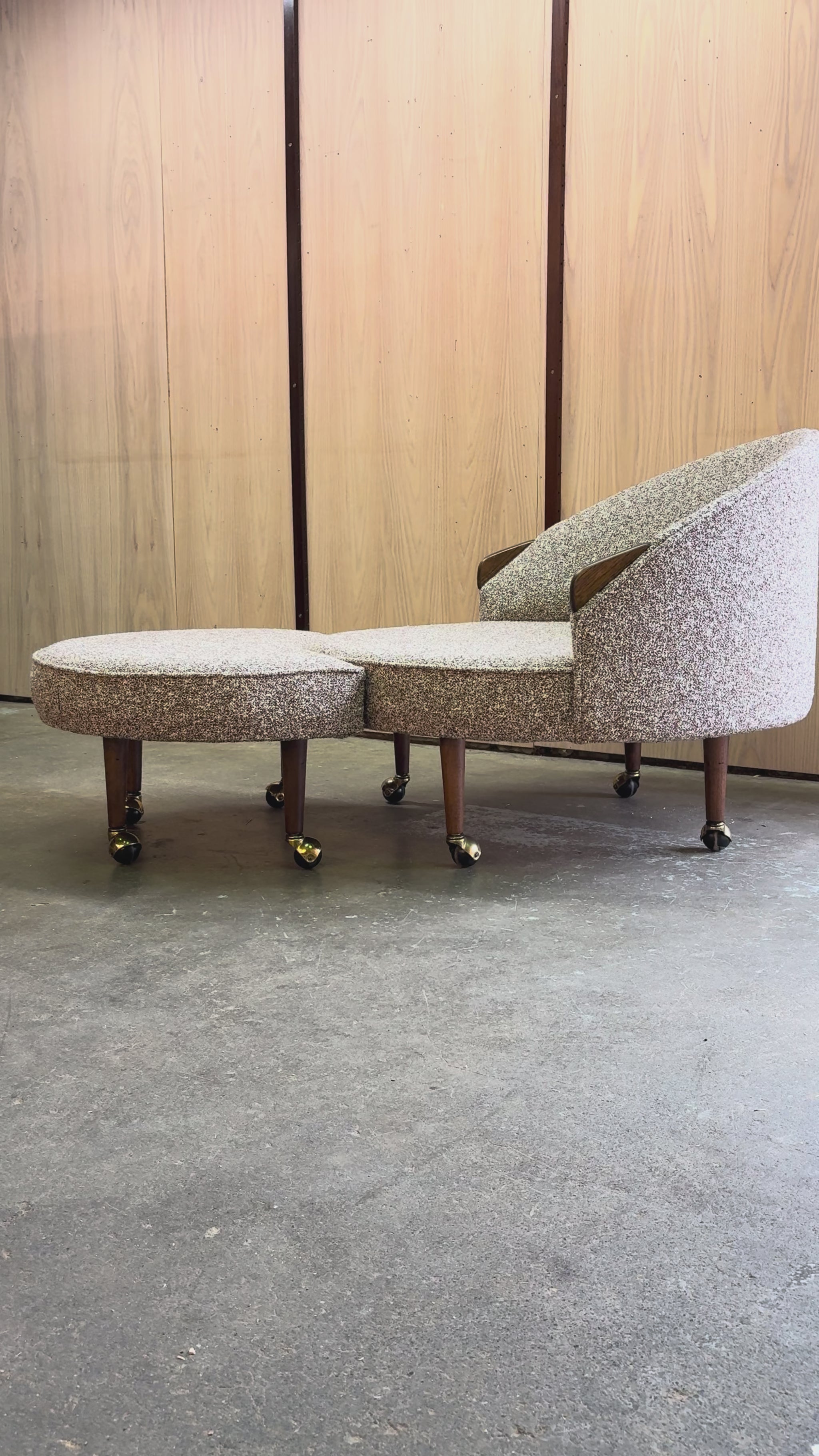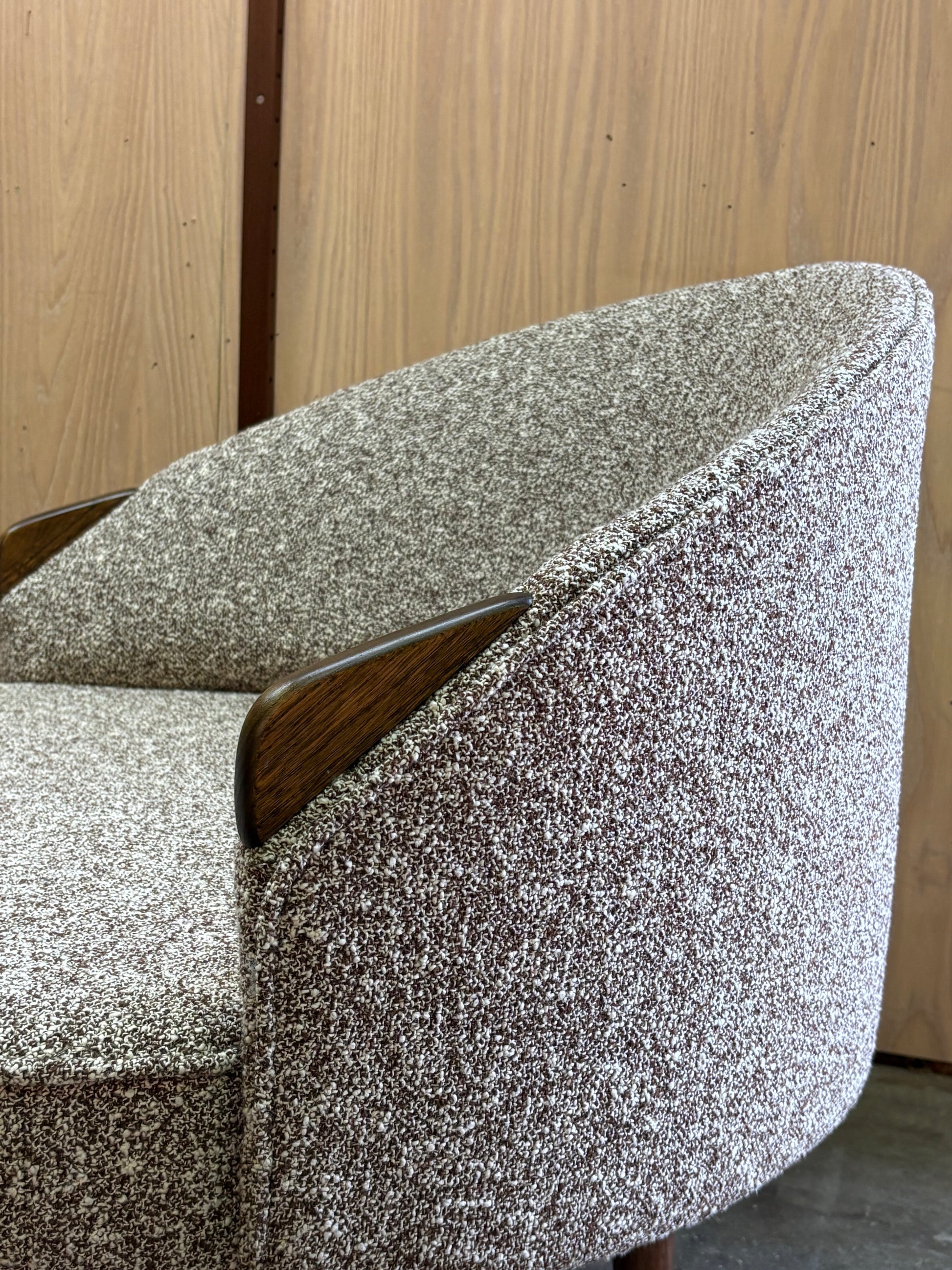 Fully restored by our team and newly upholstered in a soft, inviting high-quality bouclé, this set offers exceptional comfort and a beautifully tactile finish. A bold yet timeless design that captures the spirit of American modernism at its most expressive, and a standout statement piece in any interior.