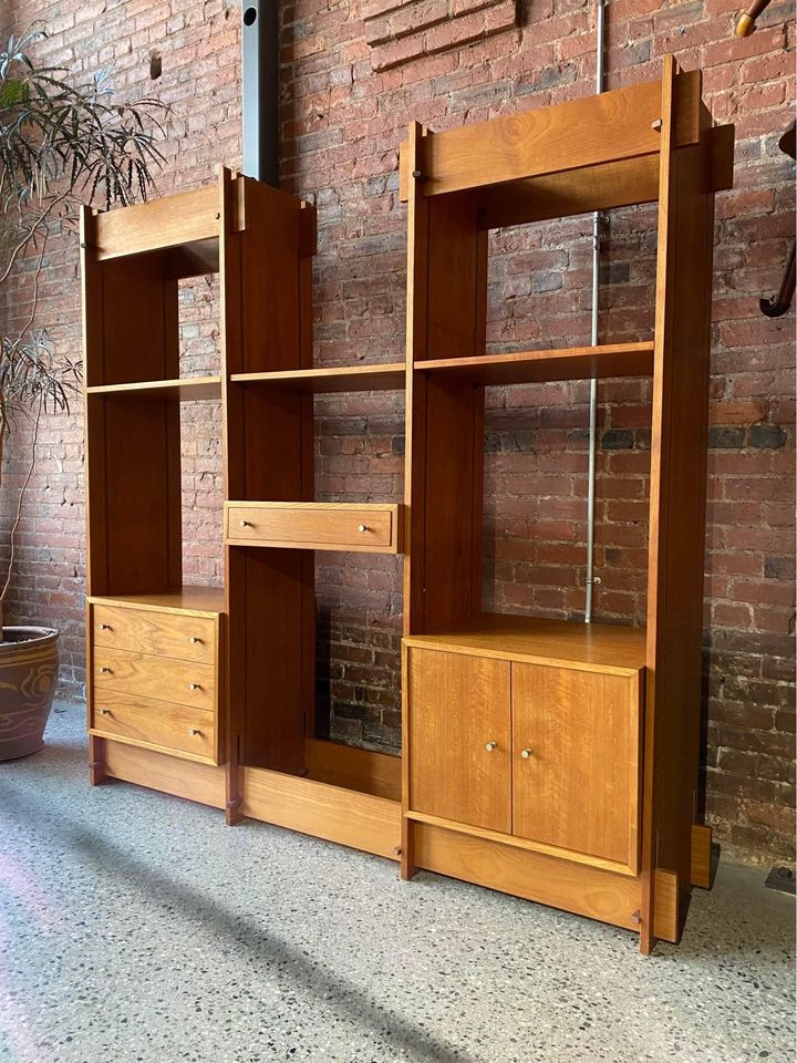 1960s Mid Century Teak Freestanding Wall System Bookcase