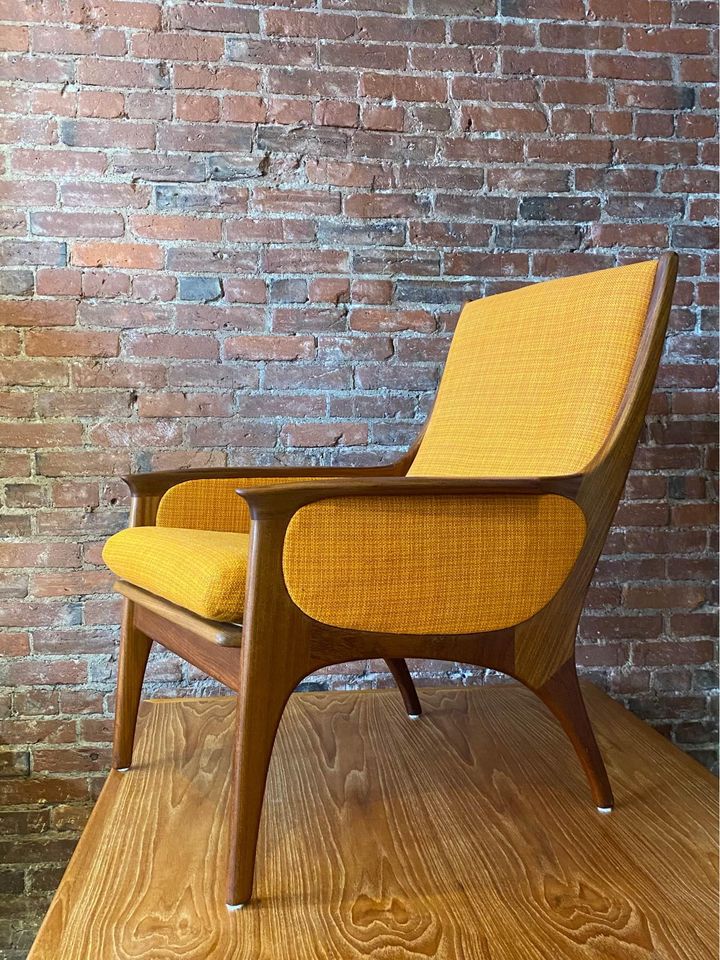 Fantastic 1960s teak lounge chair by R Huber of Canada. Freshly restored and in amazing condition.