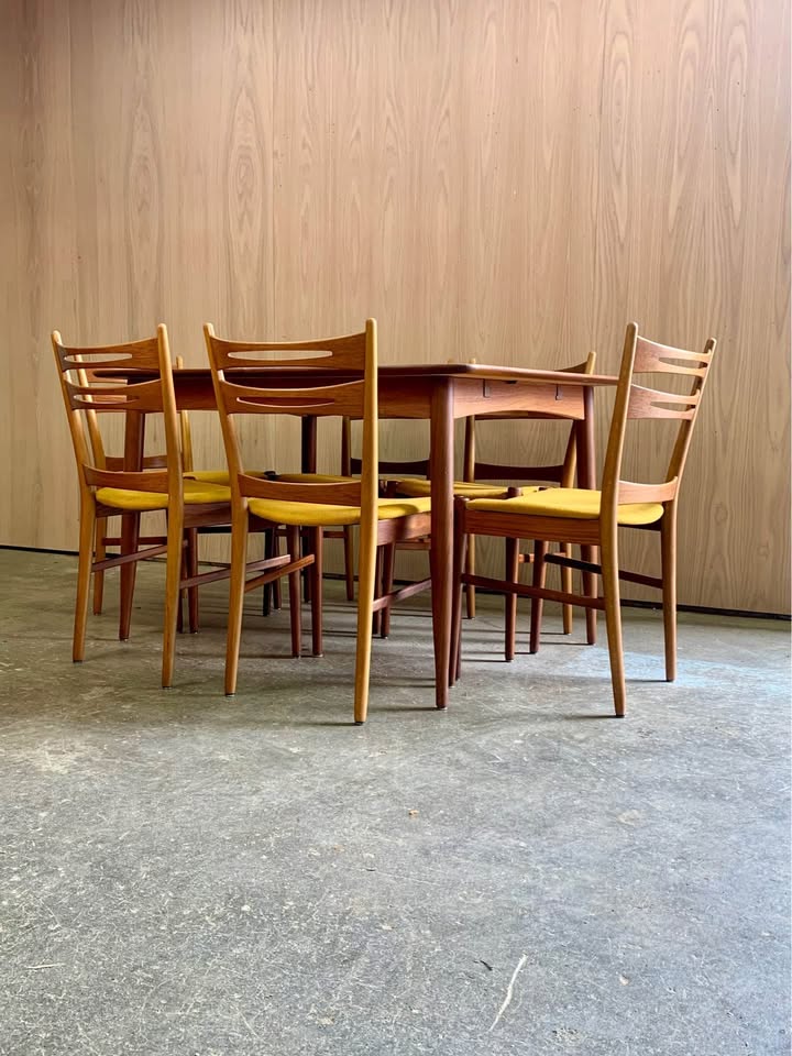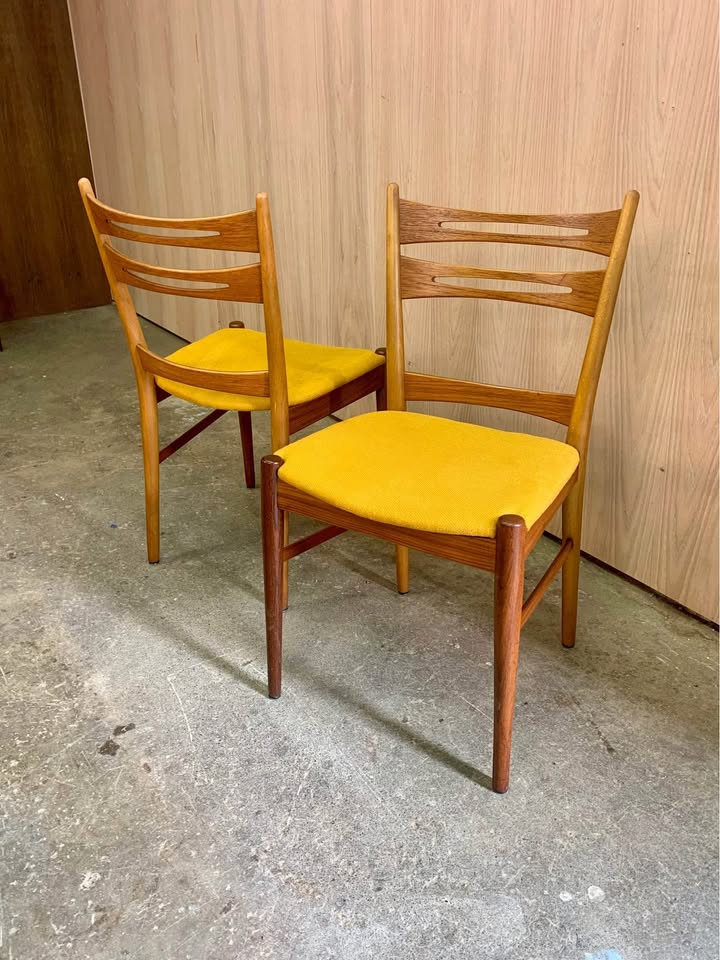 Fresh from a complete restoration, this exquisite set of 1960s Norwegian dining chairs is ready to impress. Crafted from a striking combination of teak, beech, and Afromosia, these chairs showcase the graceful lines and bold design elements that define mid-century Scandinavian style. Expertly restored and newly reupholstered with top-quality materials, this set is in fantastic condition and built to last.