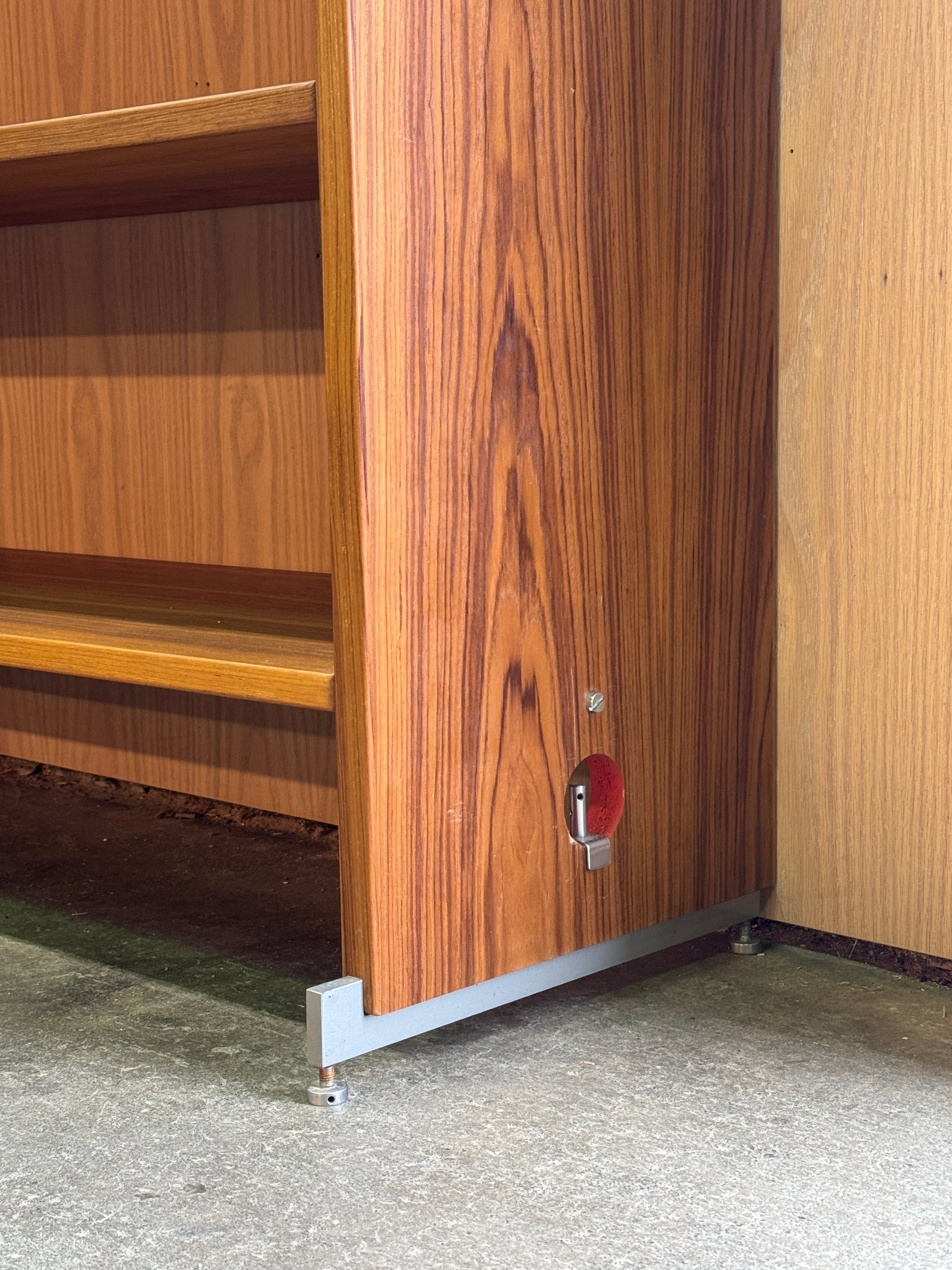 The unit is in excellent vintage condition. The teak surfaces are clean and well maintained, with minor signs of wear consistent with age. Doors slide smoothly, and all structural elements remain solid.