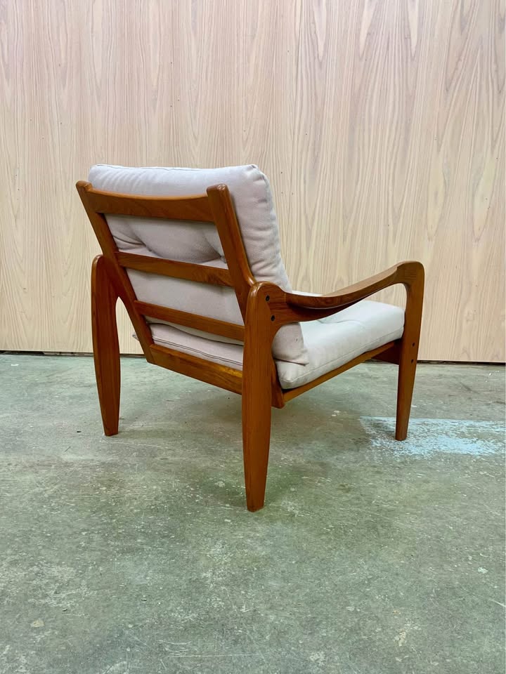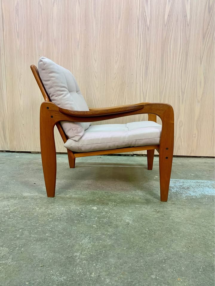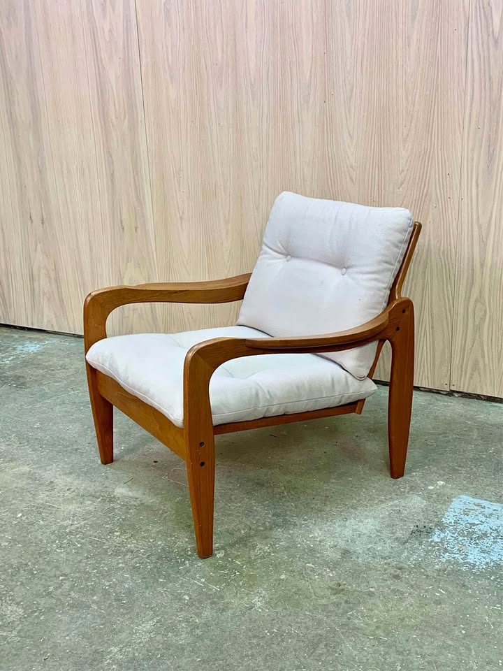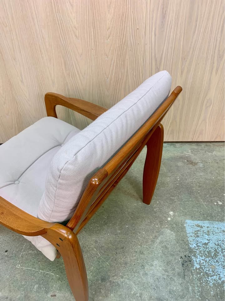 New to our collection, we’re thrilled to introduce this distinctive teak easy chair from the 1960s. With its bold, swooping lines and a unique seat design that creates a floating effect, this piece is both eye-catching and timeless. Carefully preserved over the years, it has been freshly cleaned and polished by our team and is available with custom upholstery options. Have questions or ideas? Don’t hesitate to reach out!