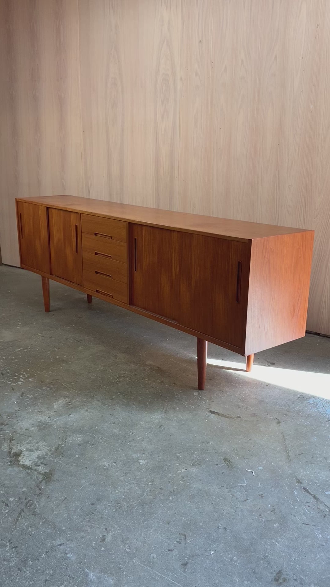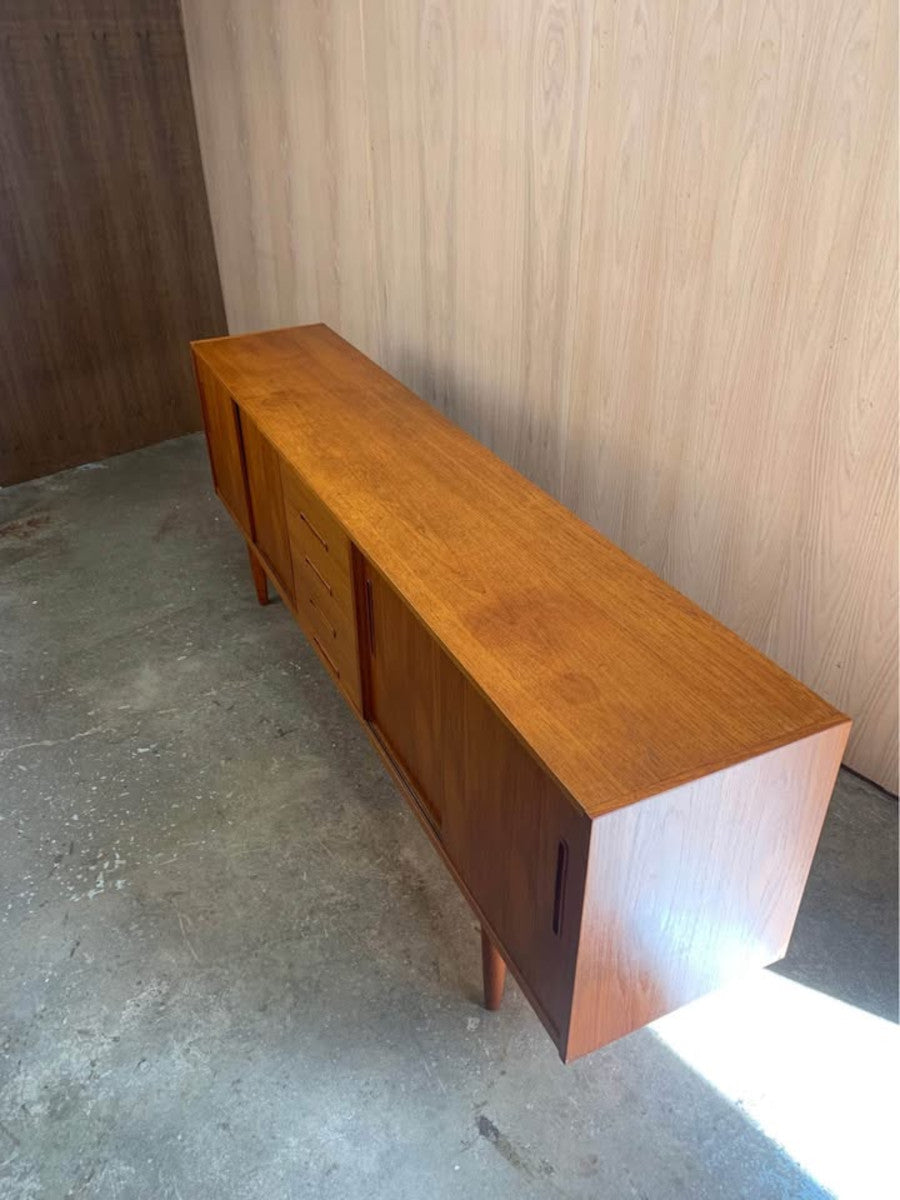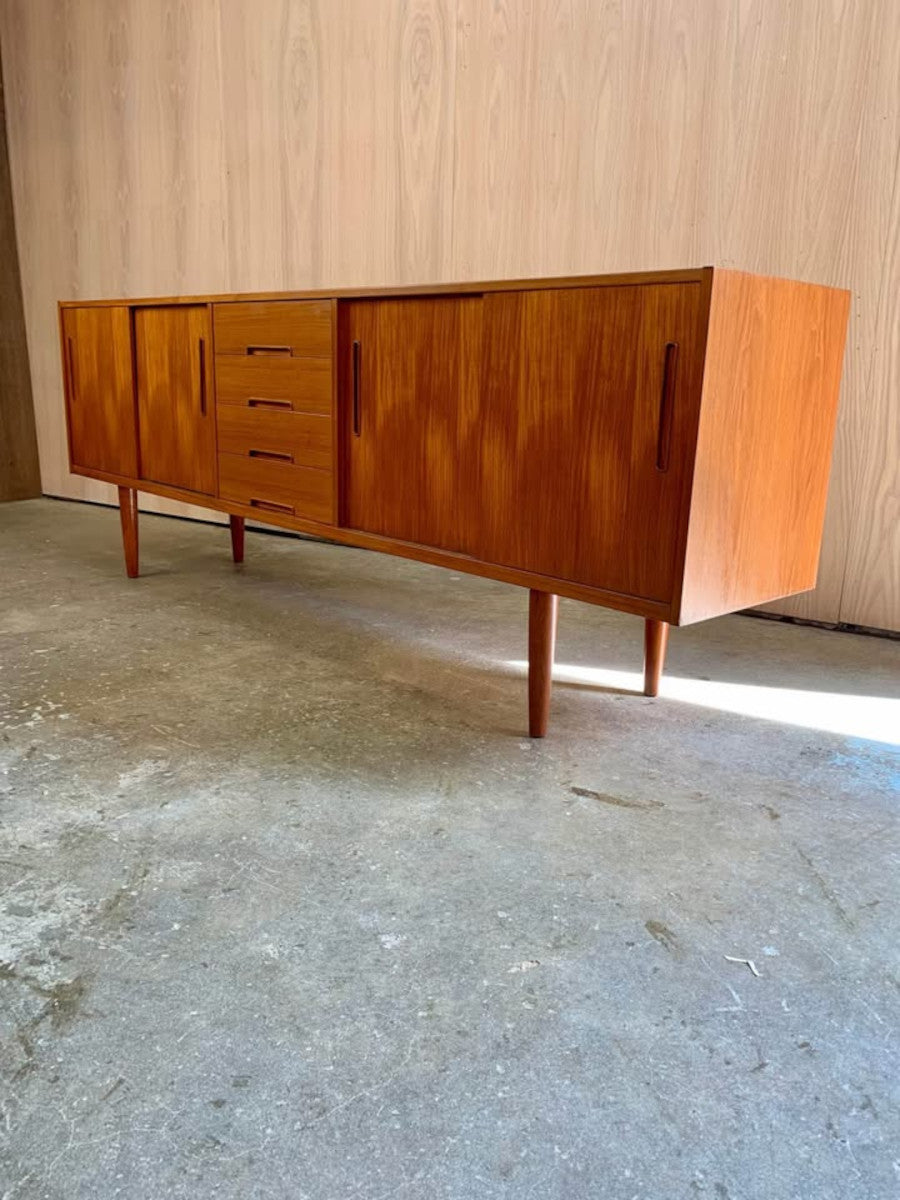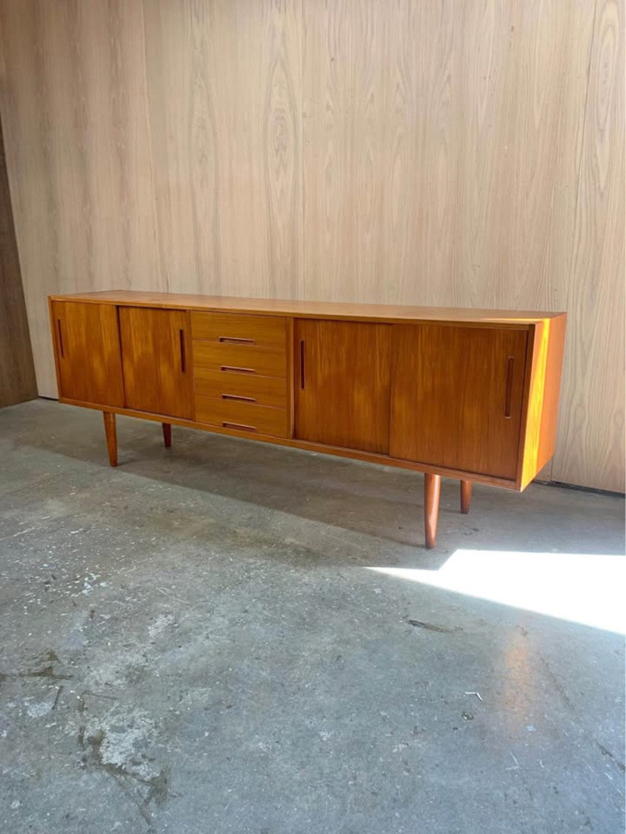 Designed by Nils Jonsson for Troeds of Sweden, this 1960s teak credenza is a prime example of Scandinavian modern design at its most functional and refined. Its clean lines, sliding doors, and sculpted recessed pulls create a balanced and timeless aesthetic, while the rich teak grain offers warmth and natural character.