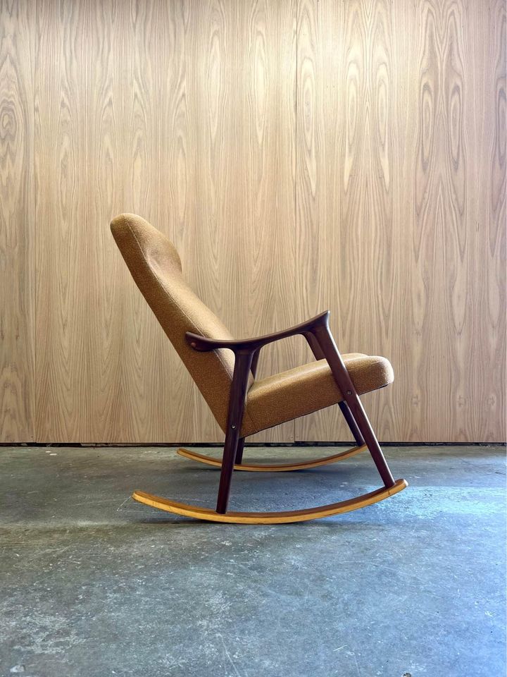1970s Afrormosia and Teak Norwegian Rocking Chair