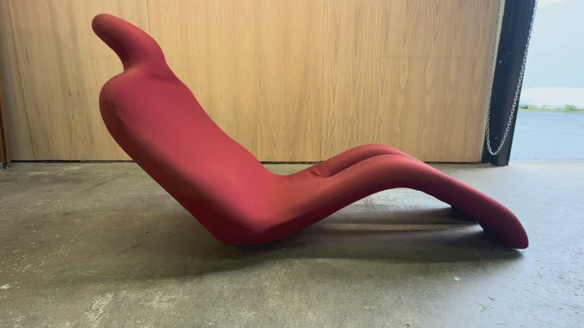 This example is upholstered in red fabric. The surface is clean and consistent, with no visible interruptions. The chair is in excellent condition, with minimal signs of wear and a stable internal structure.