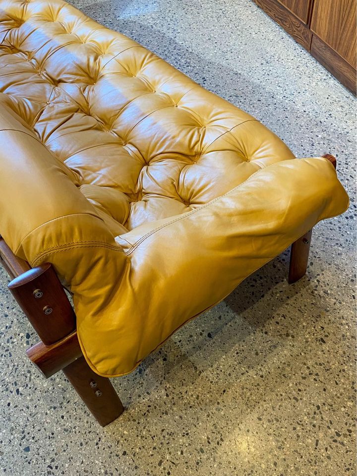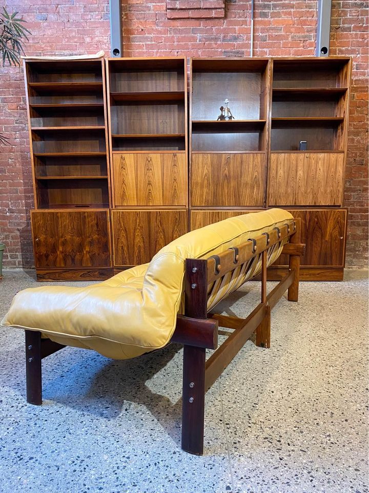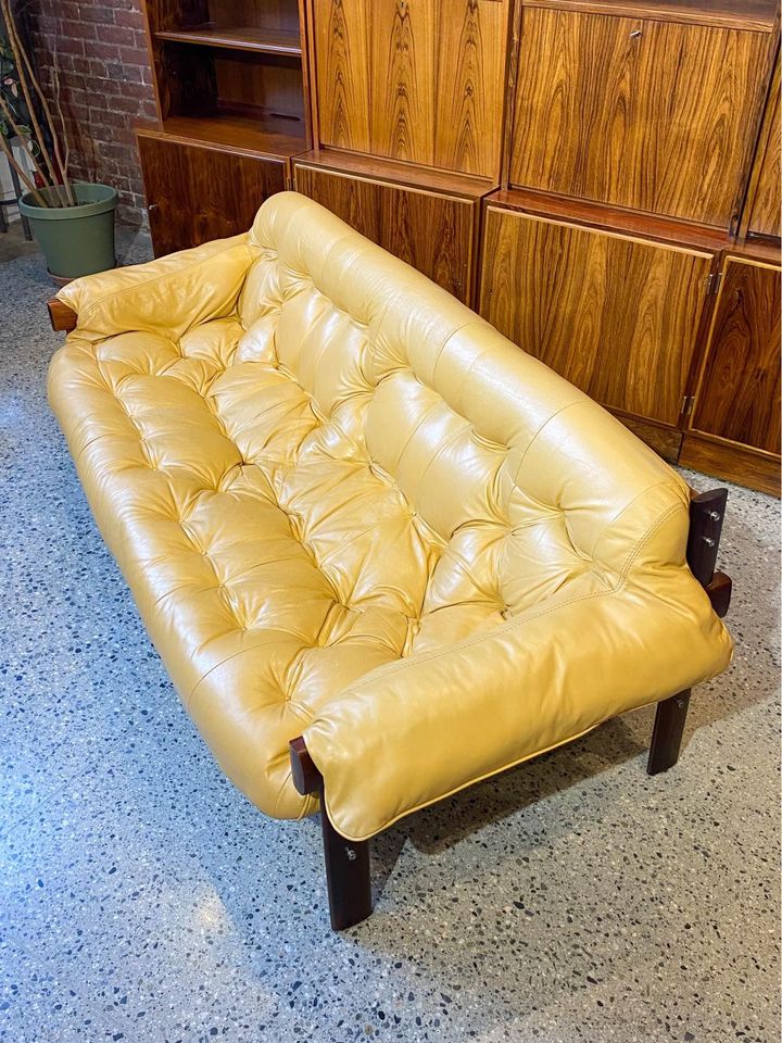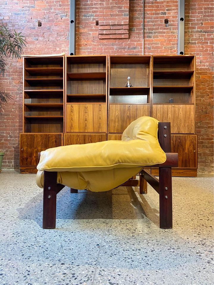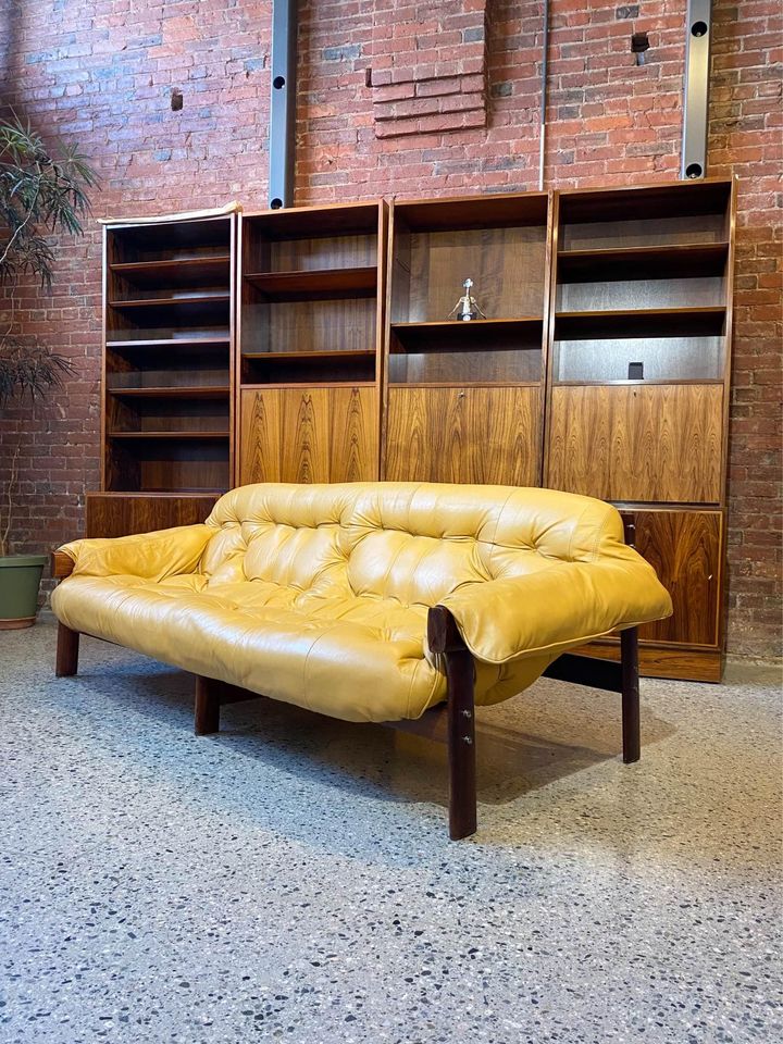 Stunning example of Percival Lafer’s MP-41 sofa in Jacaranda wood and original leather. These designs are getting harder and harder to find and pieces with original leather in this condition are virtually non-existent. It’s buttery soft to the touch and very, very comfortable.