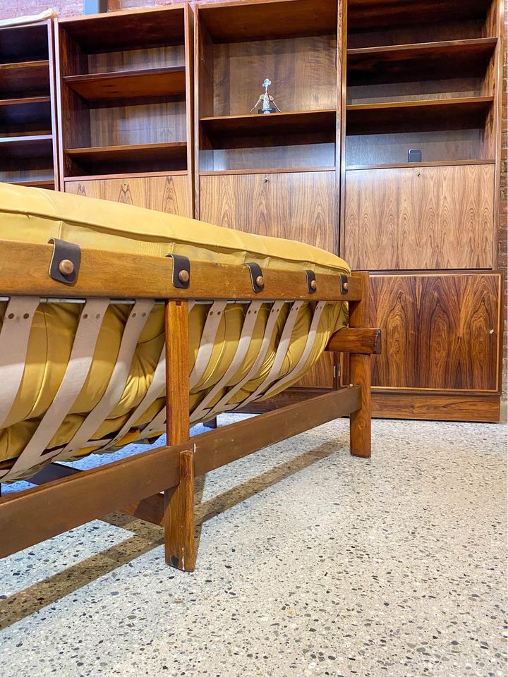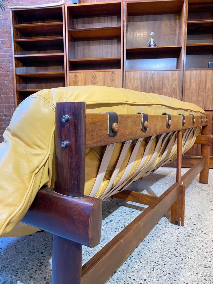 1970s Brazilian Jacaranda Wood and Leather Sofa by Percival Lafer