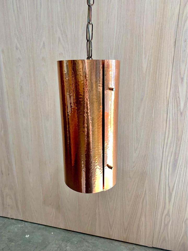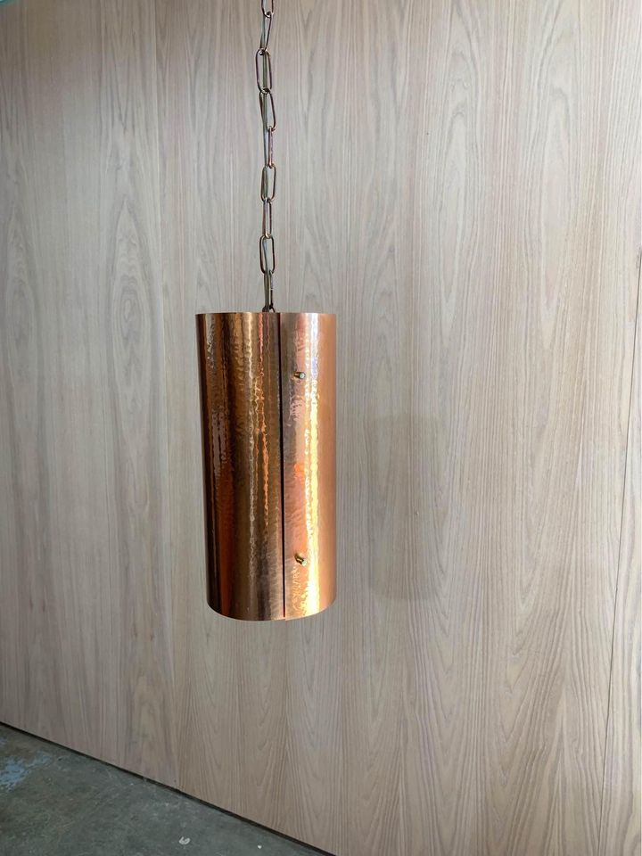 Maintained in exceptional condition throughout its lifetime, this simple light was constructed from a sheet of copper in Denmark during the 1970s. We purchased this piece from the original owner, who also provided us with the original bag it was bought in.