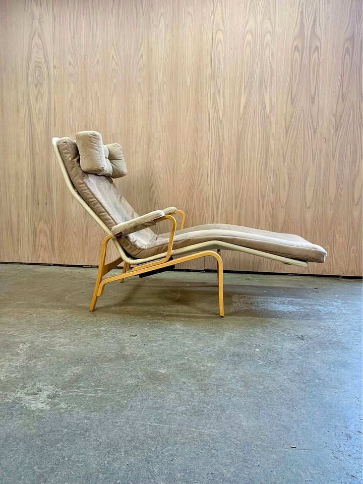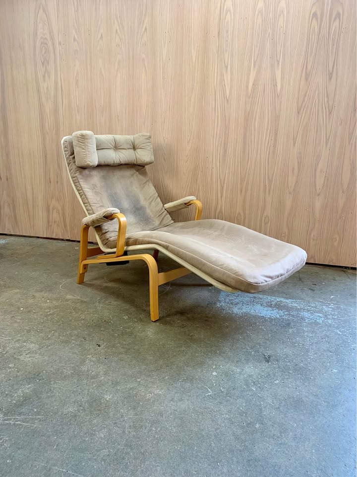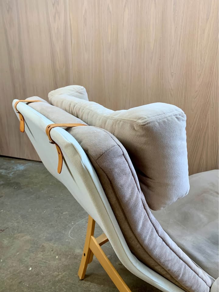 The “Fenix” chair, designed by Sam Larsson for Dux in the 1970s, is one of the most comfortable chairs we’ve ever encountered. With its elegantly ergonomic beech wood frame and smooth reclining mechanism, it invites you to relax in style. Looking to have it custom upholstered? Reach out to us—we’d love to help!