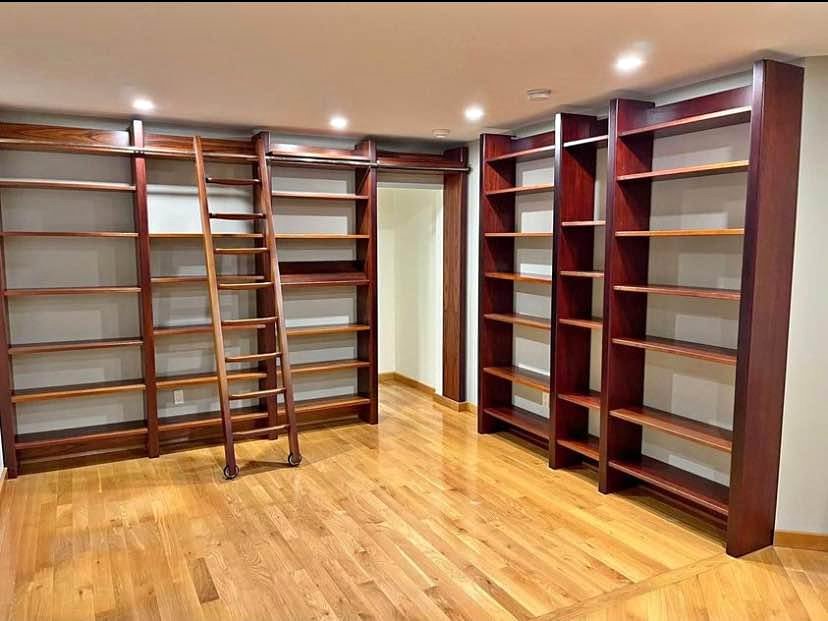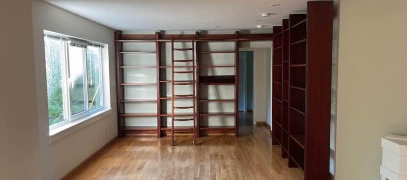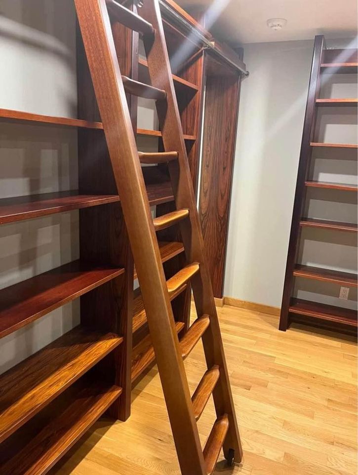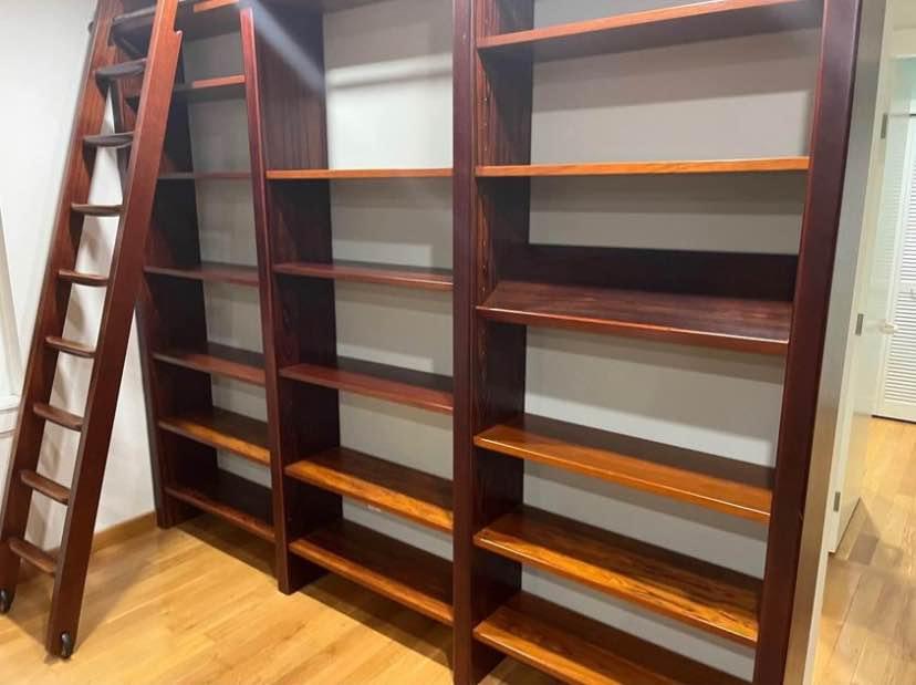 In my ten years in this industry, I have yet to encounter a more impressive method of book preservation. This expansive library showcases a distinctive fusion of rosewood and mahogany, complemented by a sliding ladder, presenting an impeccably sturdy and well-maintained ensemble. This piece was intricately crafted in Norway during the 1970s, and its minimalist design tastefully highlights the distinctive allure of the wood and its intricate grain patterns. Section 1 - 90x12x94” high Section 2 - 140.5x12x94 108.5” (with door portion) Shipping available (over ten years experience) worldwide! Follow us on Instagram! @PRAYFORMODERN We specialize in high quality Brazilian and Scandinavian teak and rosewood furniture and lighting from the 1950s-1970s. We are located in the heart of downtown Victoria and are currently meeting customers by appointment only. After something specific? Have something to sell? Send us a message!