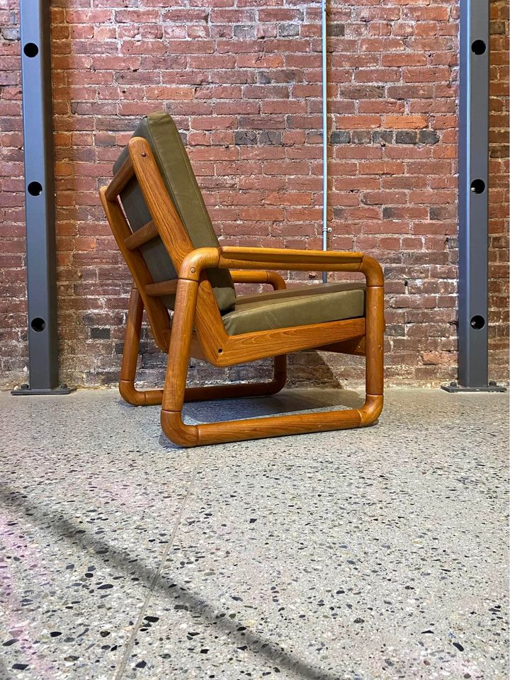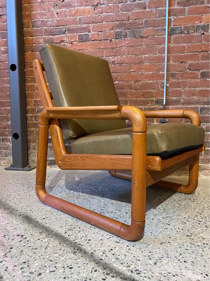 1970s Solid Teak and Leather Lounge Chair