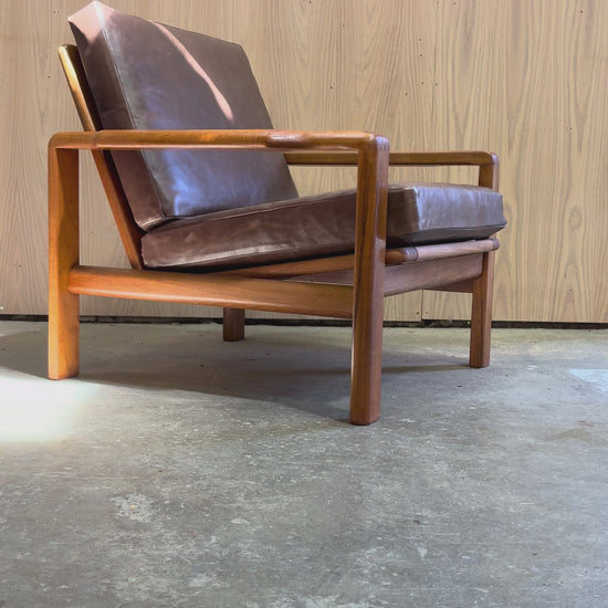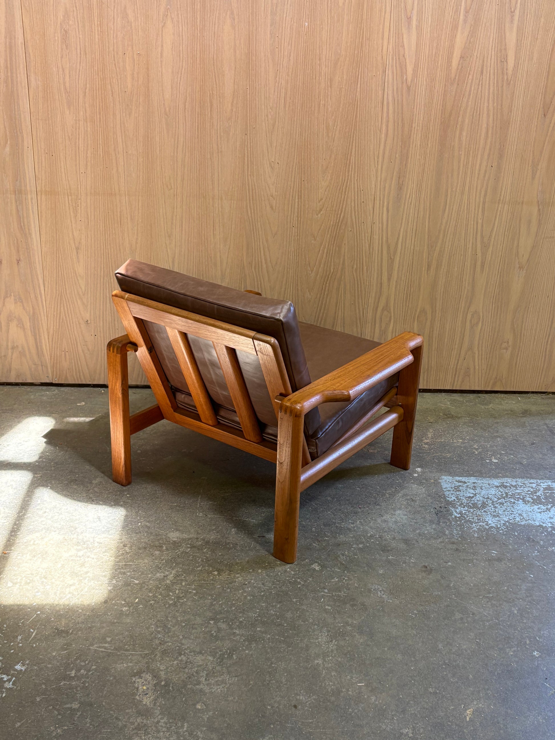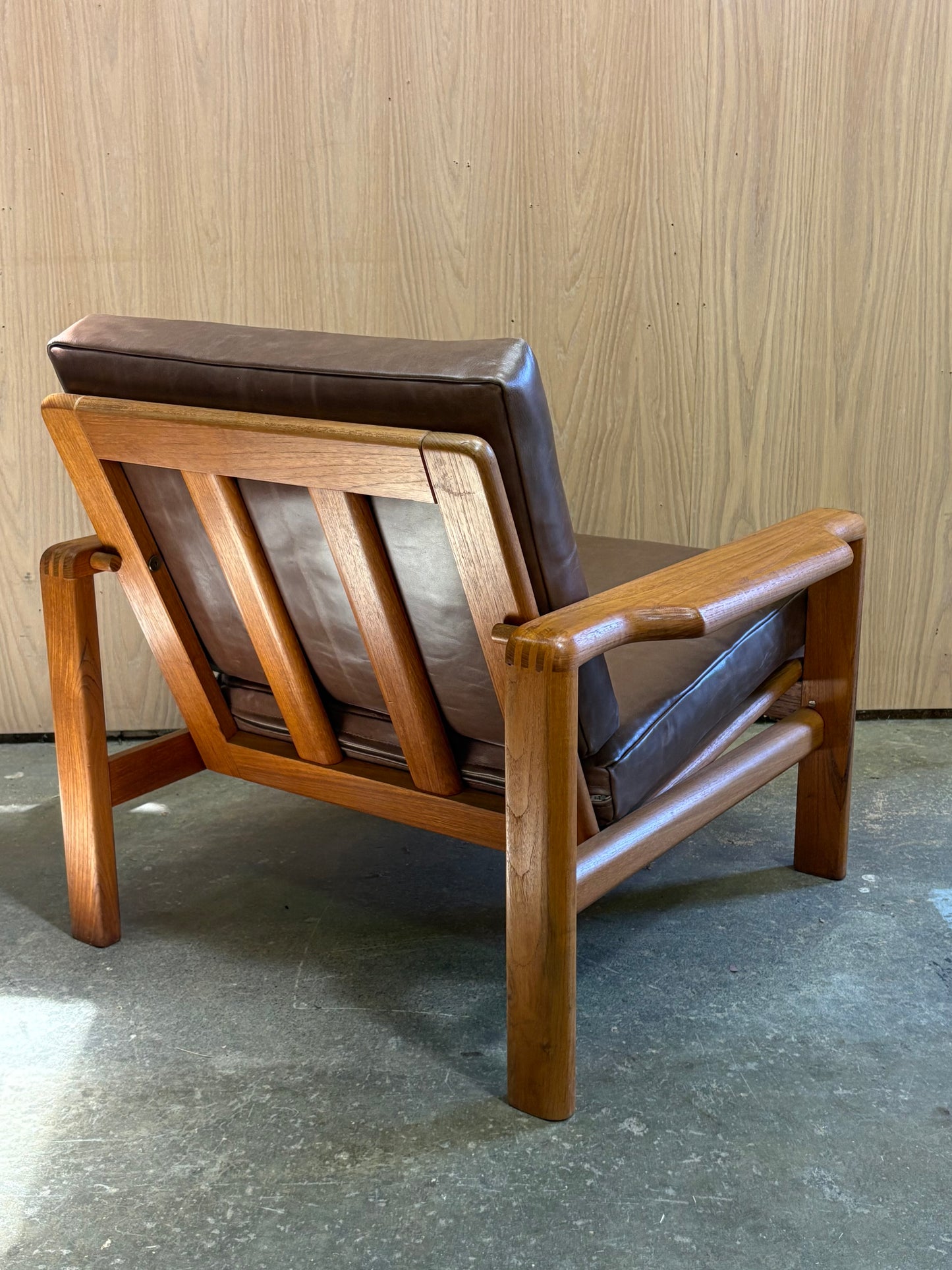 1970s Vintage Solid Teak and Leather Lounge Chair