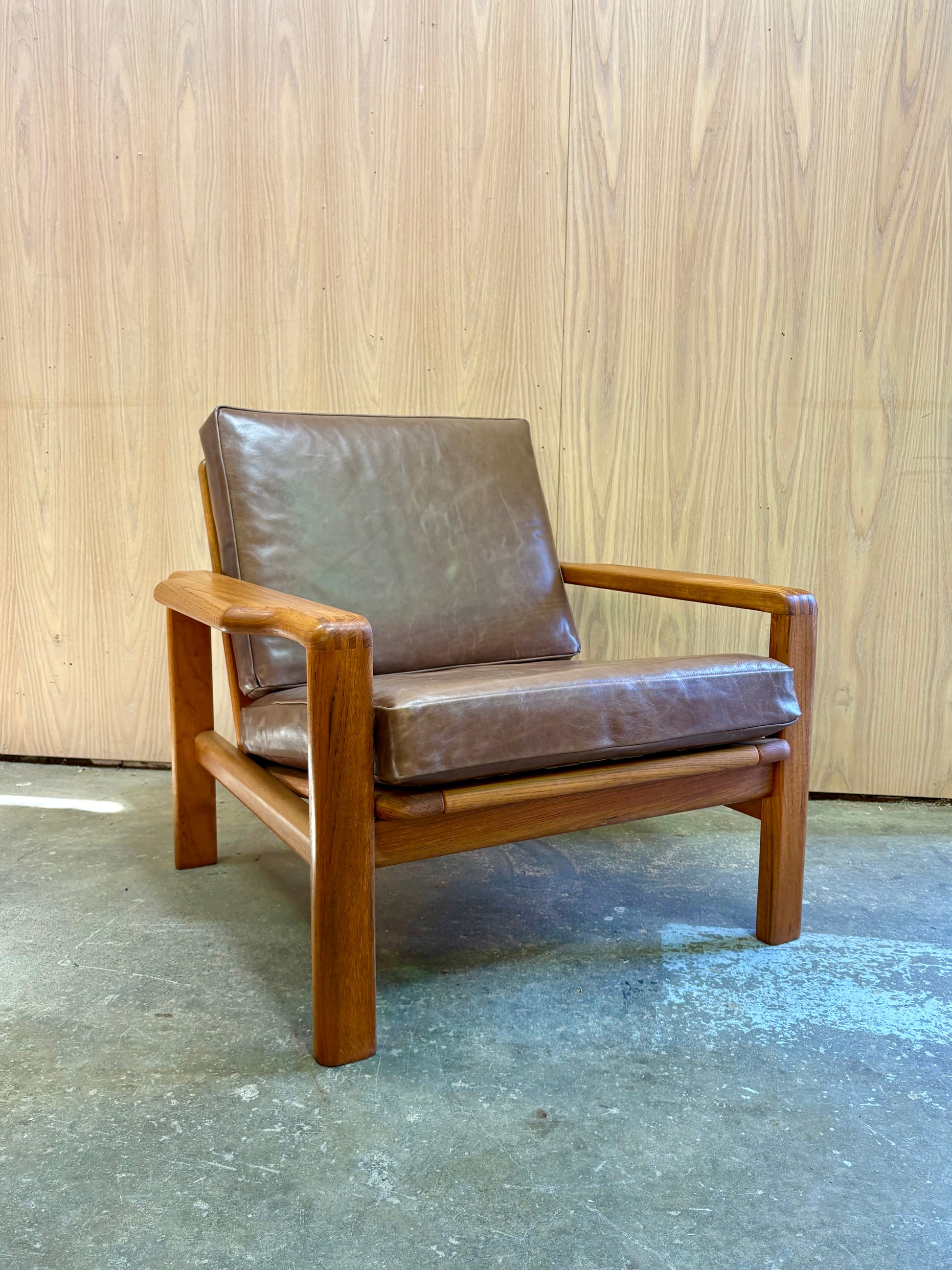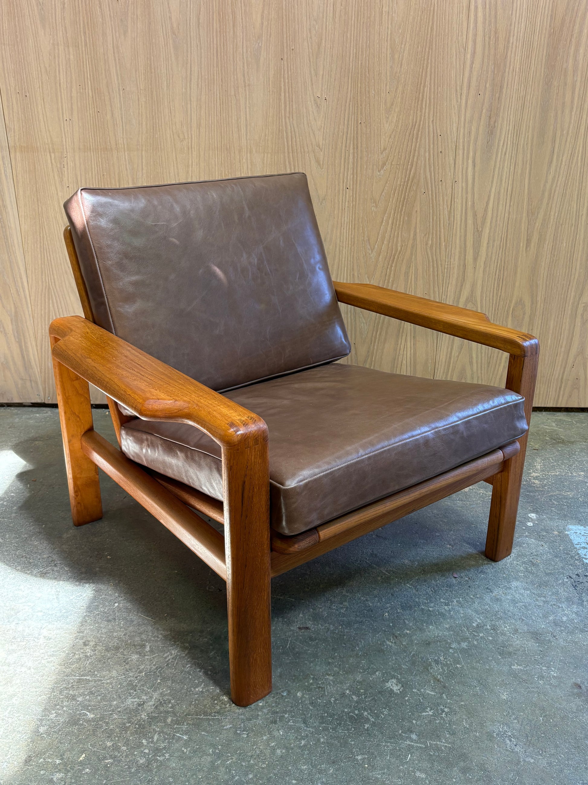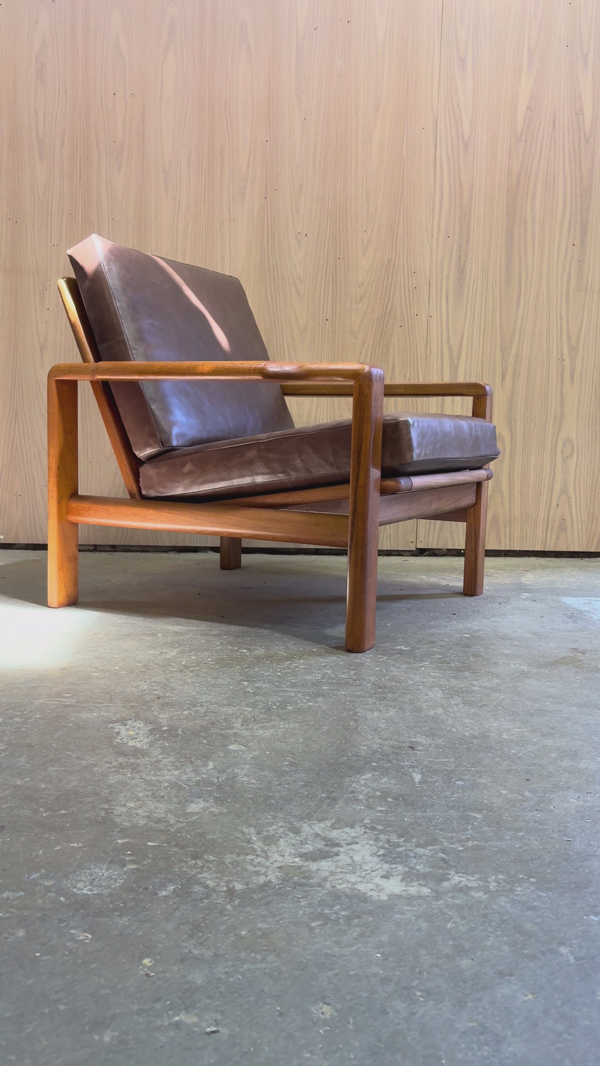 1970s Vintage Solid Teak and Leather Lounge Chair