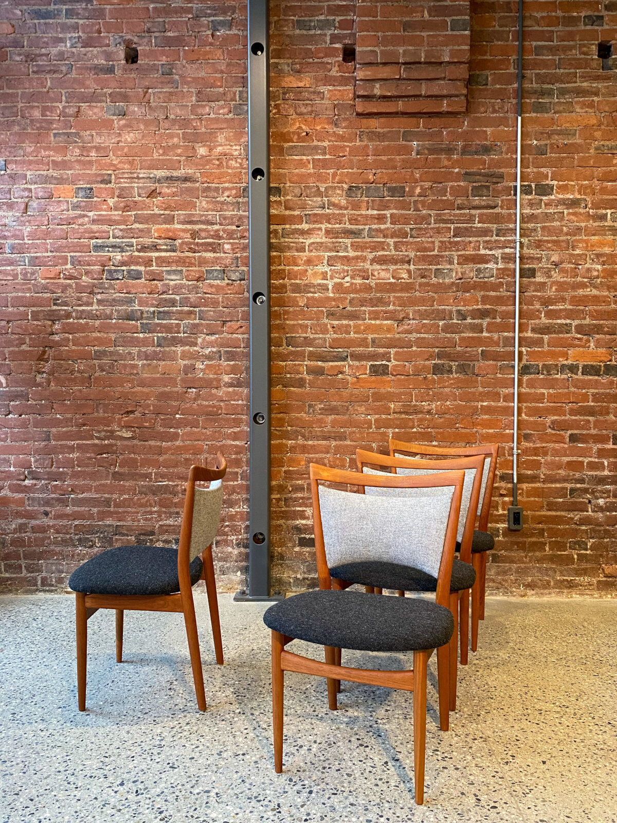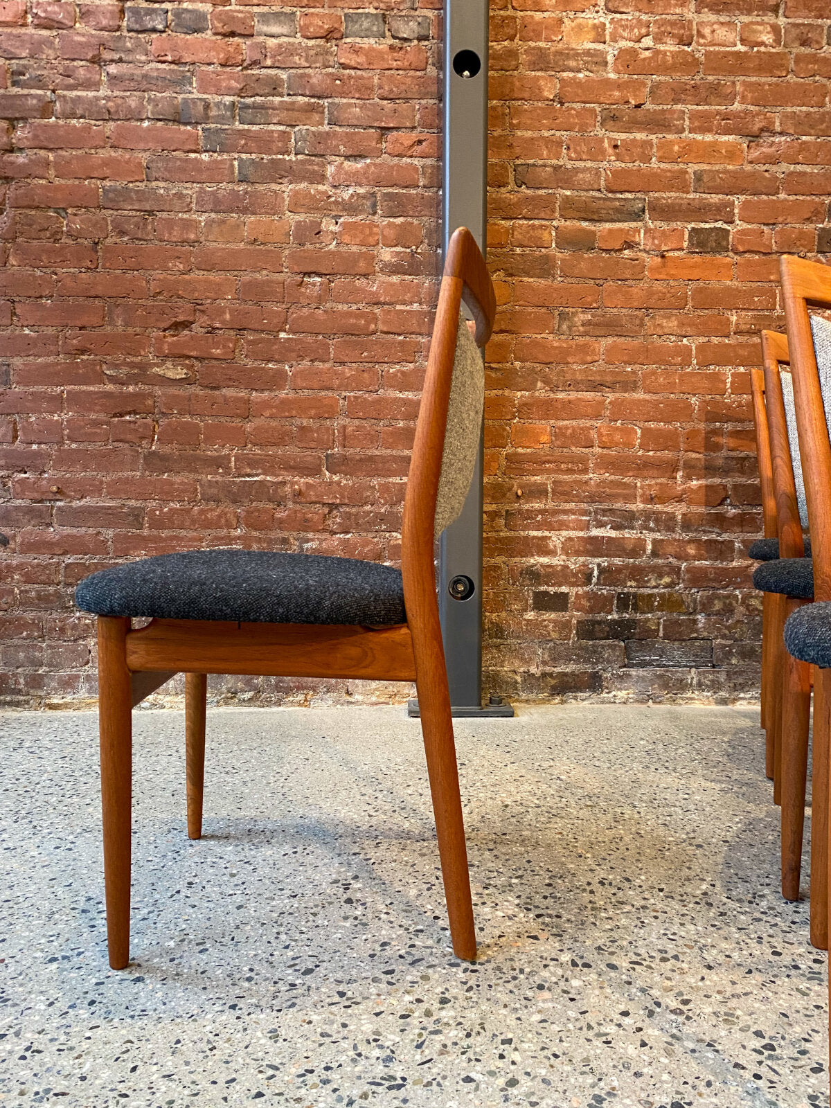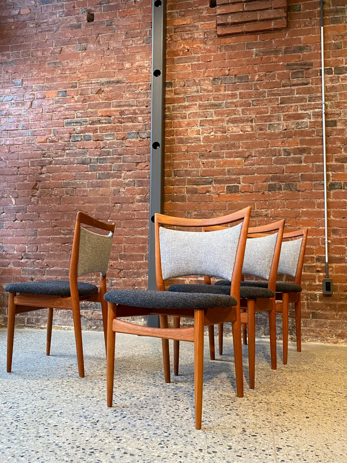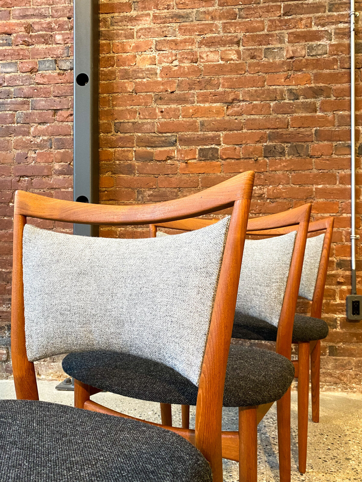 Model SW86 chairs in teak by Finn Juhl for Soren Willadsen, circa 1960s. Freshly upholstered with “Hallingdal” fabric by Kvadrat Textiles. Excellent condition. Price is for the set.