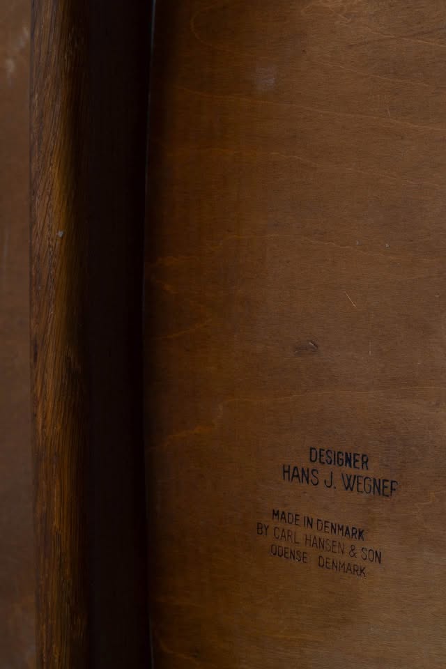 Stamped on the underside: Designer Hans J. Wegner, Made in Denmark by Carl Hansen & Son, Odense.