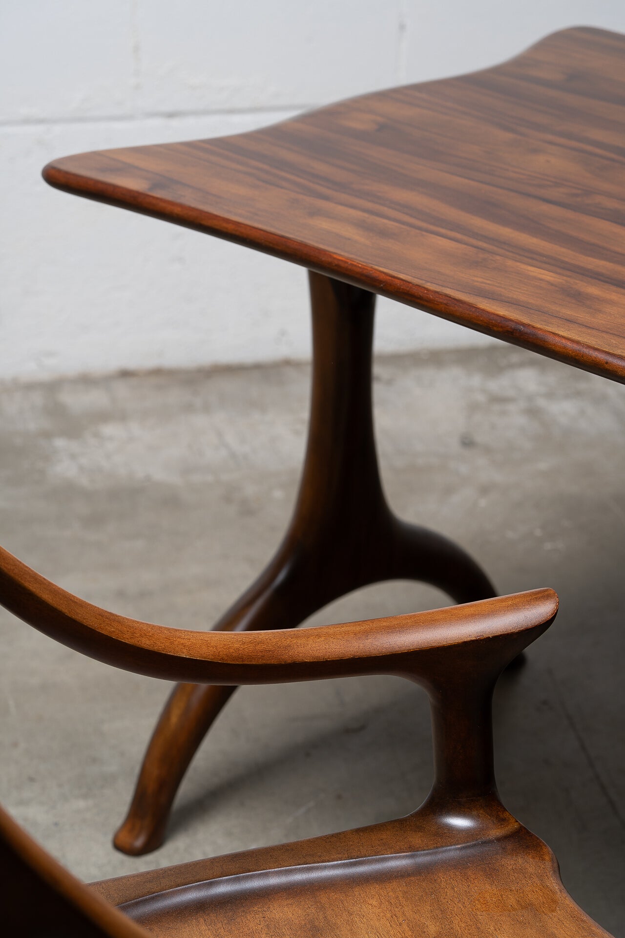 Designers and collectors who admire the timeless craftsmanship of names like Thomas Moser, George Nakashima, Vladimir Kagan, Sam Maloof, Paul Evans, and Edward Wormley will appreciate the blend of tradition and innovation present in this ensemble.