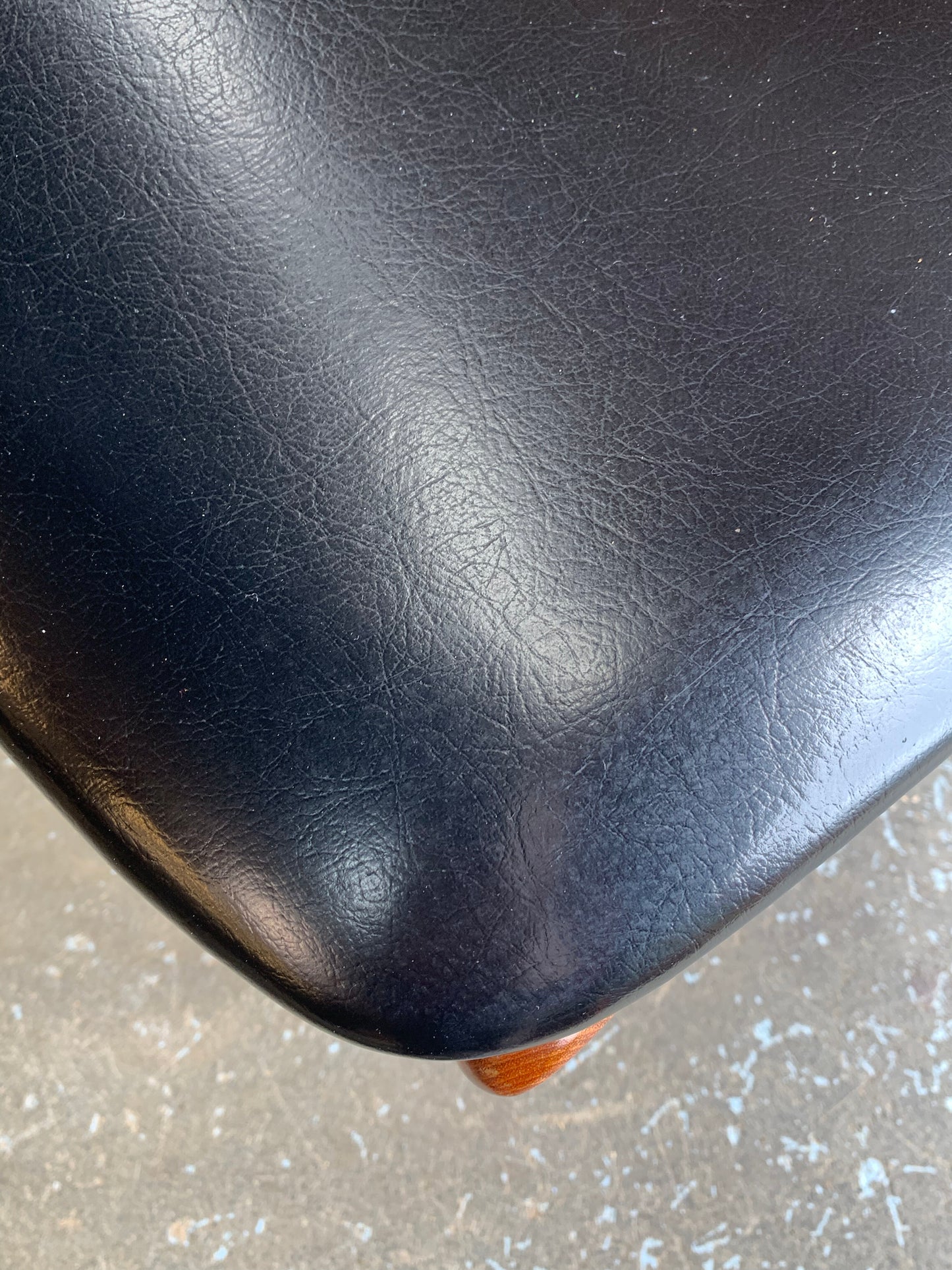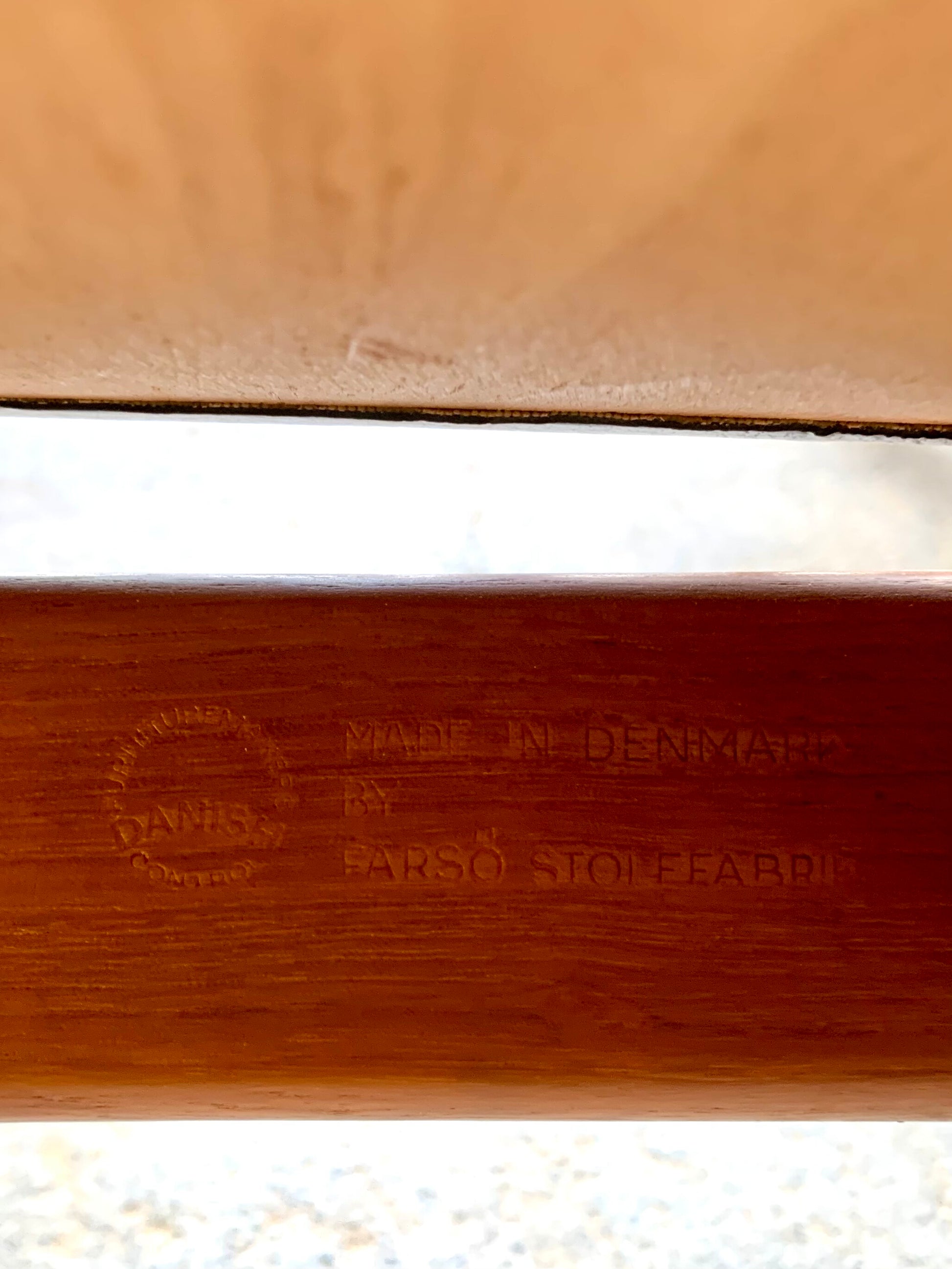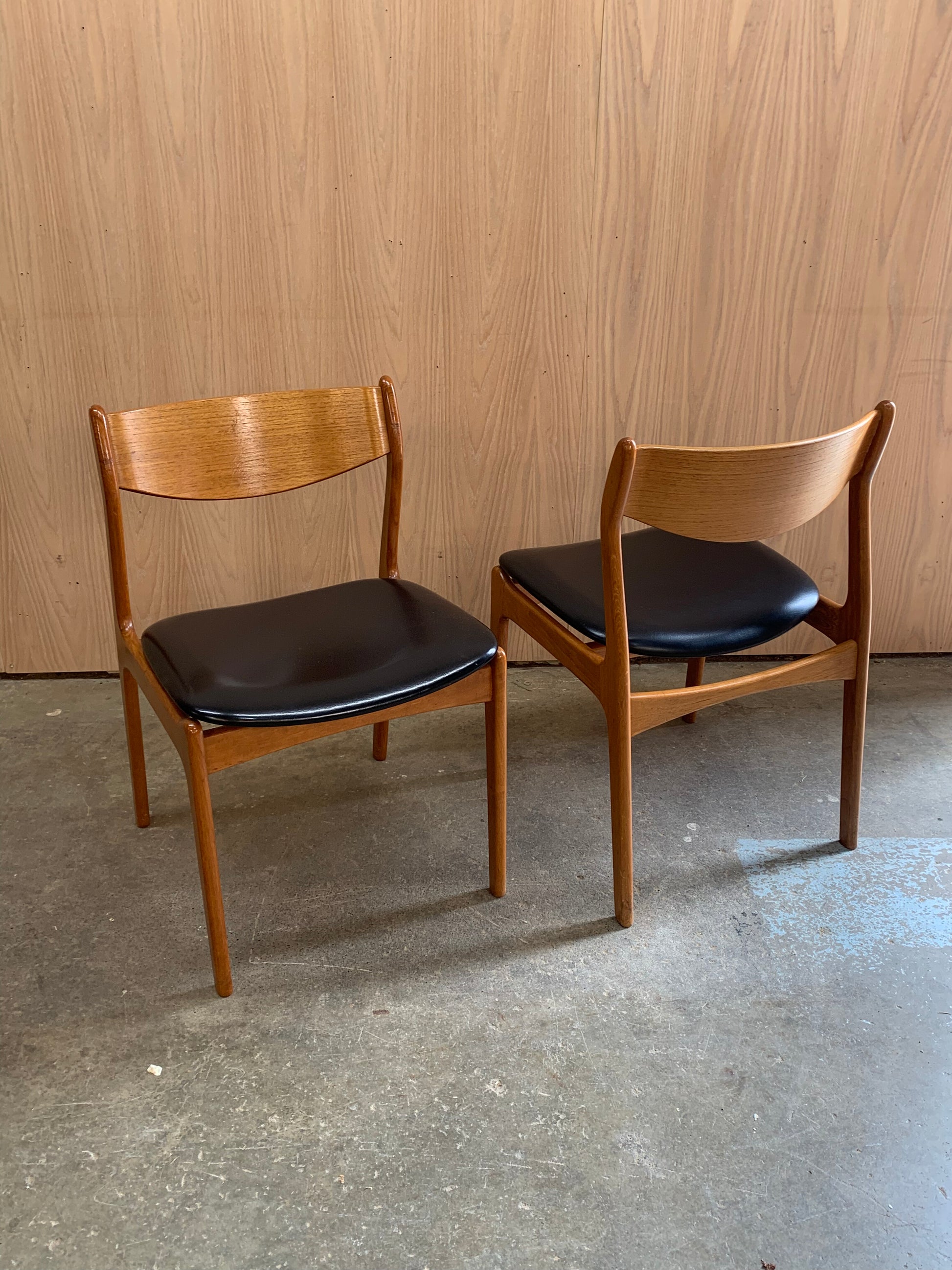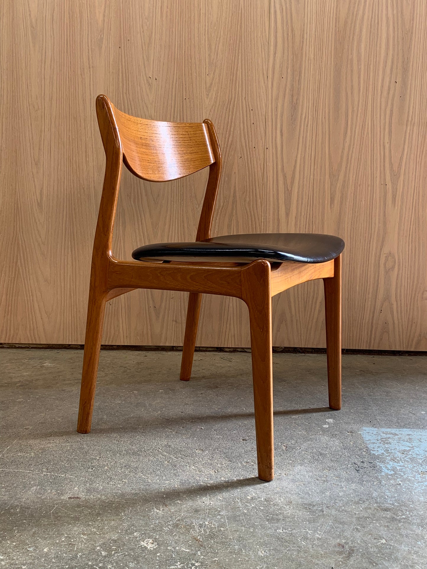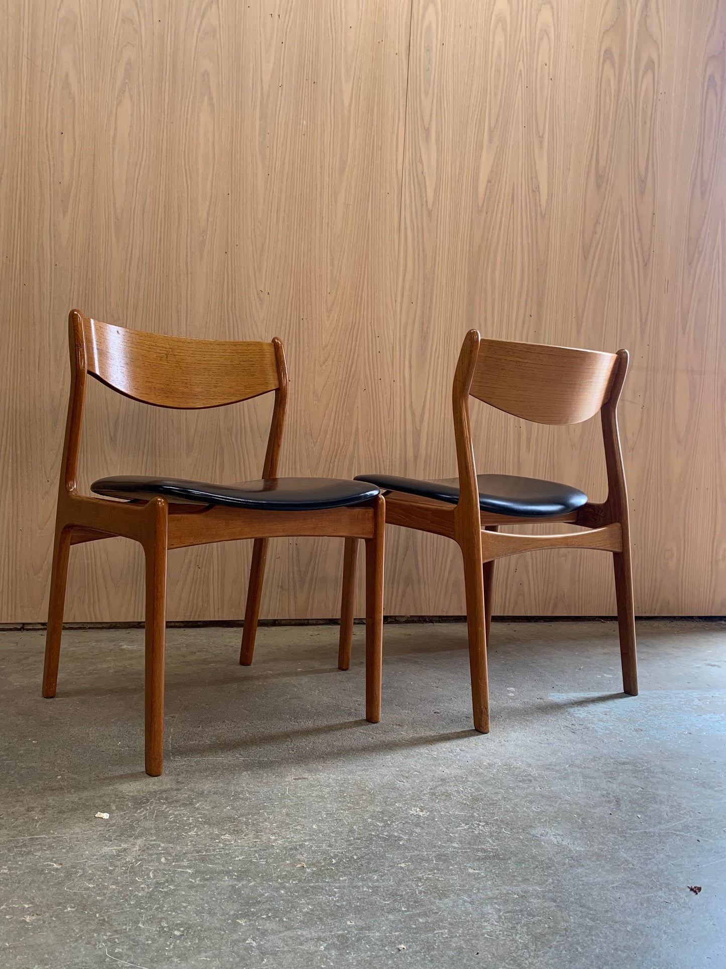 A rare and cohesive set of eight vintage Danish teak dining chairs, including six side chairs and a matching pair of armchairs. The sculptural lines, curved backrests, and solid craftsmanship speak to the timeless elegance of mid-century design. Freshly cleaned and polished, each chair is in excellent condition. Complete original sets like this—especially with armchairs—are increasingly hard to come by. Listing is for the chairs only, but we also have the original solid teak dining table available.