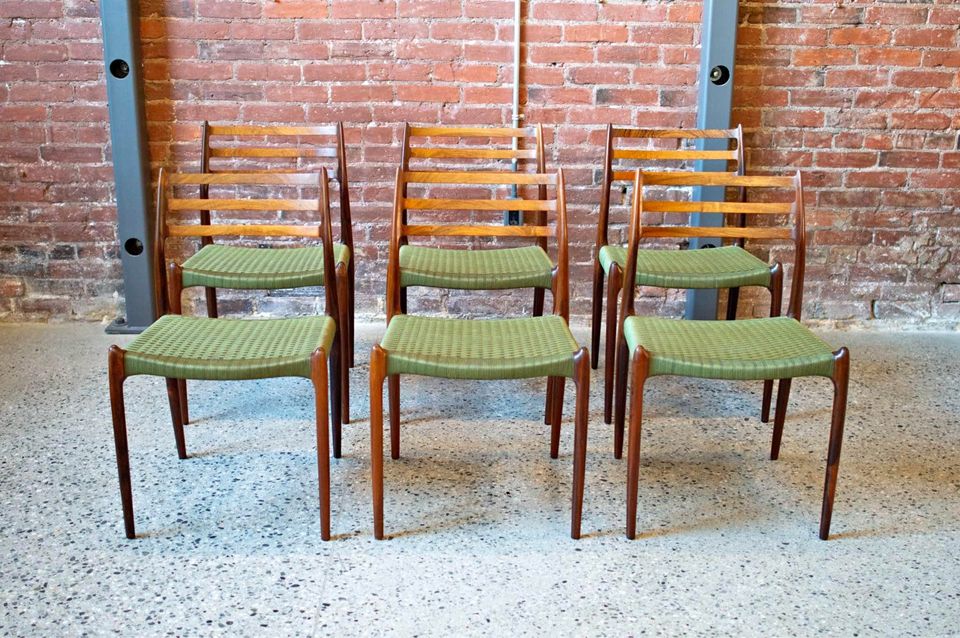 Set of Six 1960s Brazilian Rosewood Model 78 Chairs by Niels Møller