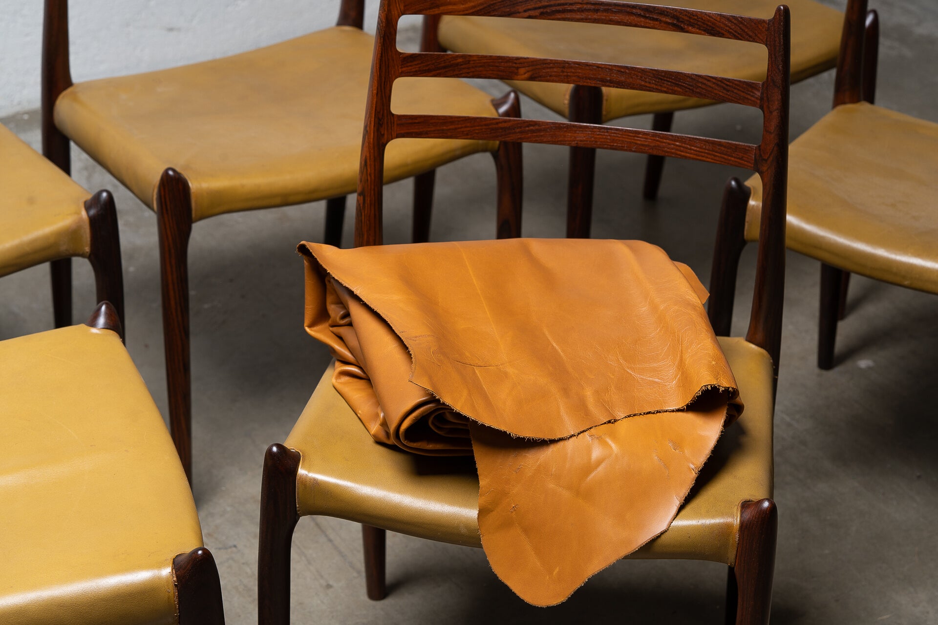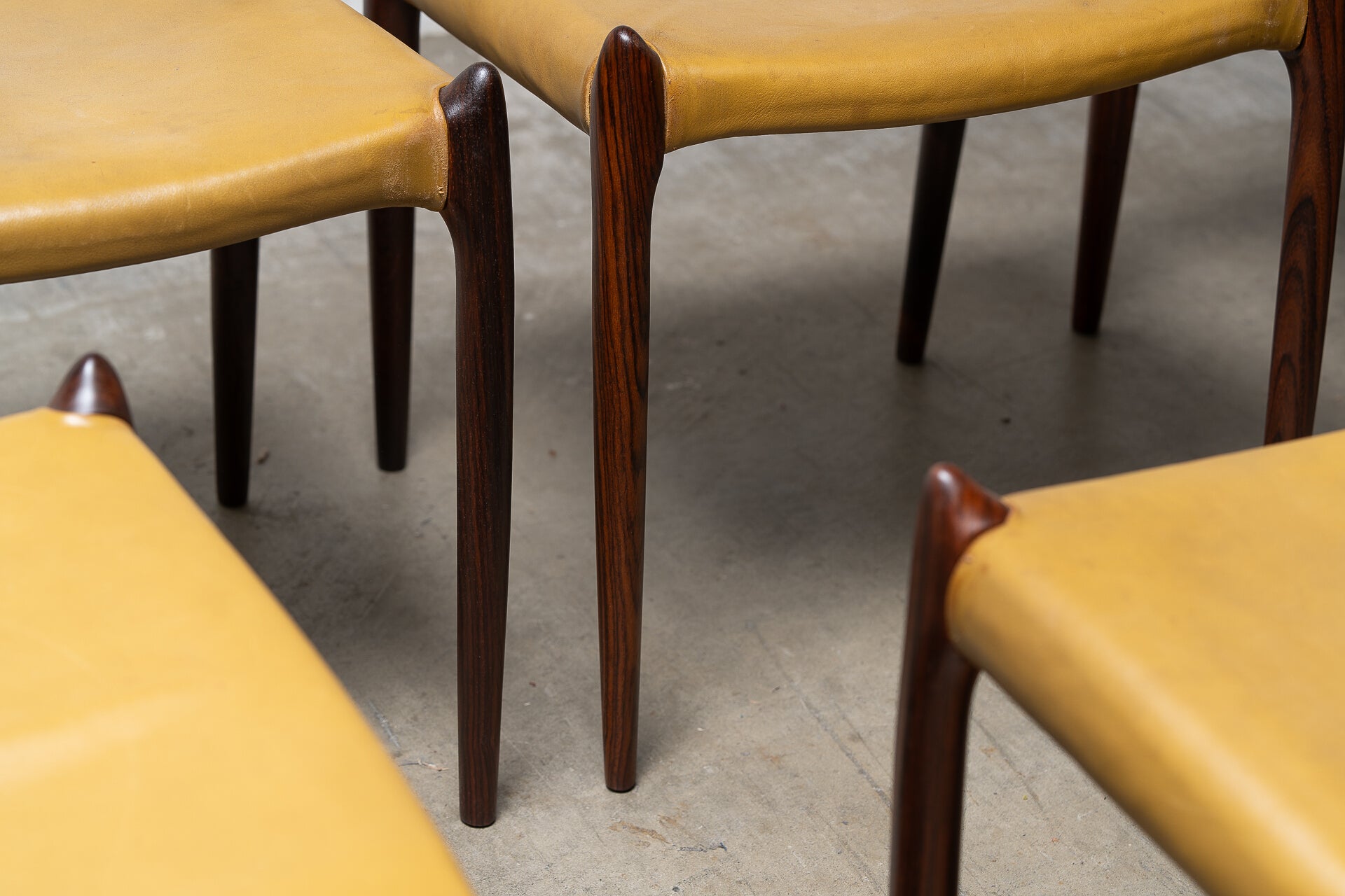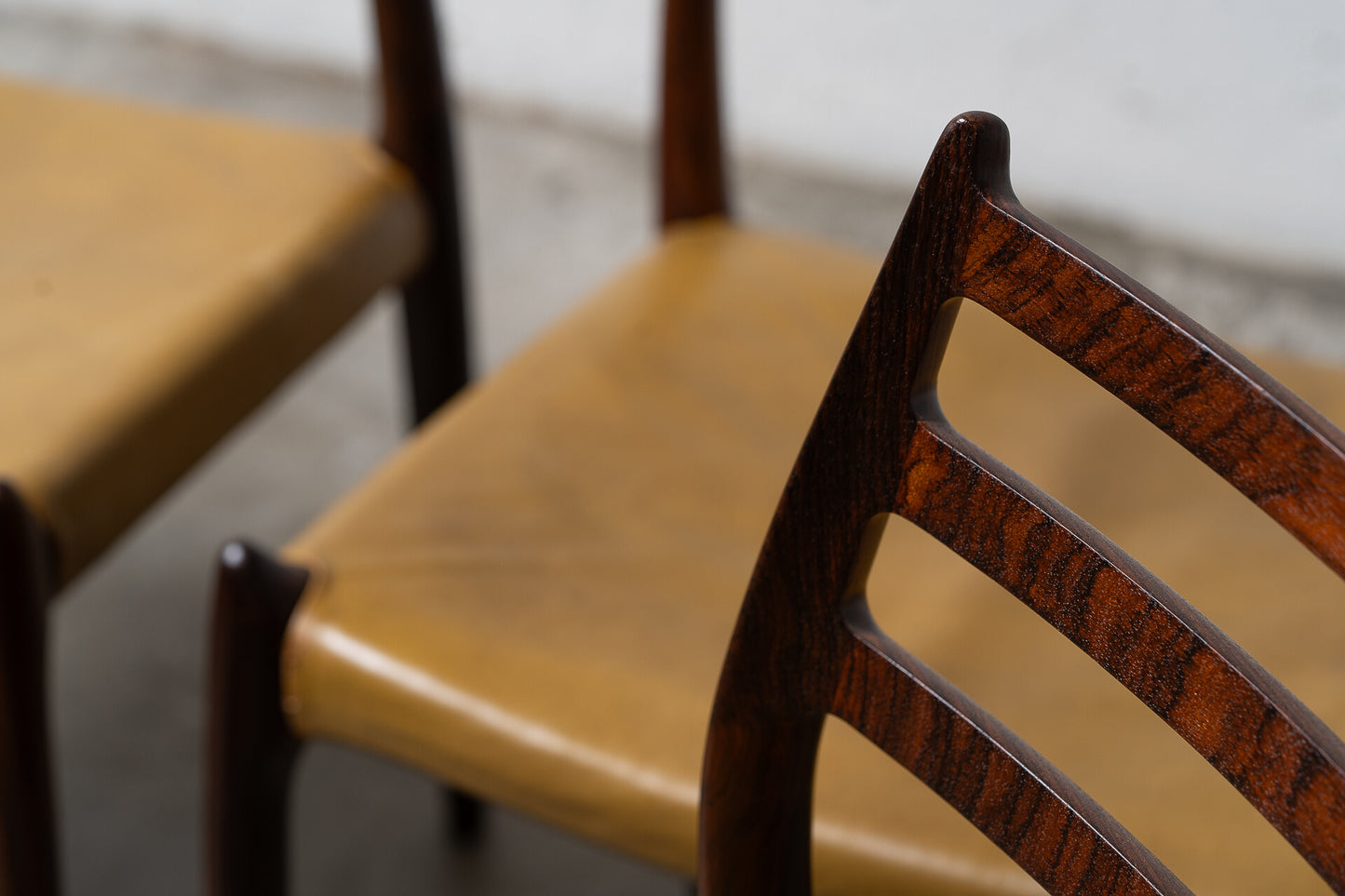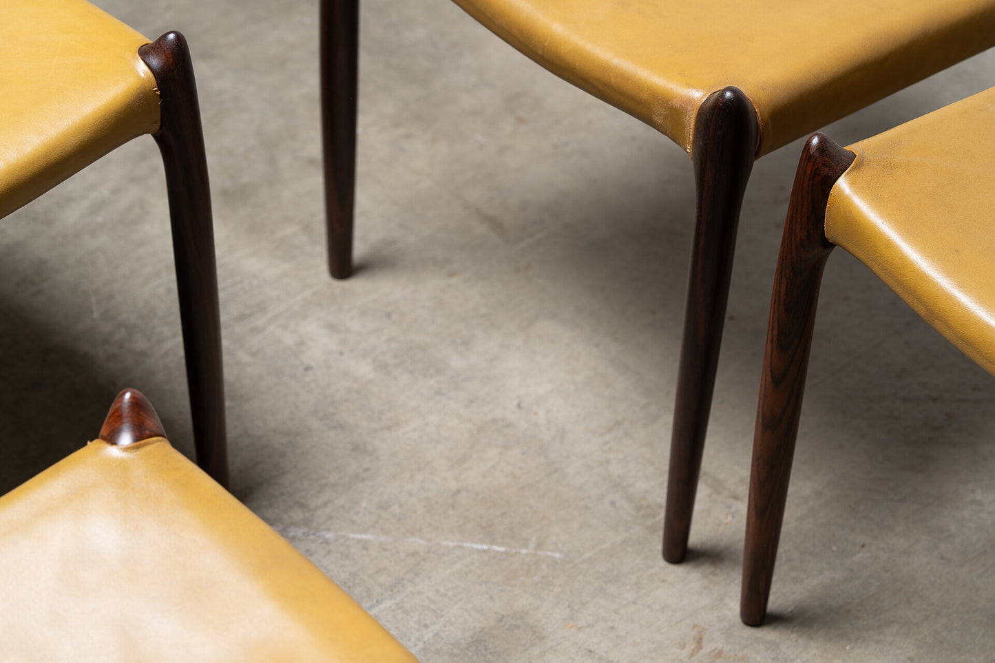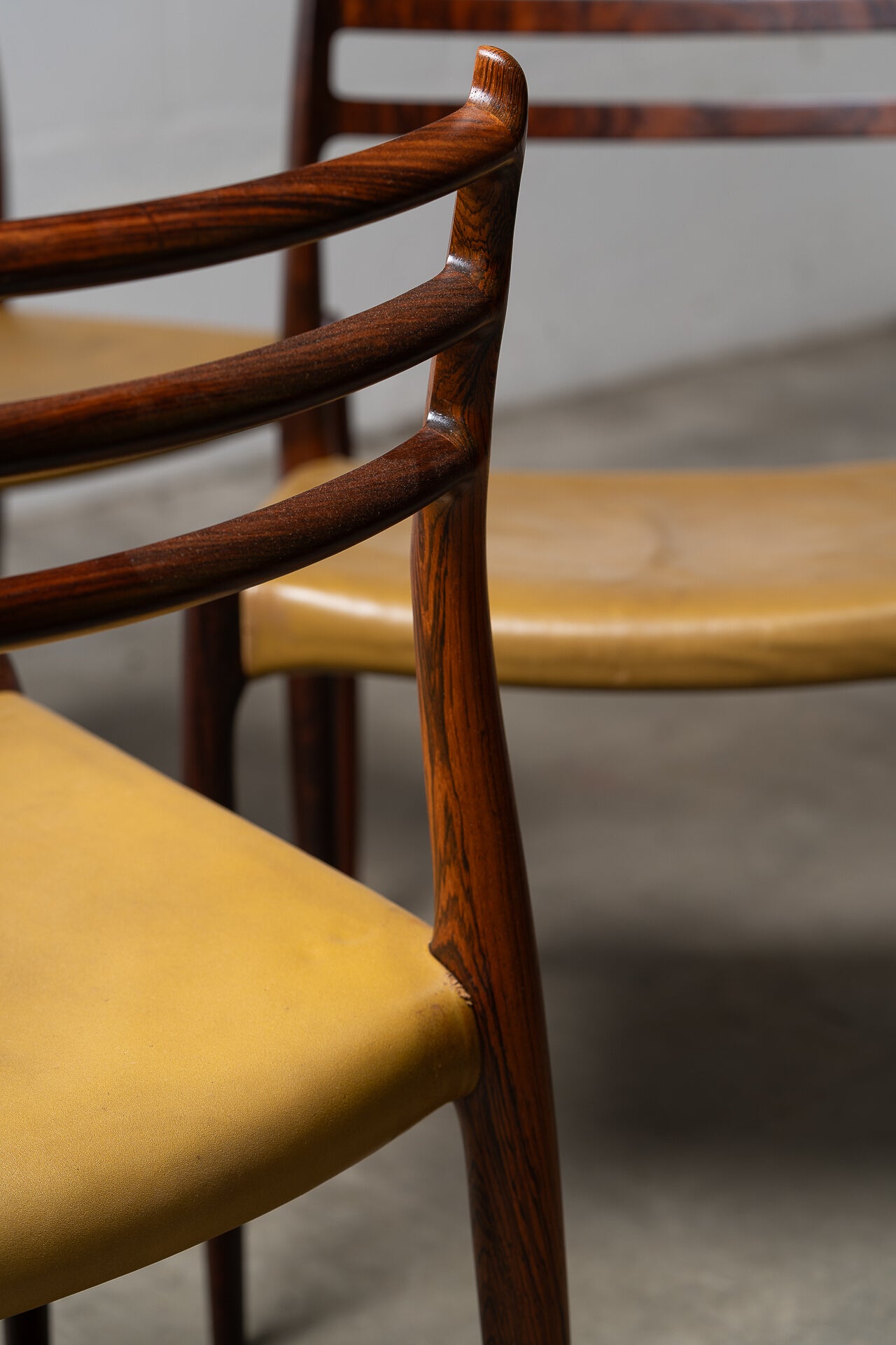 Crafted in the 1960s by Danish master Niels Otto Møller for J.L. Møllers Møbelfabrik, this rare set of six Model 78 side chairs is among the most coveted designs of the Danish modern era. Sculptural, refined, and effortlessly elegant, these chairs are celebrated for their ergonomic form and seamless joinery.