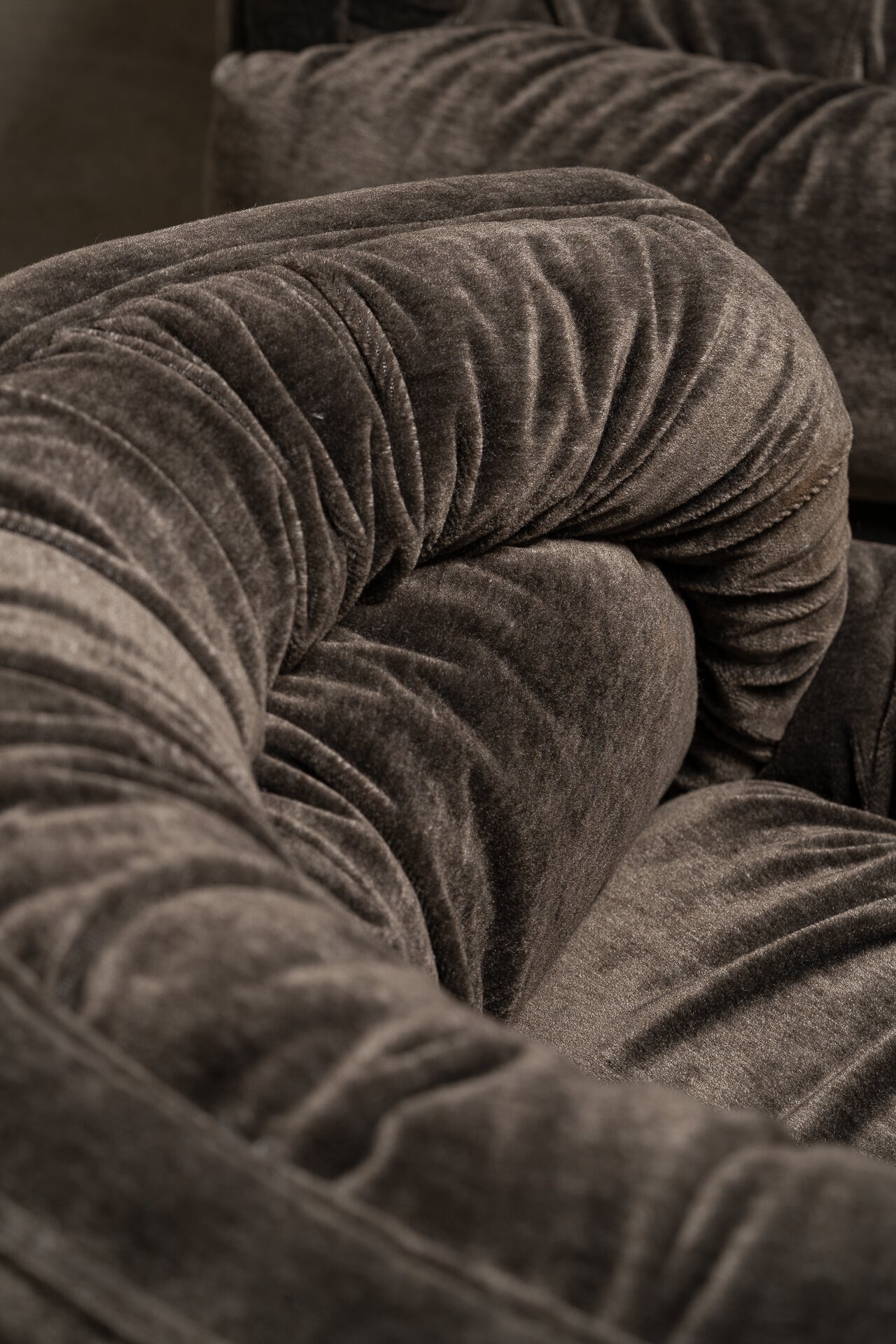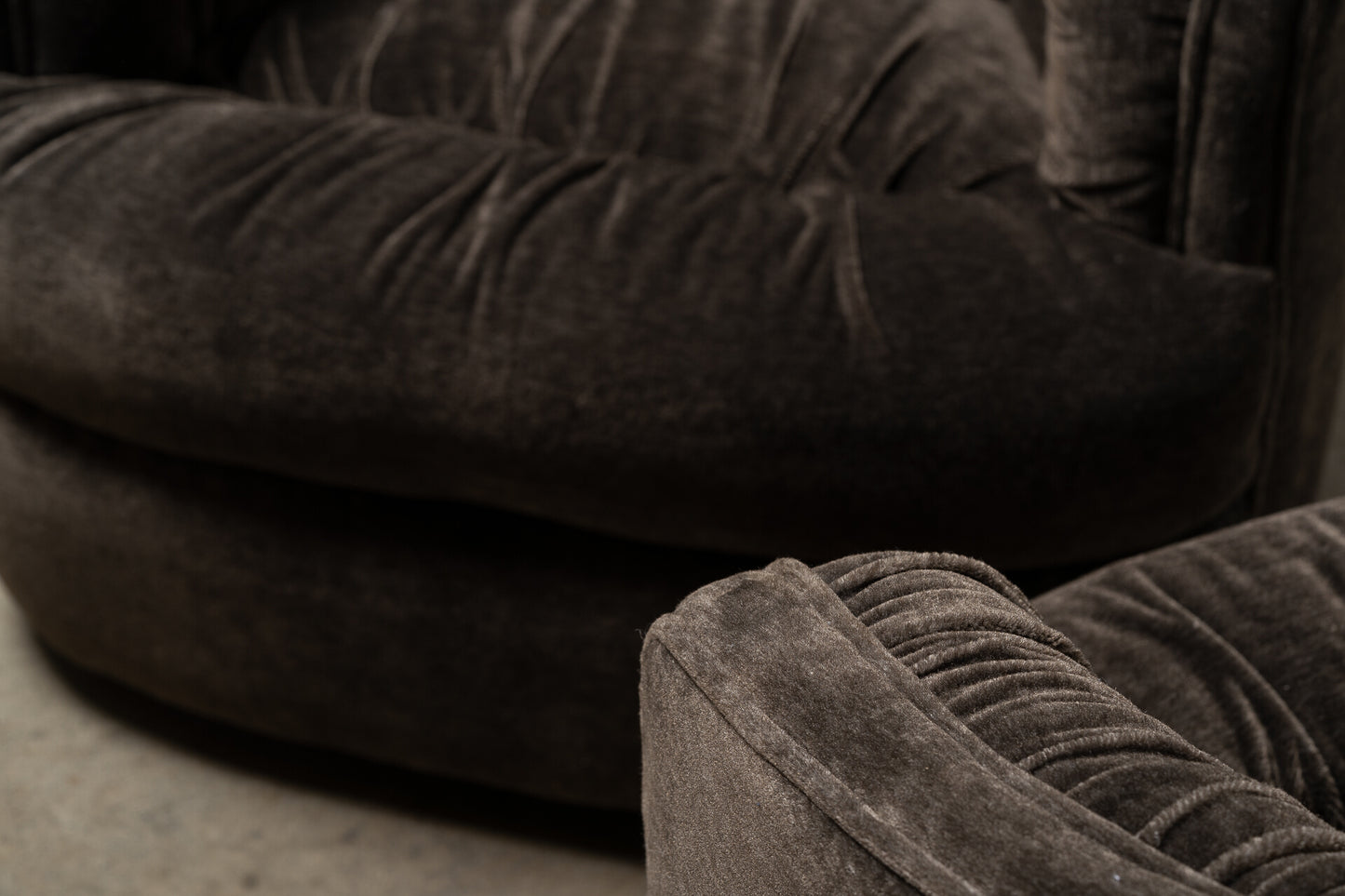 Looking for a pair of vintage chairs that no one else has? Meet your match. This ultra-rare pair of 1960s swivel chairs by Selig has been freshly reupholstered in a top-quality, dark colour velvet that’s as rich and decadent as it looks. The sculptural, barrel-back forms hug the body just right, while the generous tufting adds that perfect loungey depth.