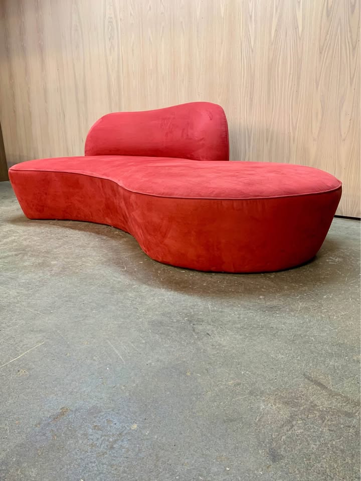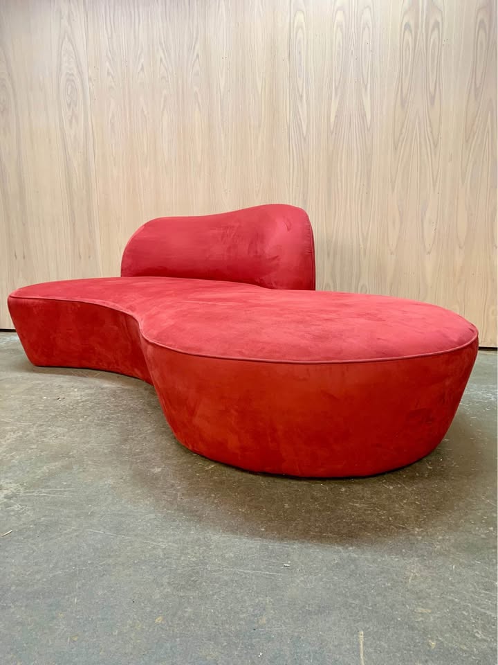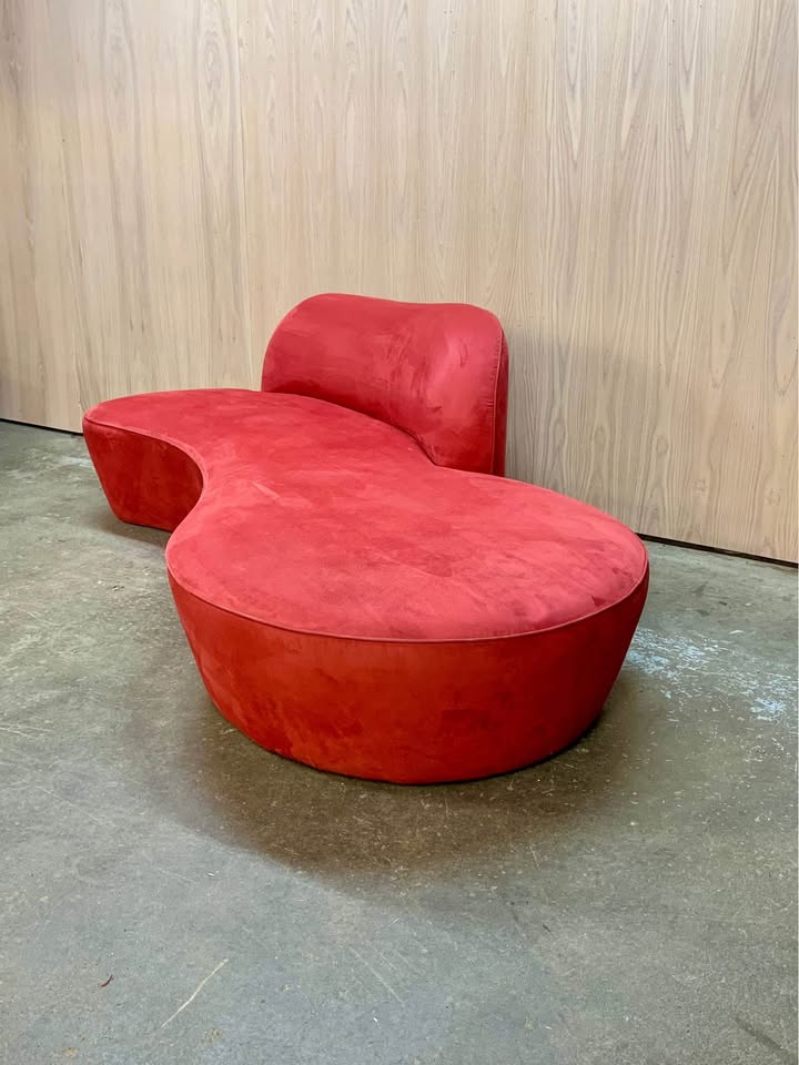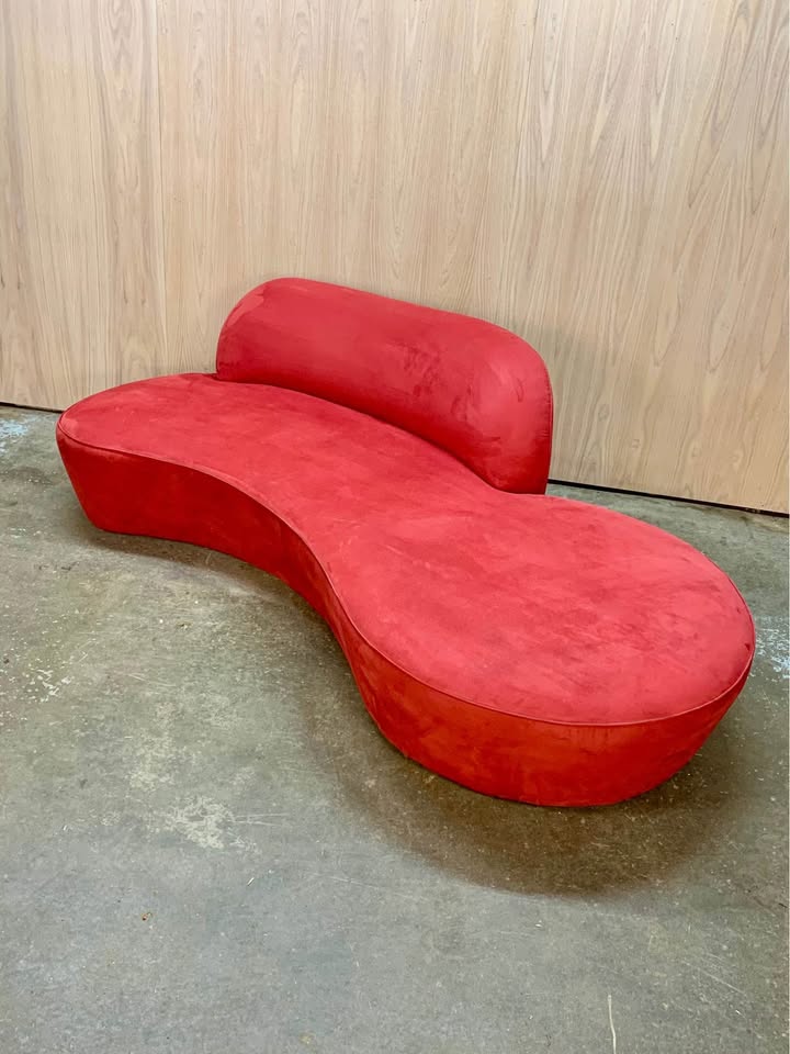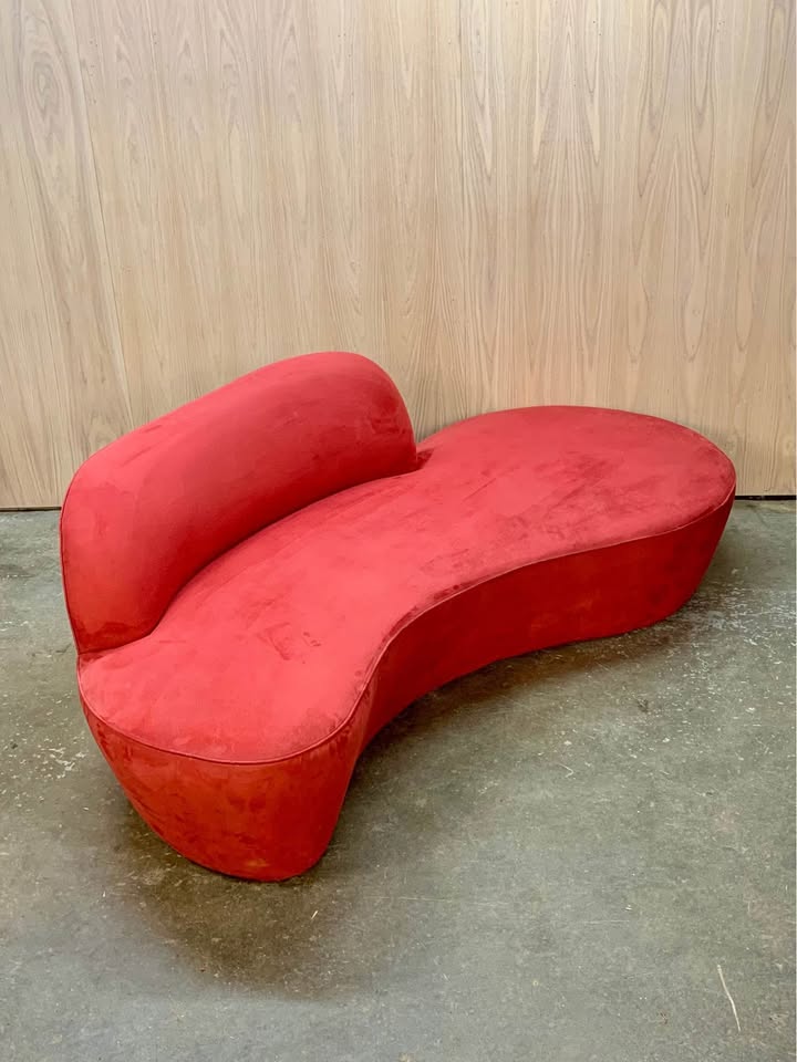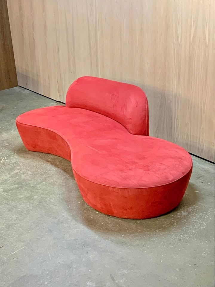 New to our collection, we’re excited to present the exquisite “Zoe” sofa, designed by Vladimir Kagan for American Leather. Showcasing a captivating curved design that stands in a league of its own, this piece is guaranteed to make a bold statement in any interior. Upholstered in its original microsuede, this exceptional sofa is available as is or with the option for custom fabric to suit your style.