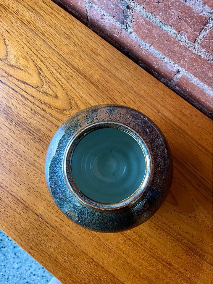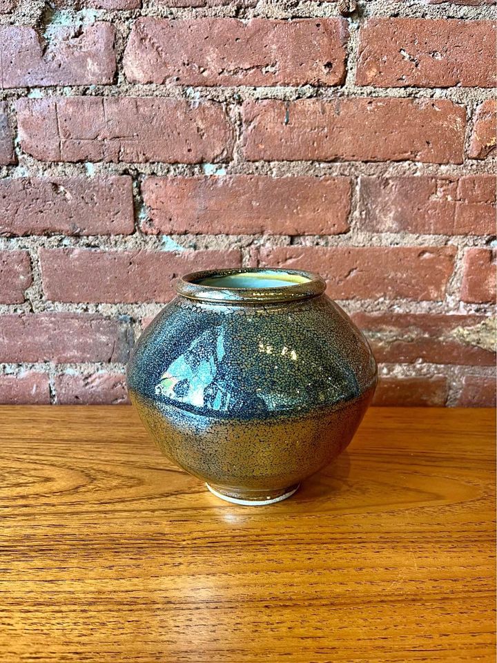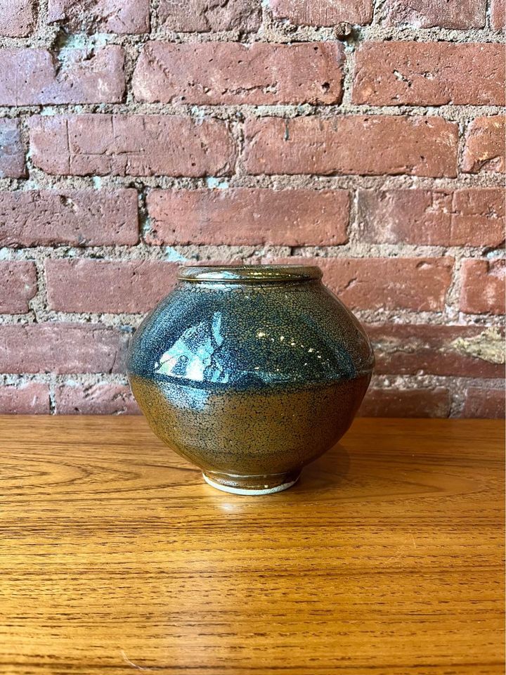 Embrace the depth and dimension of this oil spot vase by Wayne Ngan. With its deep glaze and pristine shine, this piece stands as a testament to his singular blend of technical mastery and experimental creativity. Crafted over 60 years, Ngan's legacy reflects influences from diverse artistic traditions, from traditional Chinese pottery to Modernist painting. With its captivating texture and luminous finish, this vase invites you to explore the intersection of art and life, echoing Ngan's lifelong dedication to integrating his craft with his surroundings. Whether displayed as a standalone piece or integrated into a larger collection, this vase is a timeless symbol of creativity and craftsmanship.